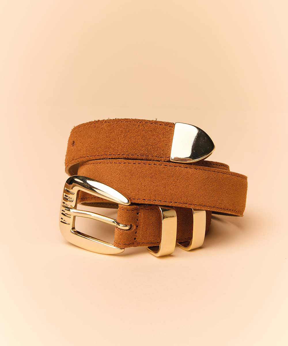 De Acro riem in Cashew Brown is een stijlvolle suède riem met goudkleurige hardware. Dankzij de verfijnde afwerking is dit accessoire de perfecte aanvulling op elke outfit. De riem is verkrijgbaar in de maten S (75 cm), M (85 cm) en L (95 cm), en kan zowel in de taille als op de heup gedragen worden.| Afmeting: | S: 75cm M: 85cm L: 95cm |