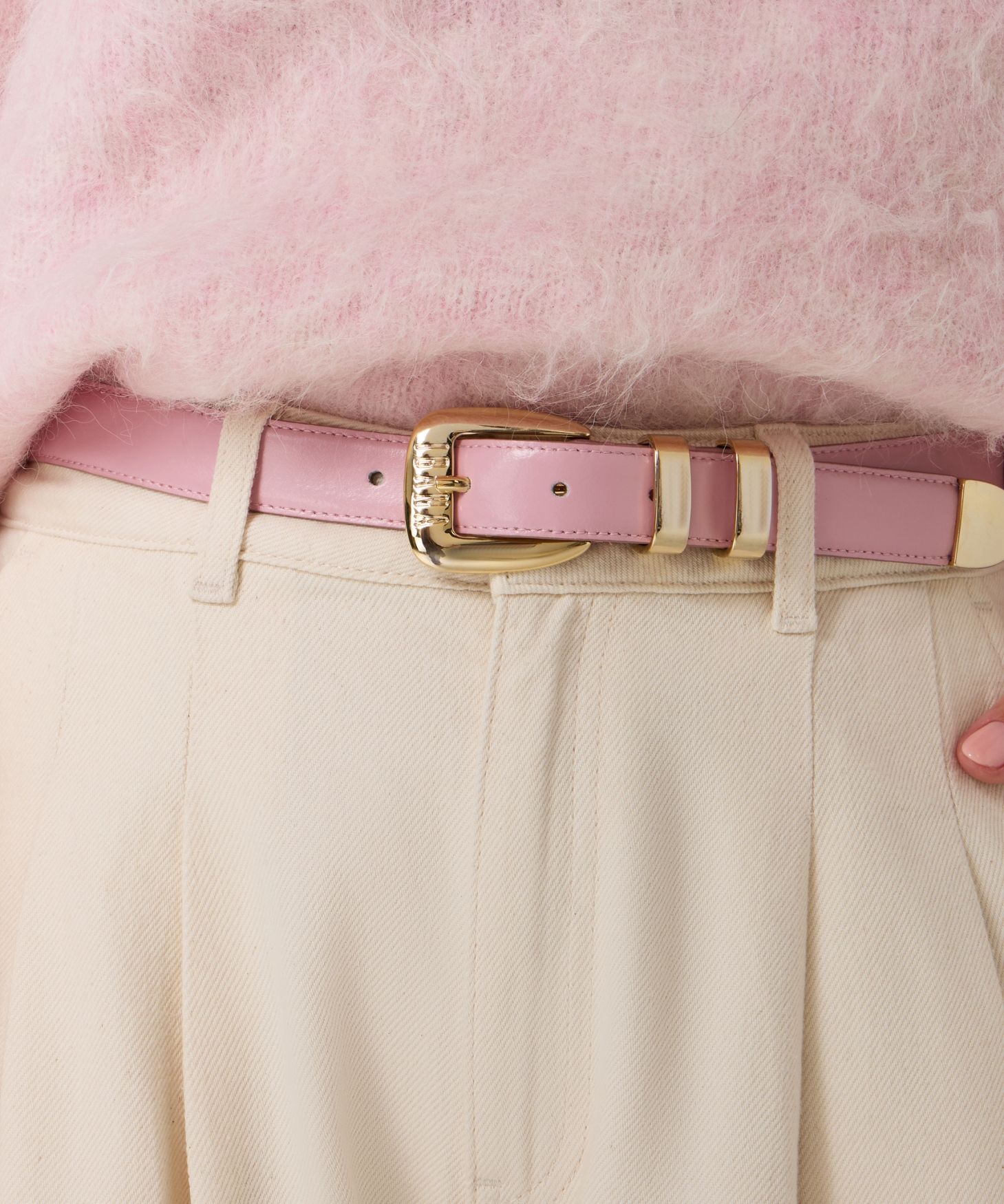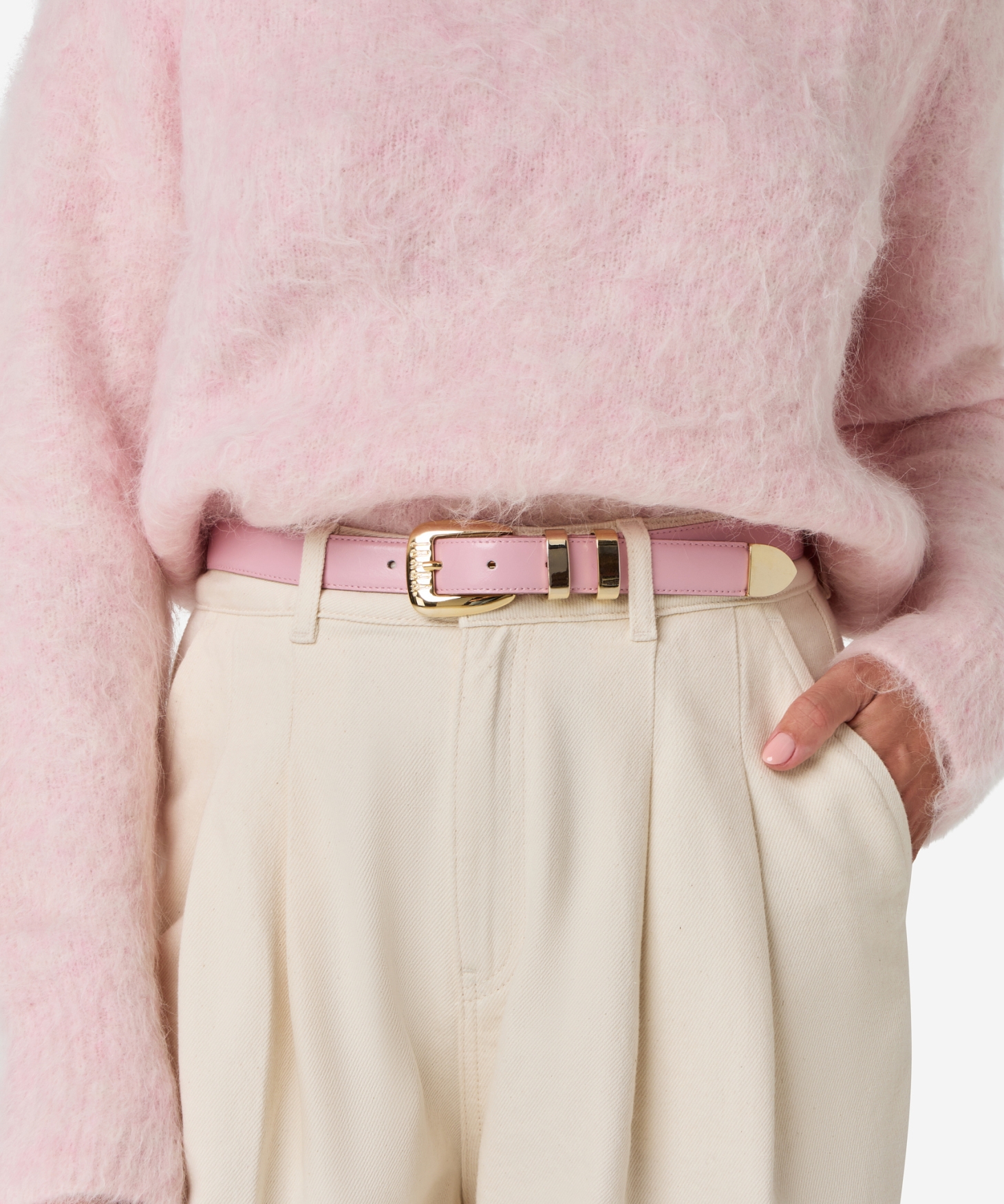 De Acro riem in Primrose Pink is een elegante leren riem met goudkleurige hardware die elke outfit een vrouwelijke touch geeft. Dankzij de hoogwaardige afwerking is dit accessoire perfect te dragen in de taille of op de heup. De riem is verkrijgbaar in de maten S (75 cm), M (85 cm) en L (95 cm).