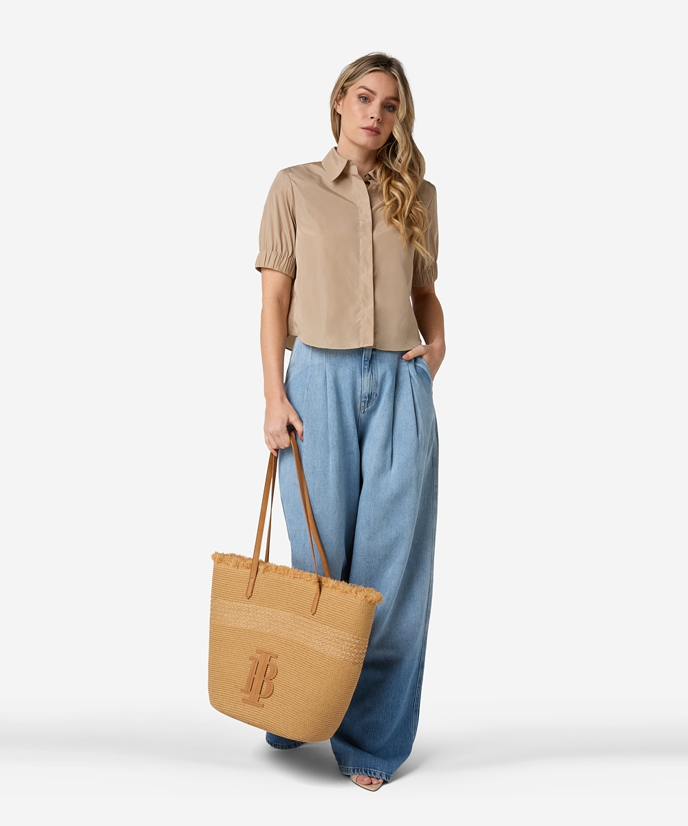 De Ailey tas in de kleur Palmera Beige is een zomerse shopper gemaakt van raffia, afgewerkt met leren details. De tas heeft een natuurlijke, luxe uitstraling. Aan de voorzijde is de tas voorzien van een leren IB-logo, wat zorgt voor een herkenbare IBANA-signature. Dankzij het ruime formaat is de Ailey perfect voor city days, vakanties en strandmomenten.