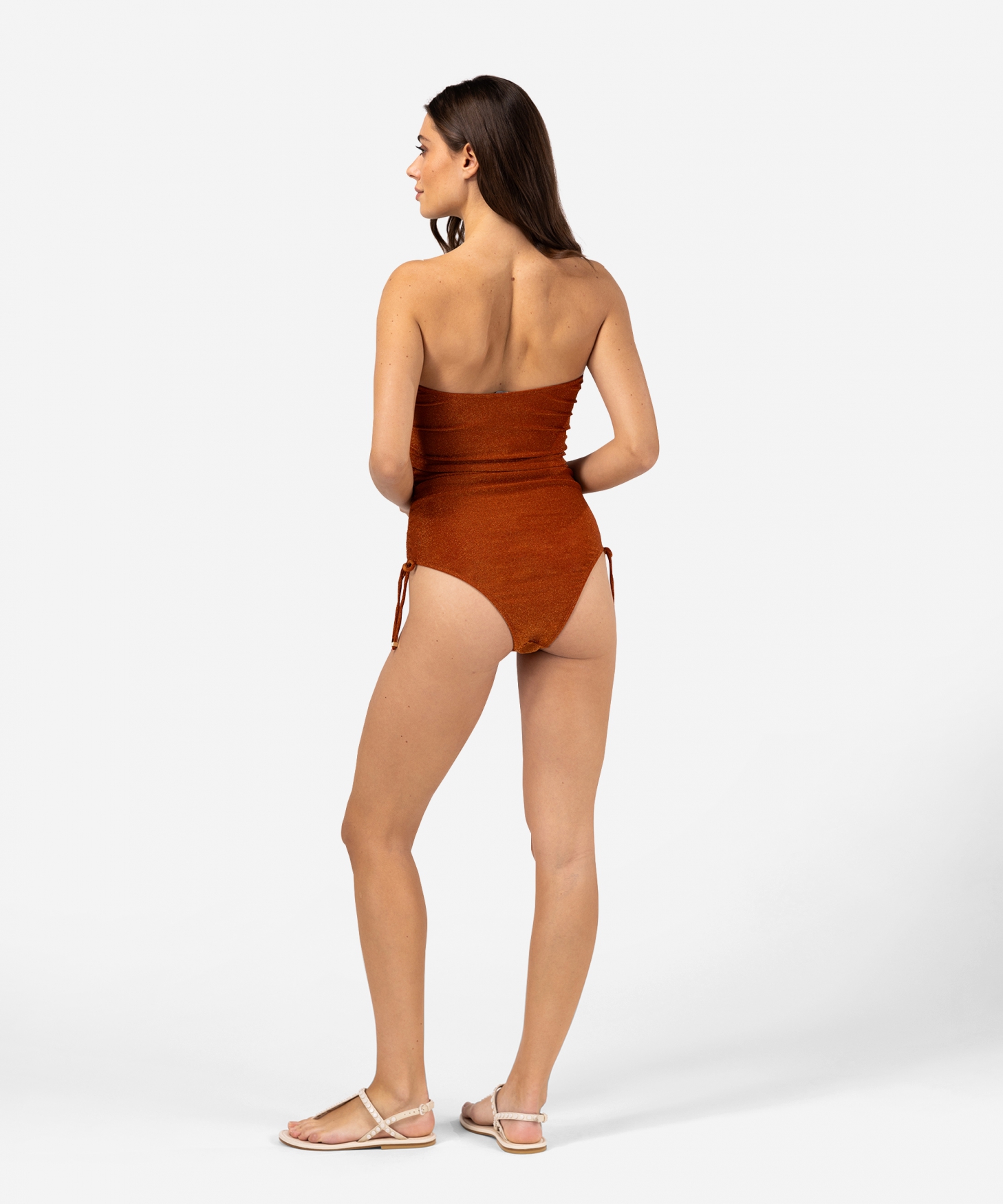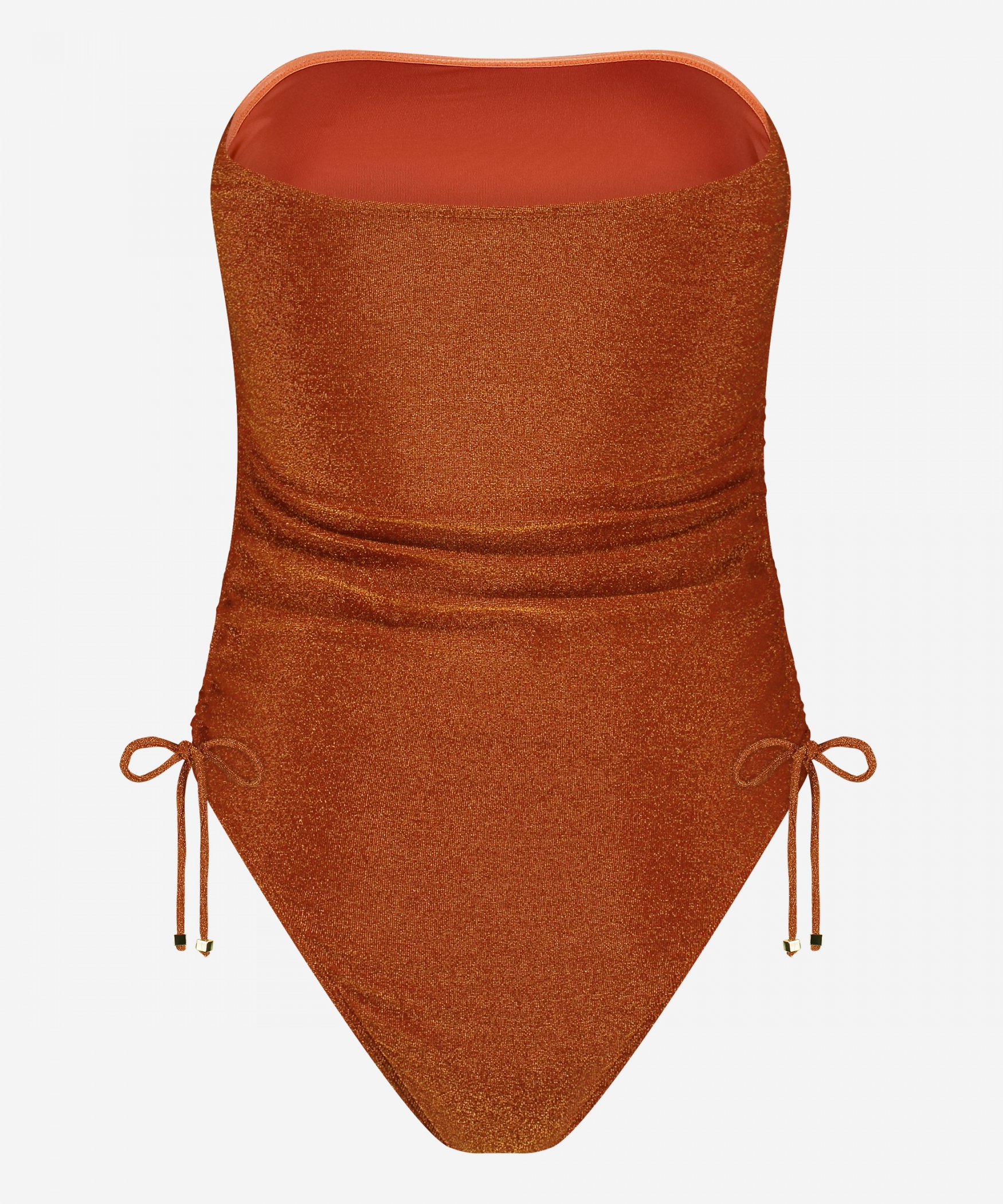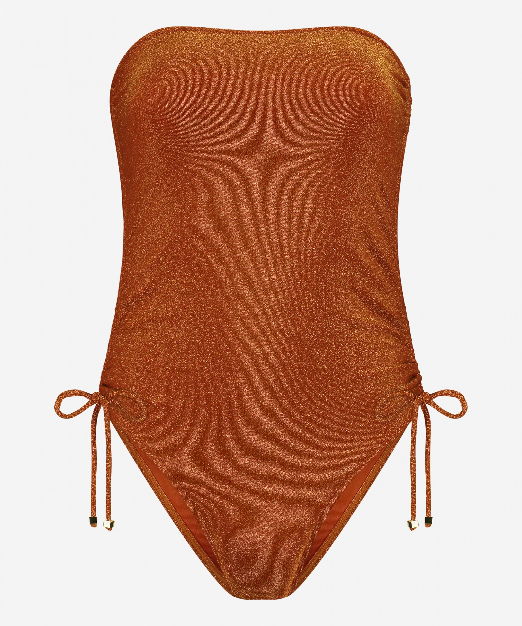 Musthave alert! Ontdek het Alanna badpak met prachtige lurex! Het badpad is strapless. Aan de zijkanten kan je het badpak rimpelen met de koortjes. Hiermee creëer je optisch ook langere benen mee! Draag het badpak met een shortje en een van onze zonnebrillen voor de perfecte beach look.| Categorie: | Accessoires |