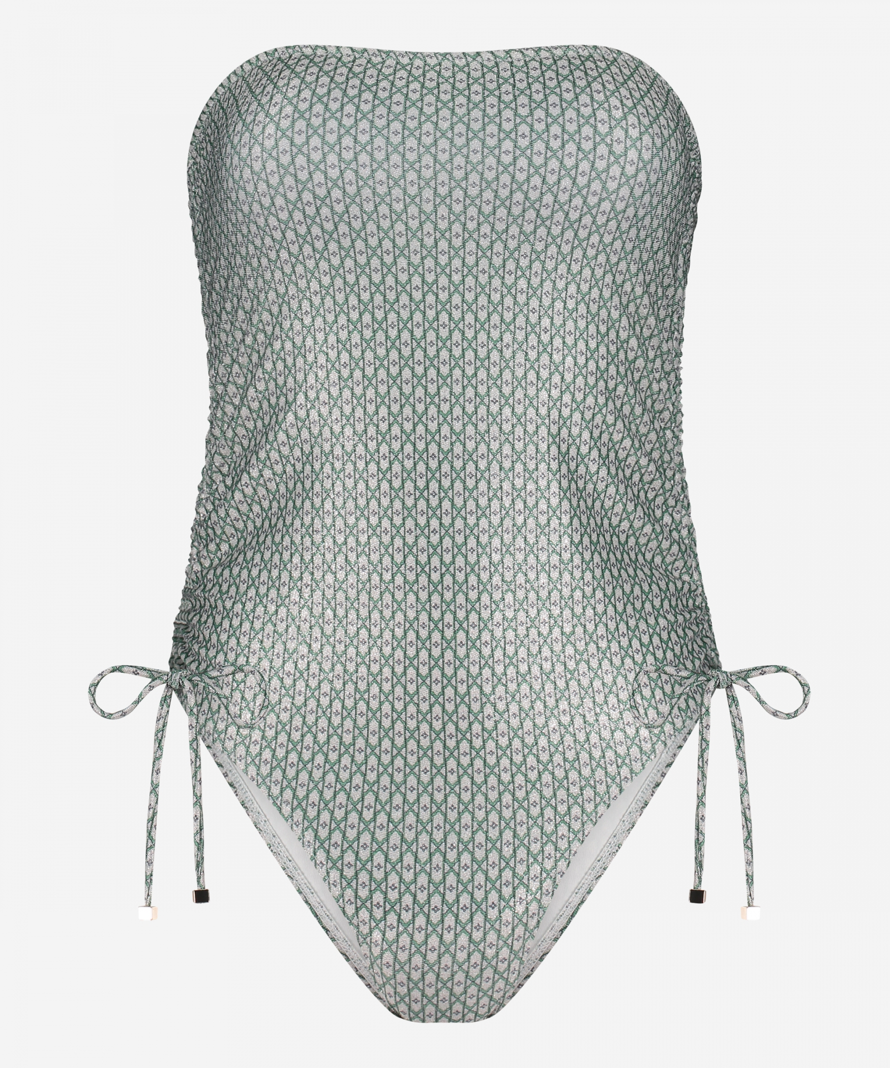 Ontdek het Alanne badpak in onze prachtige Diamante print. Dit badpak is strapless en is gerimpeld aan de zijkanten met koordjes. Hiermee creëer je optisch langere benen mee! Draag de Alanne met de Piero Pants in dezelfde print voor een fashionable beach look.| Categorie: | Accessoires |