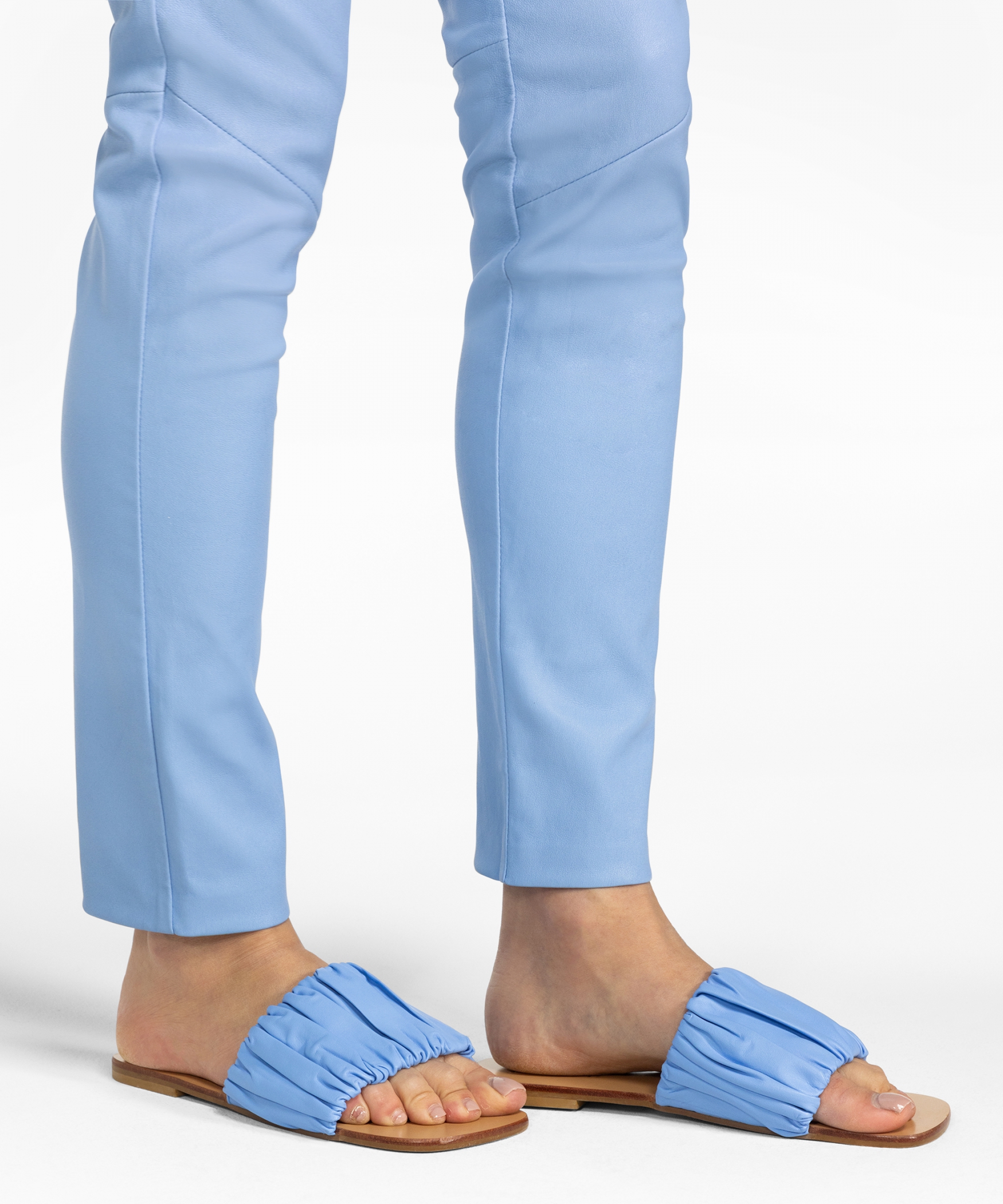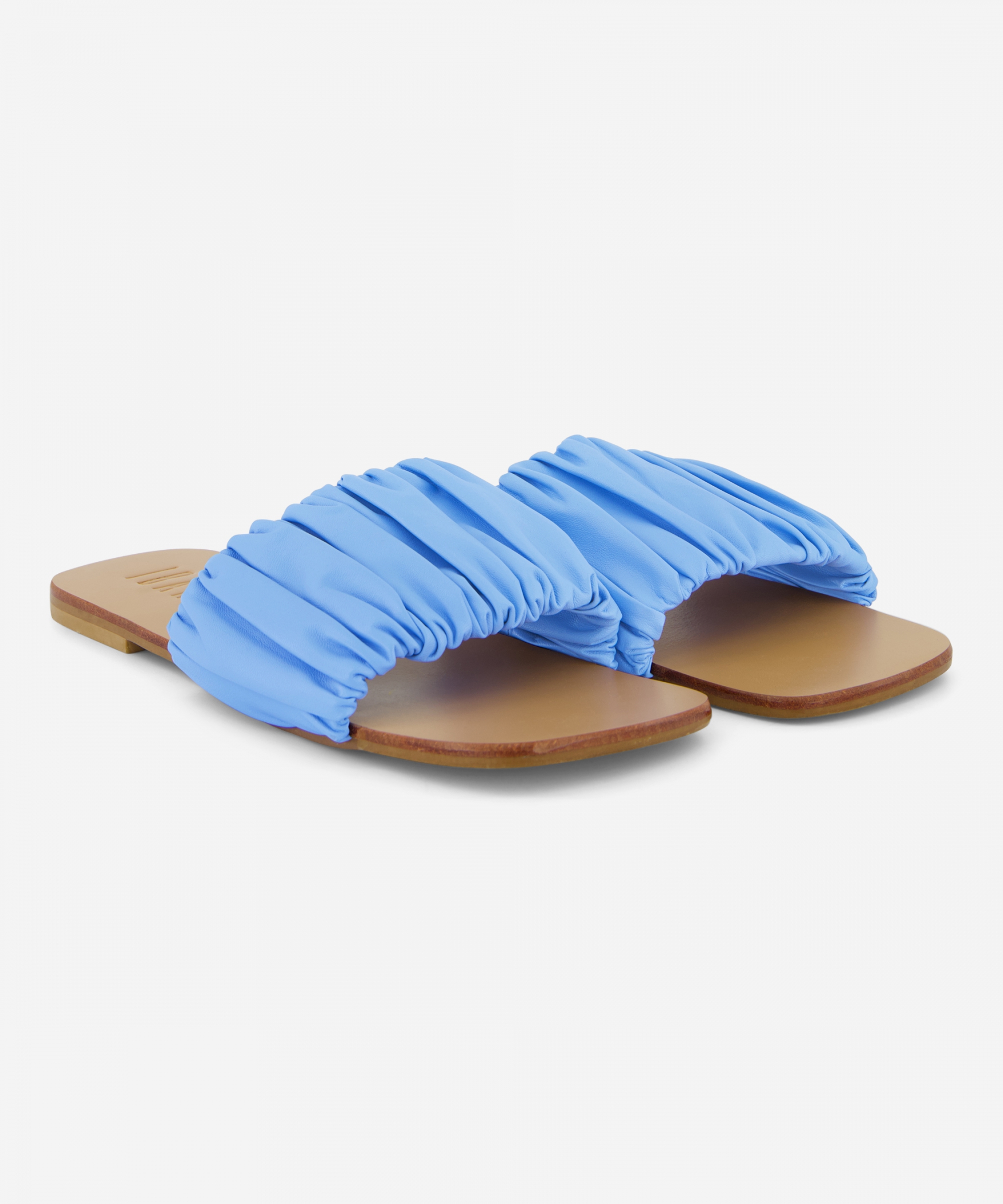 De Amira slippers in de kleur Airy Blue lopen super comfortabel. Deze slippers stralen een zomerse flair uit met de luxe geplooide leren band. Combineer deze veelzijdige slippers met een zomerse jurk of een mooie leren broek in dezelfde Airy Blue kleur. Met deze slippers ben je klaar voor een relaxte, zonnige dag en zie je er ook nog stijlvol uit!