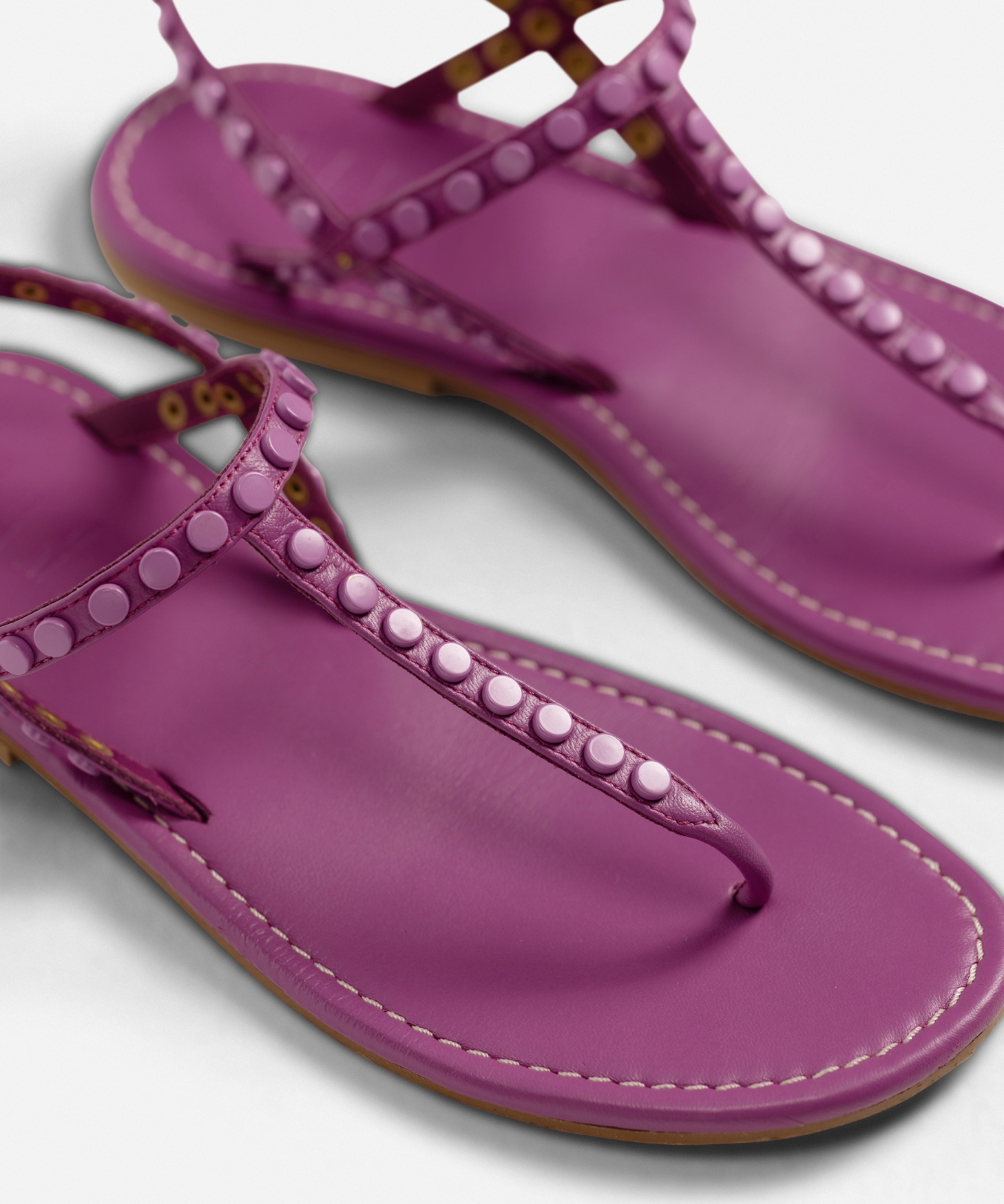 Maak kennis met onze Aroline Sandalen in de vrolijke trendkleur Fucsia. De sandalen zijn gemaakt van 100% leer, hebben een gespsluiting en hebben studs in dezelfde kleur op de bandjes. Draag de slippers onder je zomerse outfit en je bent ready to go!| Categorie: | Schoenen |