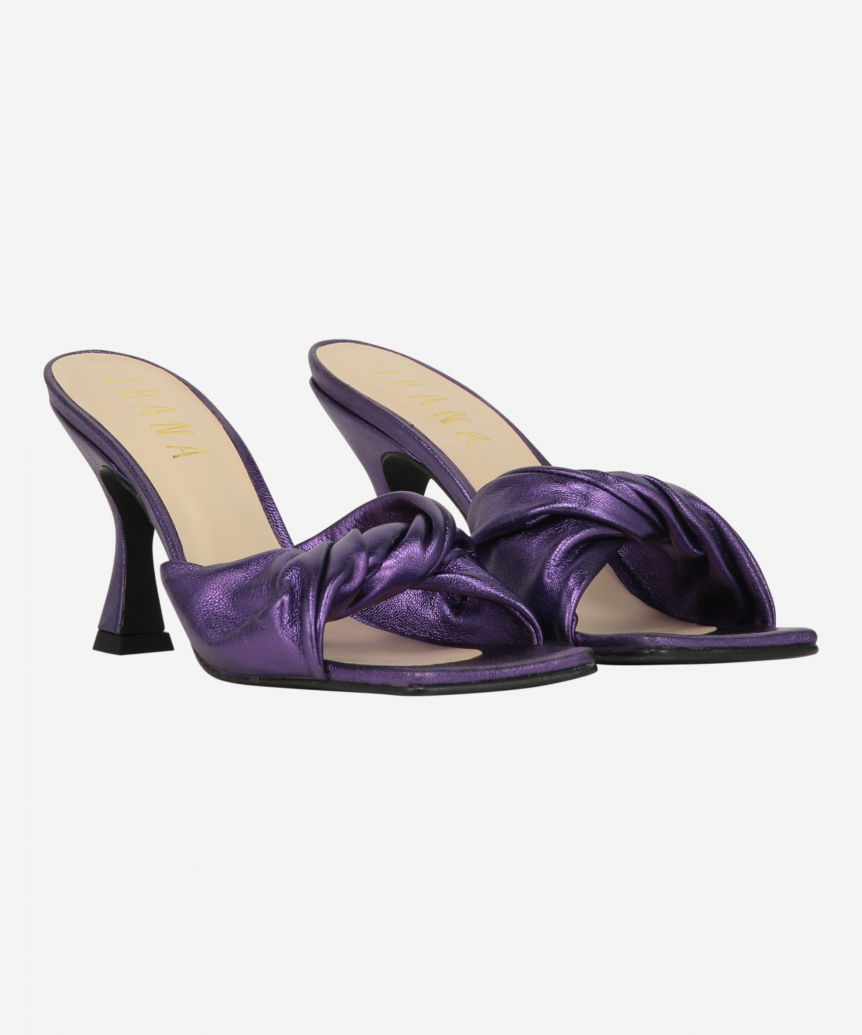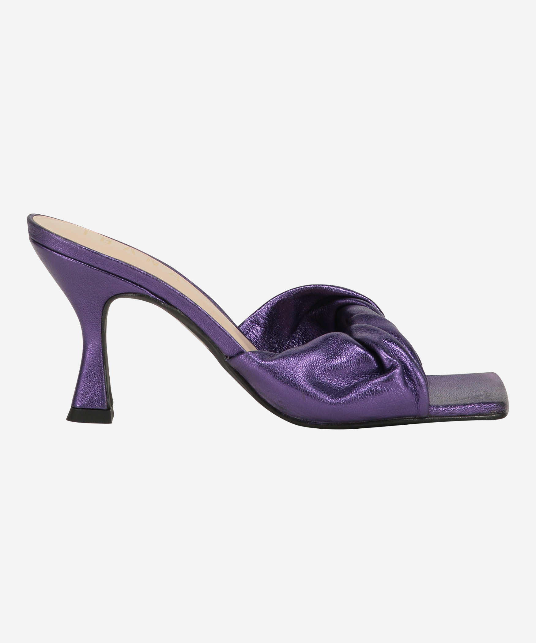 Met deze beauties maak je elke outfit compleet. Door de gedraaide band in de kleur Metallic Violet krijgt je outfit een elegante uitstraling. Het gevoerde voetbed en de niet al te hoge hak van 8 centimeter zorgen ervoor dat de muiltjes comfortabel lopen. Met het slip-on model stap je gemakkelijk in de hak. Deze te gekke kleur in Metallic Violet geven een extra classy touch aan je outfit. Styling tip: prachtig te combineren met de Paxton broek in Violet.