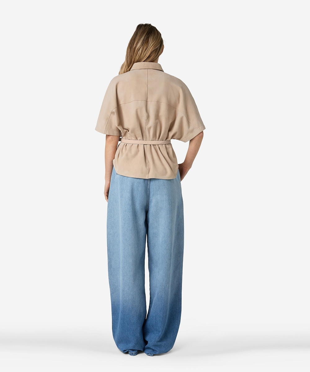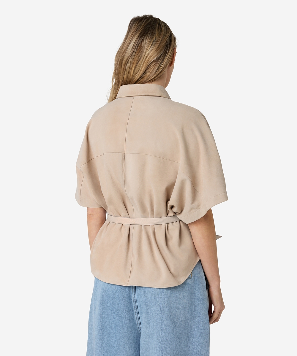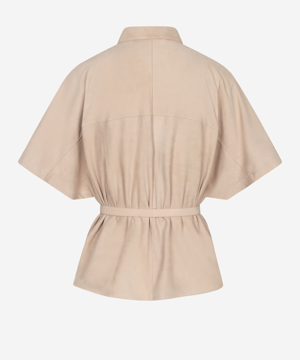 De Blaire Suede blouse in de kleur Ostra Beige heeft een verfijnde kraag en een getailleerde fit. De blouse is gemaakt van leer (suède) en uitgevoerd met vleermuismouwen. Dankzij de non-stretch afwerking behoudt de blouse zijn vorm en luxe look. Een statement piece dat klasse toevoegt aan elke outfit. Stylingtip: combineer de Blaire Suede blouse met de Pristina jeans.