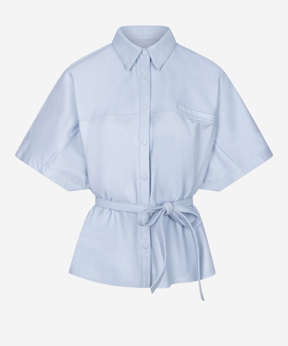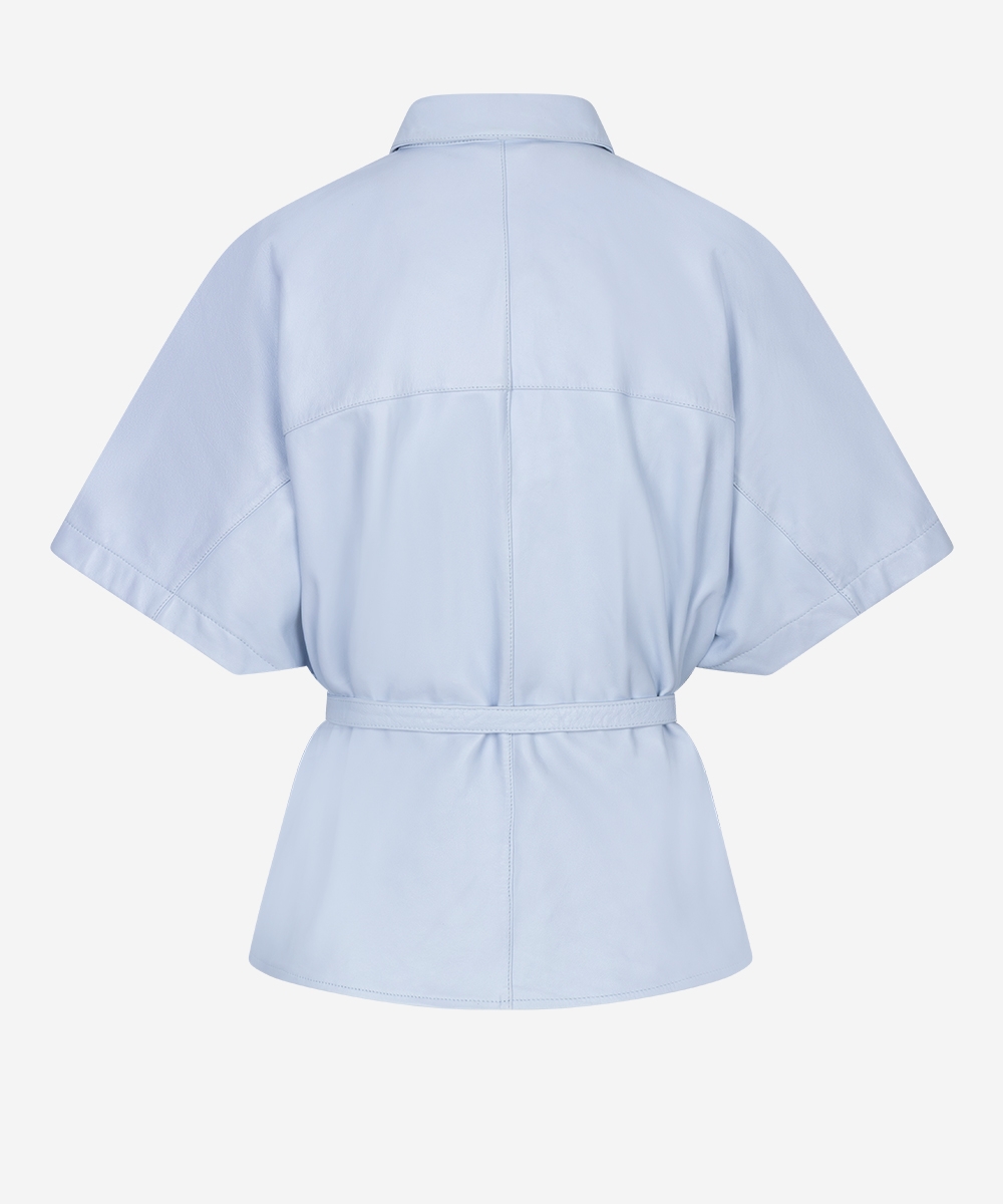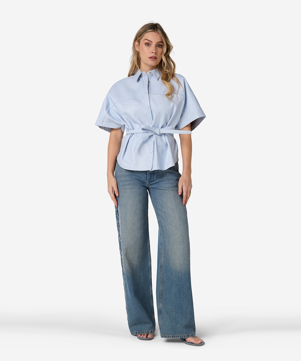 De Blaire blouse in de kleur Violetta Blue heeft een elegante kraag en een getailleerde fit. De blouse is gemaakt van hoogwaardig kwaliteitsleer en uitgevoerd met vleermuismouwen, wat zorgt voor een krachtige maar verfijnde uitstraling. Dankzij de non-stretch afwerking behoudt de blouse zijn vorm en luxe look. Een statement item dat elke outfit direct karakter geeft. Stylingtip: combineer de Blaire blouse met de Poseph pants voor een moderne, stijlvolle look.