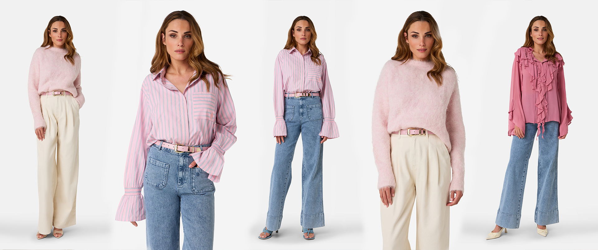 De kleur Primrose Pink maakt elke outfit fris en toegankelijk. Door de warmere ondertoon staat deze tint verassend veel vrouwen mooi en tilt de kleur zelfs de meeste eenvoudige outfits naar een hoger niveau. Daarnaast heeft de kleur iets bijzonders in verschillende materialen. In luchtig katoen komt de tint helder en fris over, terwijl knitwear de kleur juist diepte en zachtheid geeft. Denk ook aan leren accessoires in deze kleur, een onverwachte keuze die een neutrale look direct meer karakter geeft.