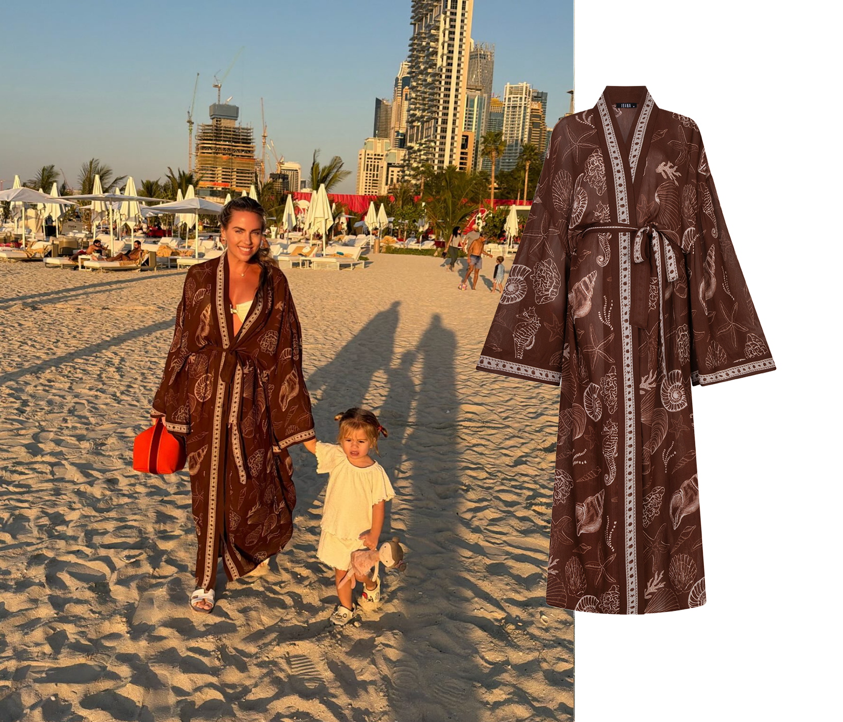 Esther Vedder draagt de Jimono Shell kimono tijdens een ontspannen stranddag. De luchtige stof beweegt met je mee en geeft je strandlook een elegante uitstraling. Perfect voor een lunch of koffiemoment aan zee, maar net zo stijlvol als je hem draagt bij het zwembad of tijdens een relaxte dag in de zon.