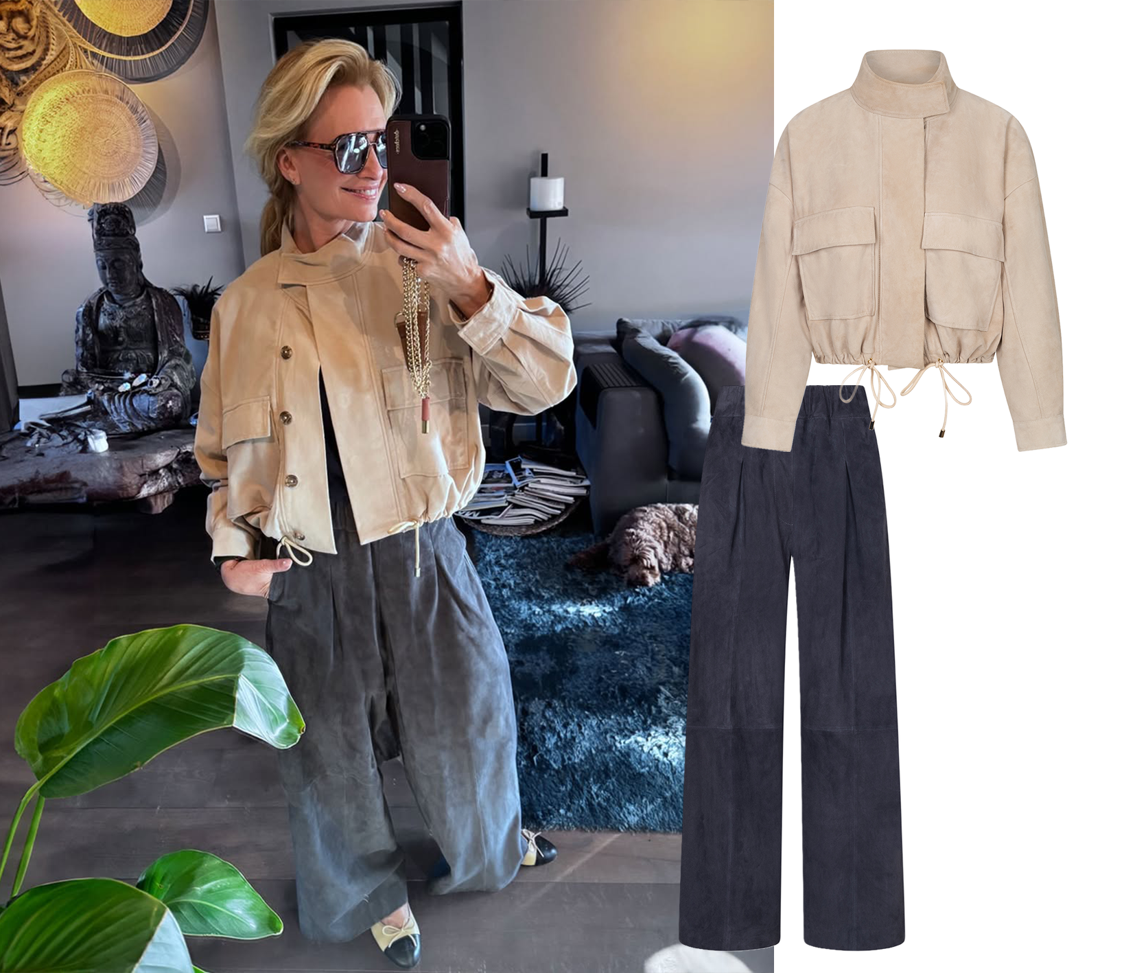 Janine Kho in de Joyce suede jacket