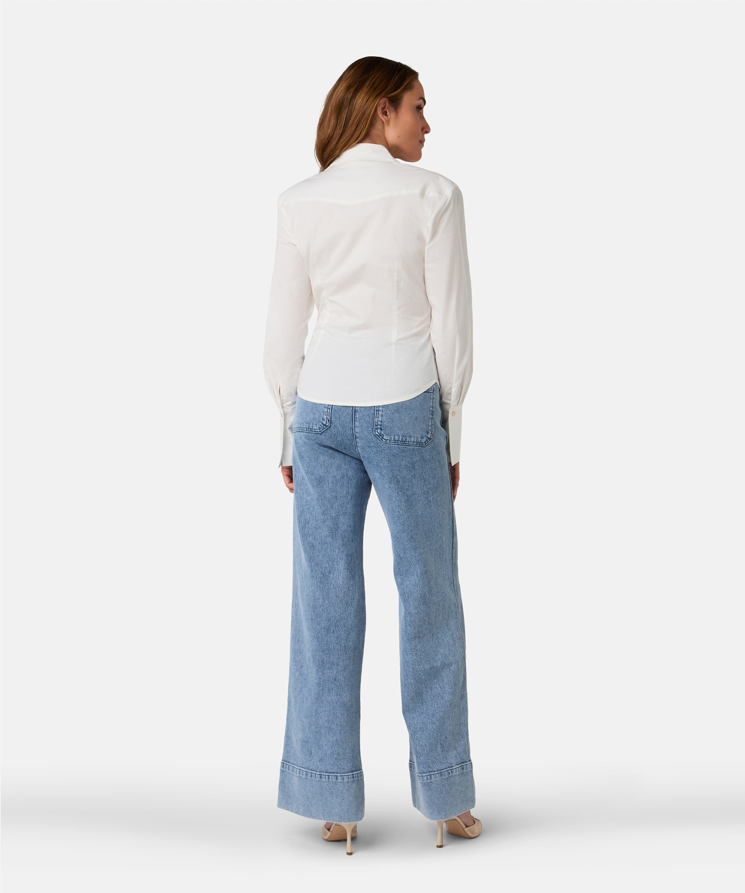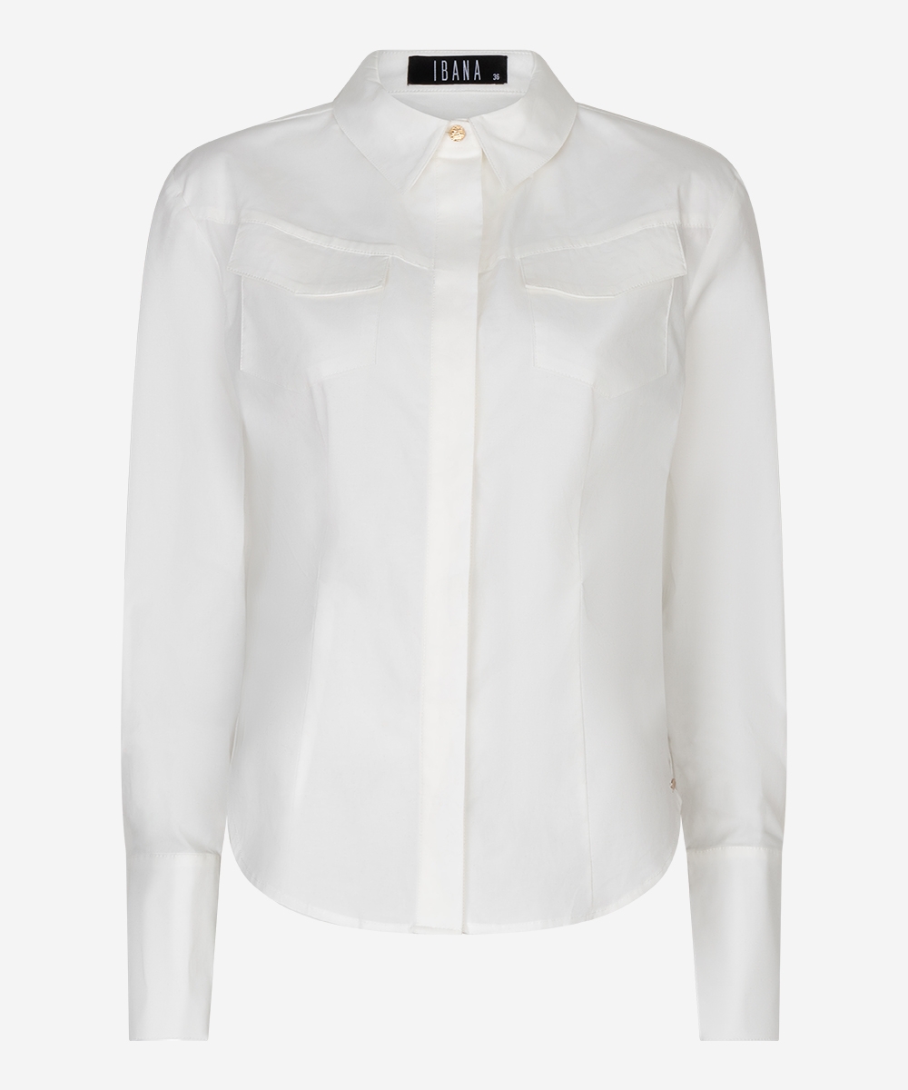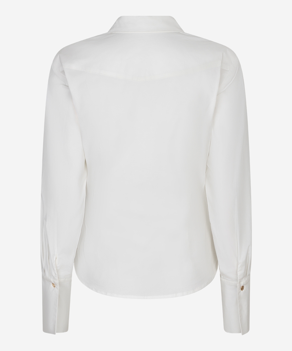 De Brandy blouse in White is een tijdloos item met een vrouwelijke, getailleerde pasvorm. Gemaakt van 100% katoen en voorzien van schoudervullingen en borstzakken, straalt deze blouse zowel kracht als elegantie uit. Een veelzijdige basic die niet mag ontbreken in je garderobe. Styling tip: Combineer net als het model met de Pendan jeans. De perfecte balans tussen casual en chic maakt deze look geschikt voor elke gelegenheid.| Buitenzakken: | 2 borstzakken |