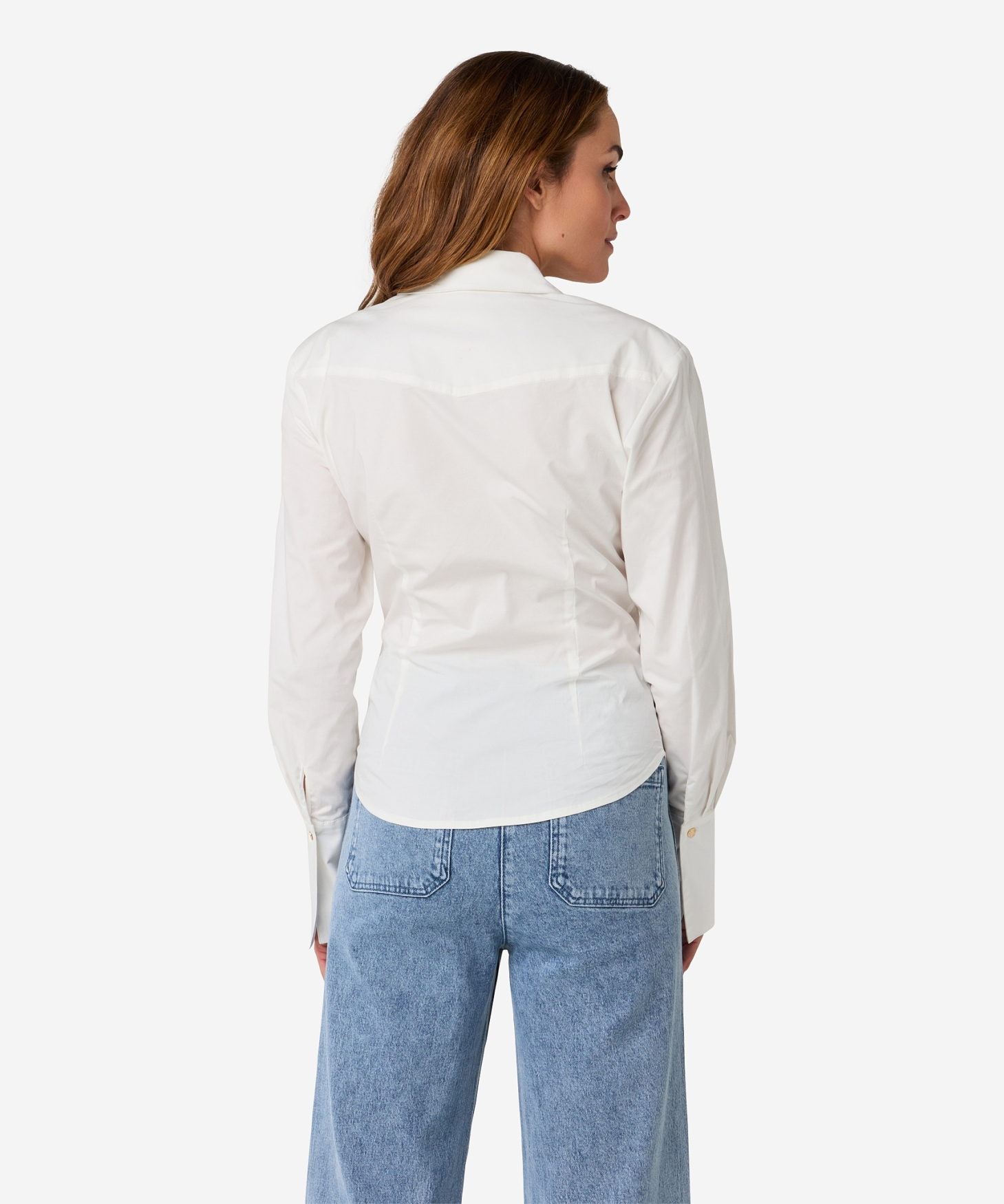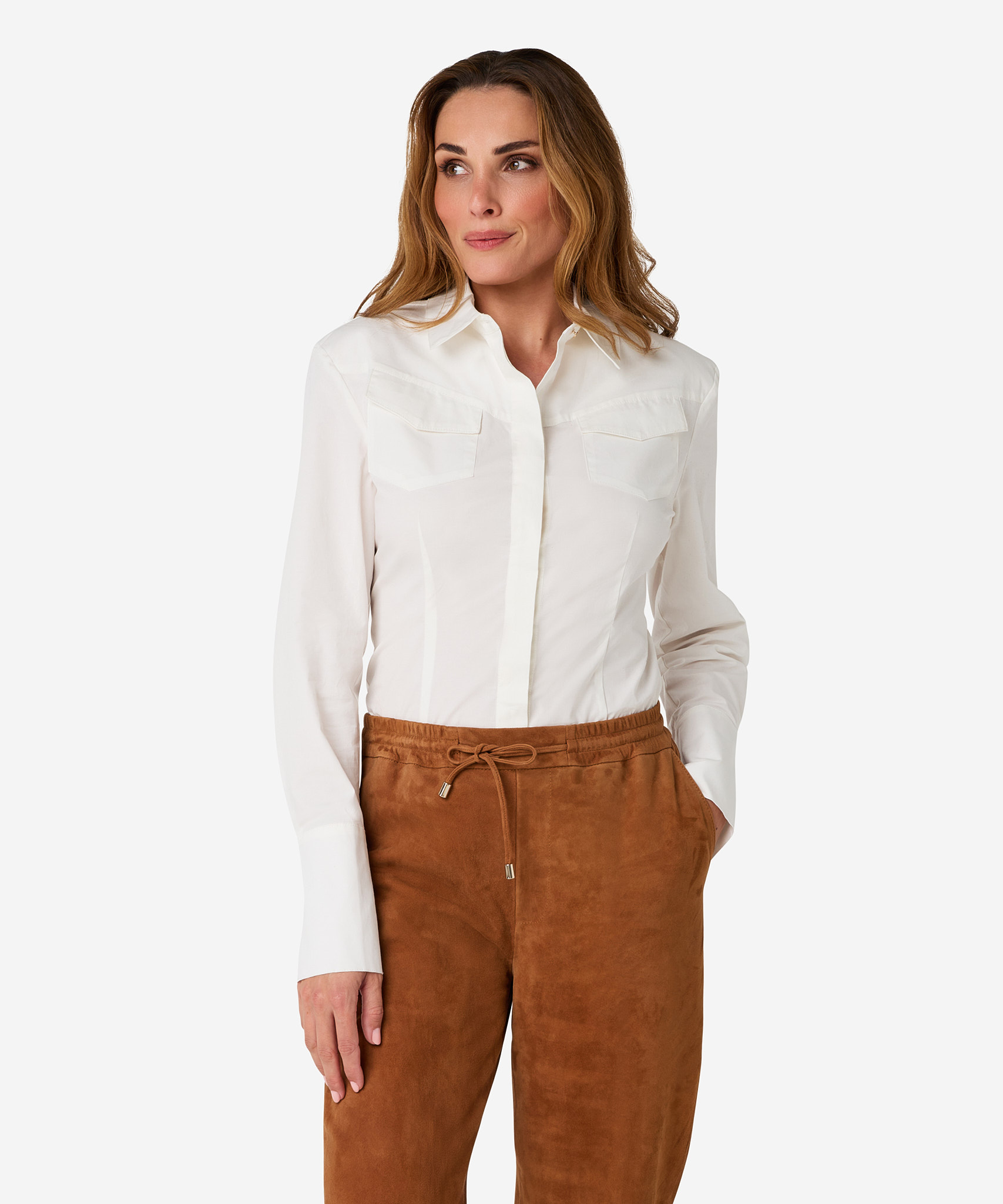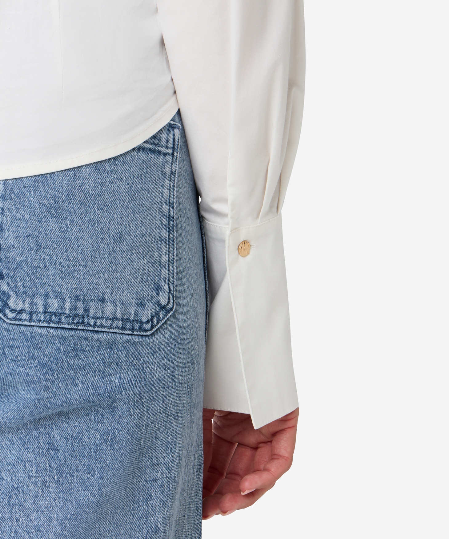 De Brandy blouse in White is een tijdloos item met een vrouwelijke, getailleerde pasvorm. Gemaakt van 100% katoen en voorzien van schoudervullingen en borstzakken, straalt deze blouse zowel kracht als elegantie uit. Een veelzijdige basic die niet mag ontbreken in je garderobe. Styling tip: Combineer net als het model met de Pendan jeans. De perfecte balans tussen casual en chic maakt deze look geschikt voor elke gelegenheid.| Buitenzakken: | 2 borstzakken |