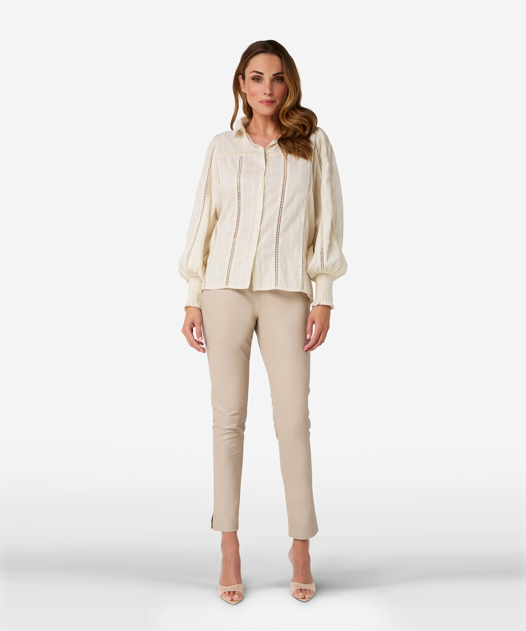 De Briley blouse in Sandstone is gemaakt van katoen en heeft een regular fit met pofmouwen en elastische mouwuiteindes. De handgemaakte details geven de blouse een vrouwelijke uitstraling. Styling tip: Combineer net als het model met de Colette broek in dezelfde kleur voor een stijlvolle ton-sur-ton look met karakter.| Categorie: | Blouses |