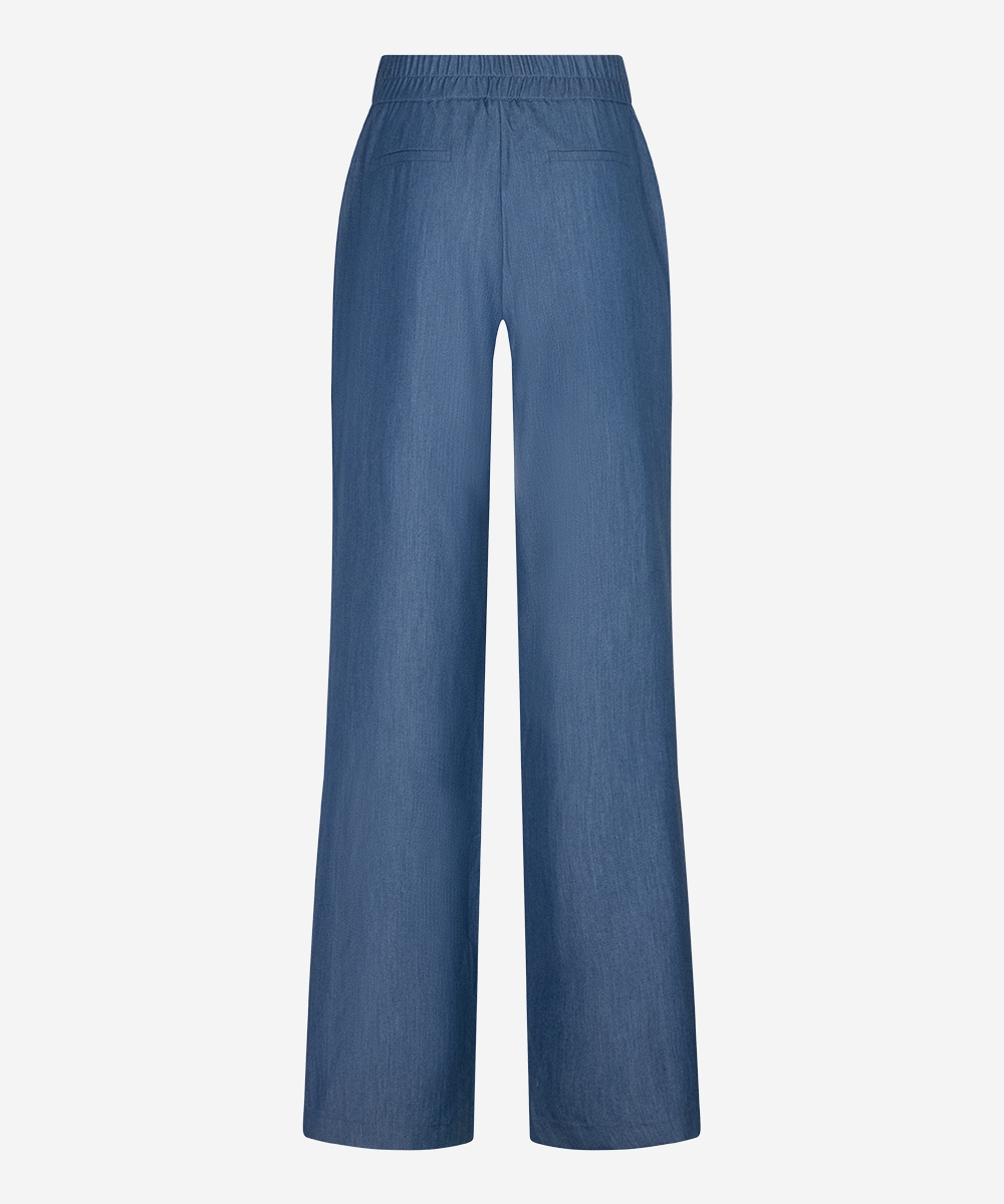 De Pami pants in Denim Blue heeft een wijde pasvorm en is gemaakt van een mix van rayon, polyester en elastaan. De broek heeft twee steekzakken en heeft een high-waisted fit. De stretch waistband zorgt voor extra comfort en een mooie pasvorm. De binnenbeenlengte van de broek is 86 cm. Combineer met de Tami top voor een stijlvolle set.