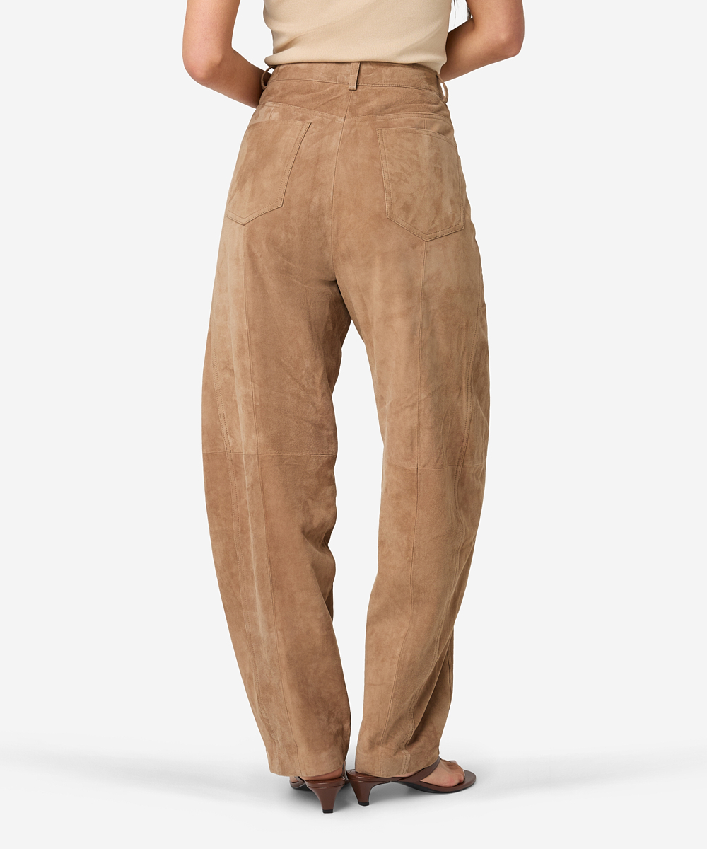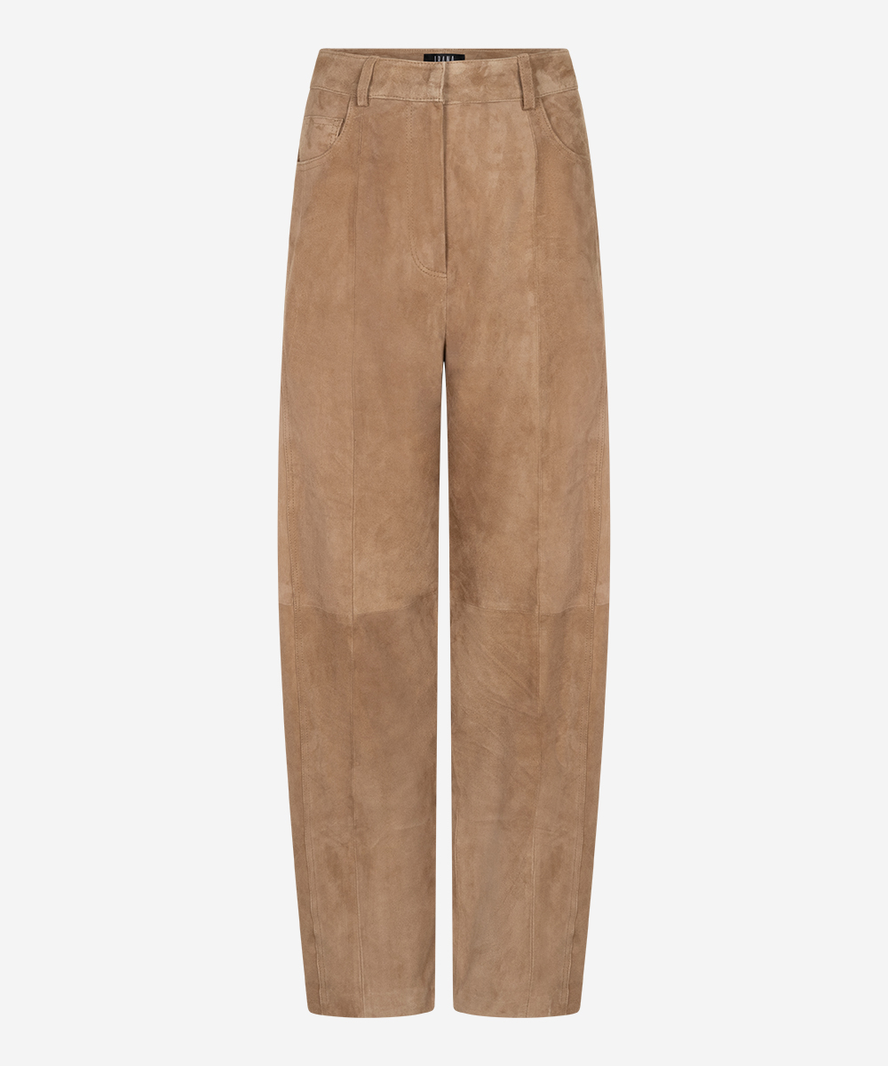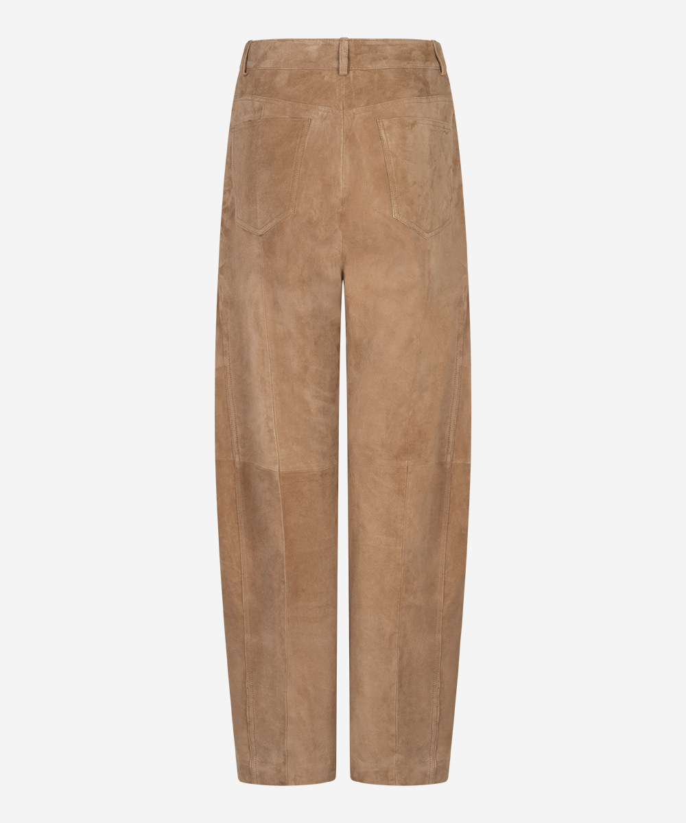 De Parla suède pants in Iced Coffee heeft een wijde pasvorm en is gemaakt van 100% schapenleer. De broek heeft twee steekzakken en een high-waisted fit. De sluiting bestaat uit een hook and eye, rits en knoop. De binnenbeenlengte van de broek is 75 cm en het leer heeft een non-stretch kwaliteit. Combineer met de Jeanna jacket of Jeaf jacket voor een stijlvolle set.