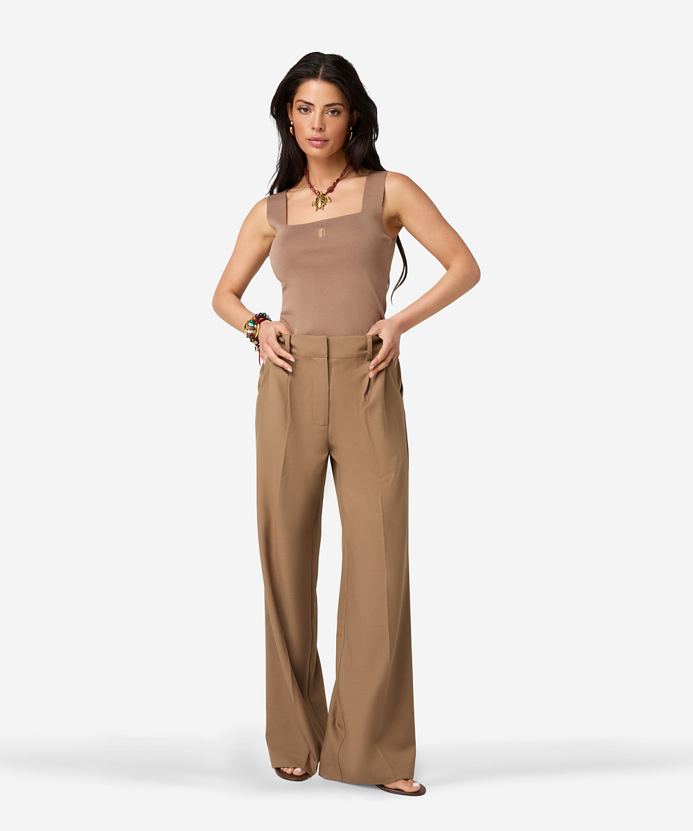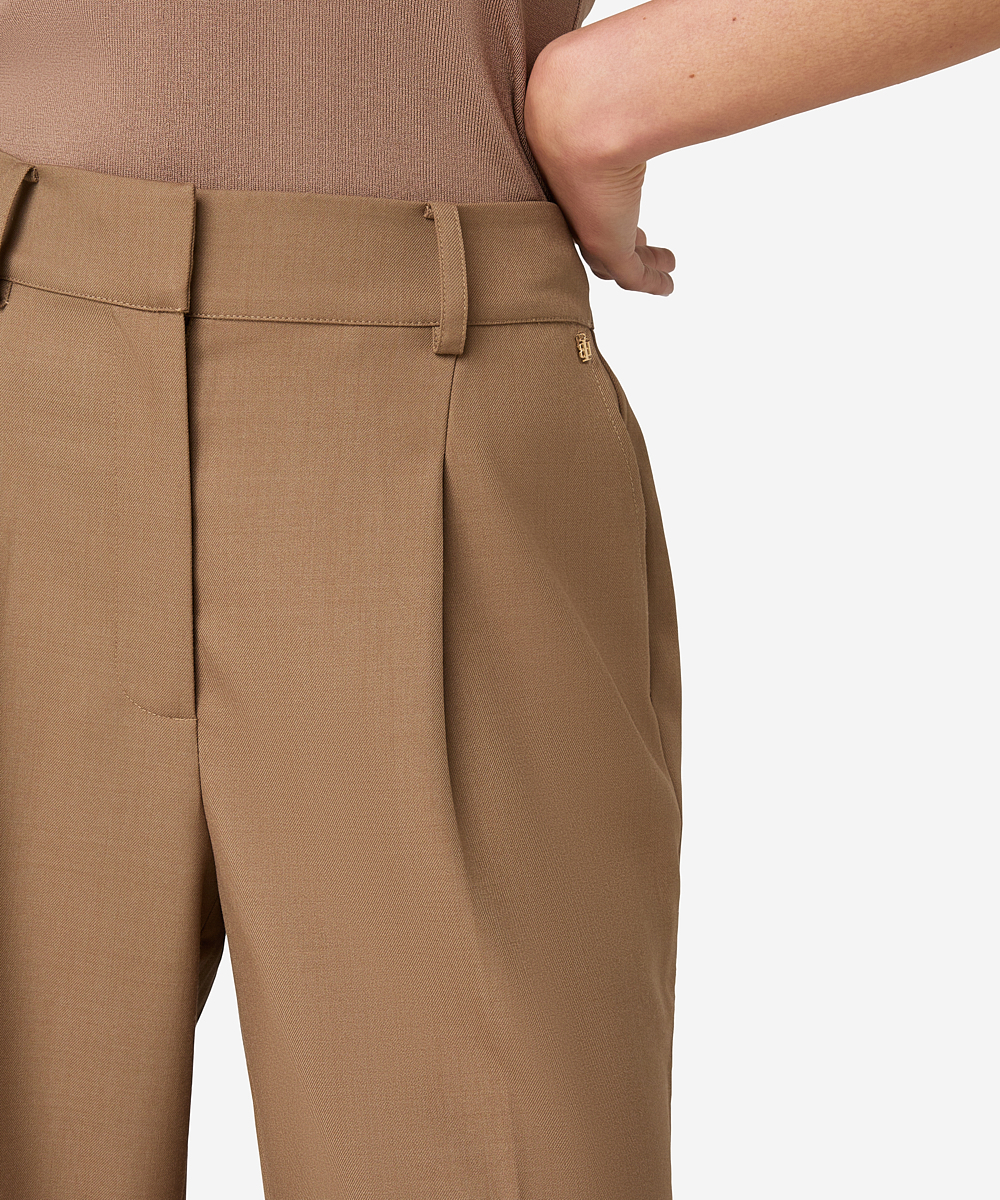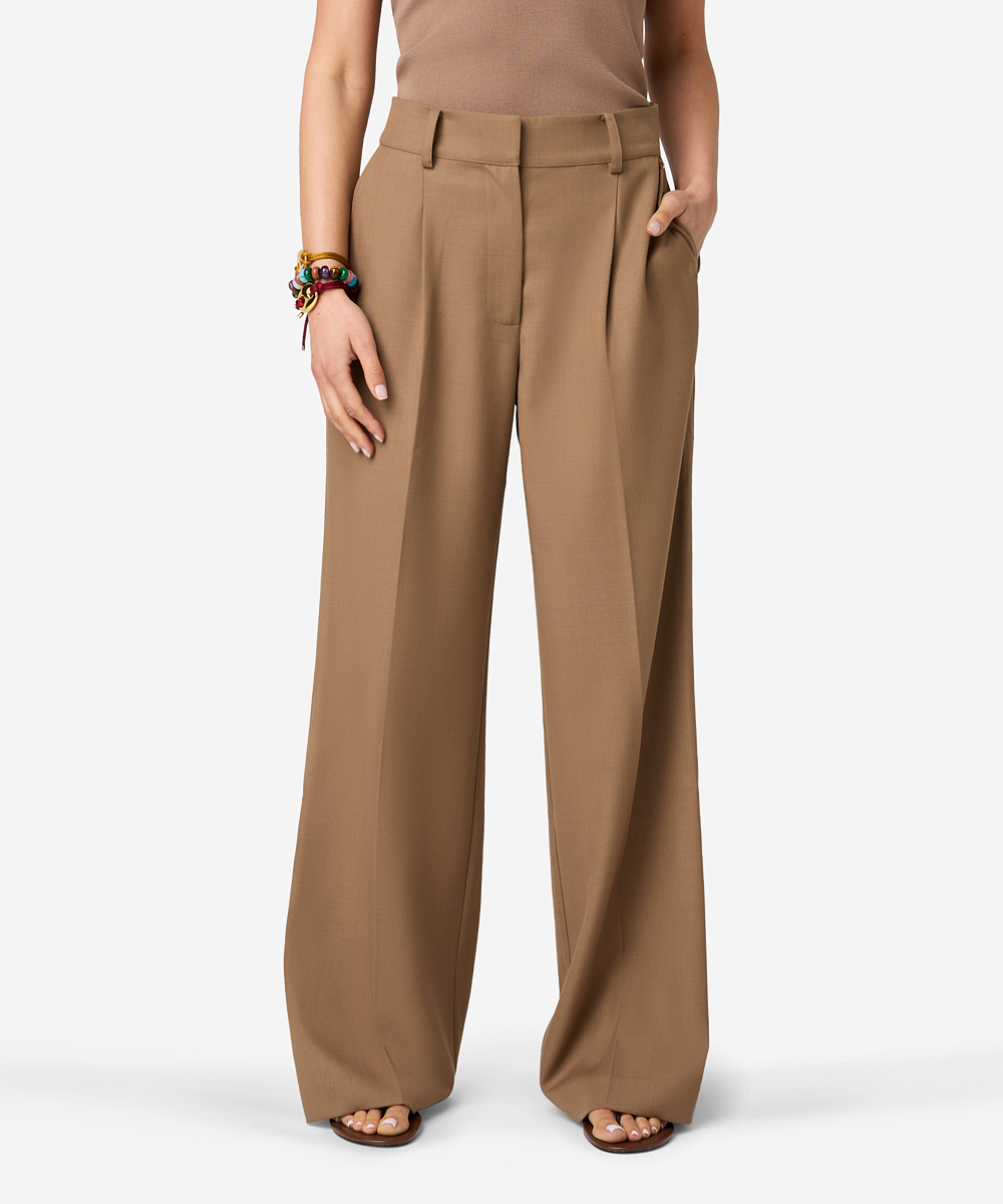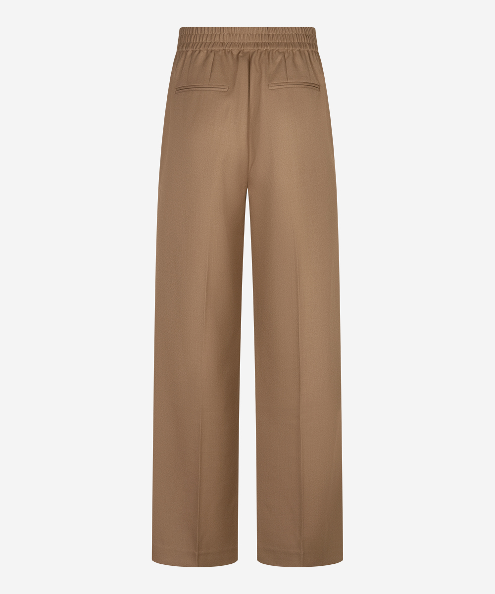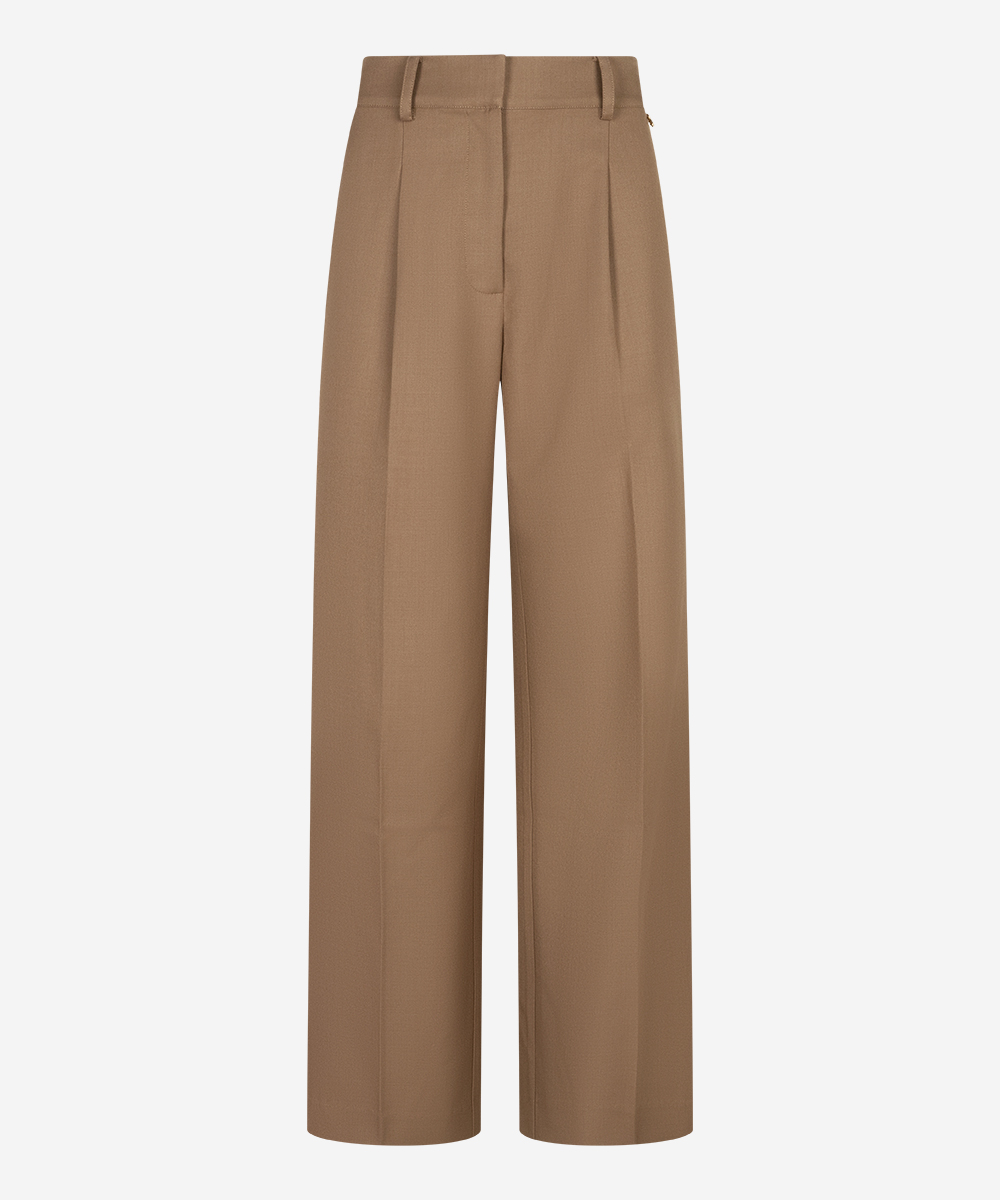 De Pashai pants in Savannah Beige heeft een wijde pasvorm en is gemaakt van een mix van wol en polyester. De broek heeft twee zakken en een high-waisted fit. De sluiting bestaat uit een hook and eye, knoop en rits. De stretchkwaliteit zorgt voor extra comfort. De binnenbeenlengte van de broek is 80,5 cm. Combineer met de bijpassende Janey blazer voor een stijlvolle set.