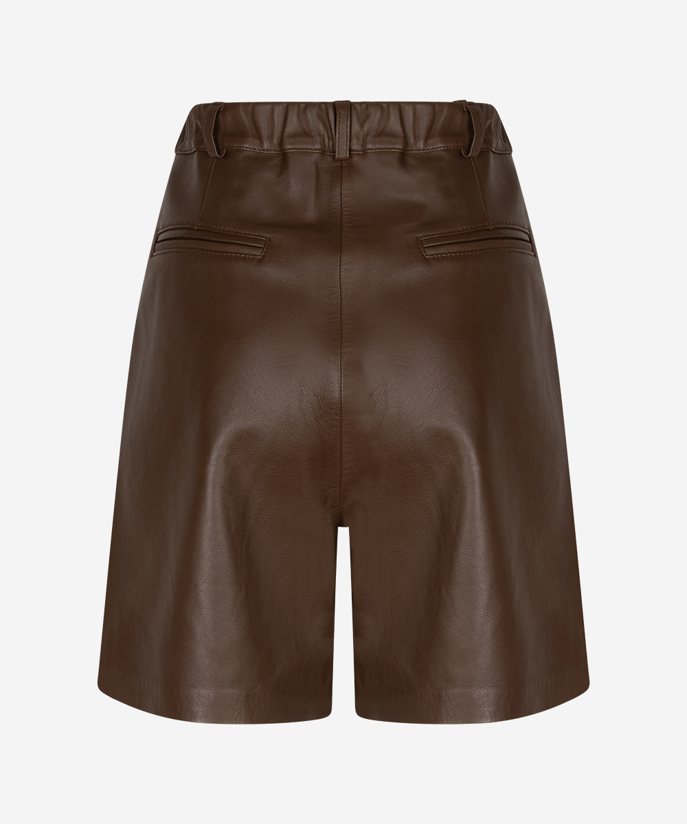De Peyah shorts in Bean Brown heeft een regular pasvorm en is gemaakt van 100% schapenleer. De shorts heeft een non-stretch kwaliteit en een tijdloze uitstraling. Door het minimalistische ontwerp is de broek gemakkelijk te combineren binnen je garderobe. De Peyah kan het beste gereinigd worden door een specialist. Combineer met de bijpassende Teyah top voor een stijlvolle set.