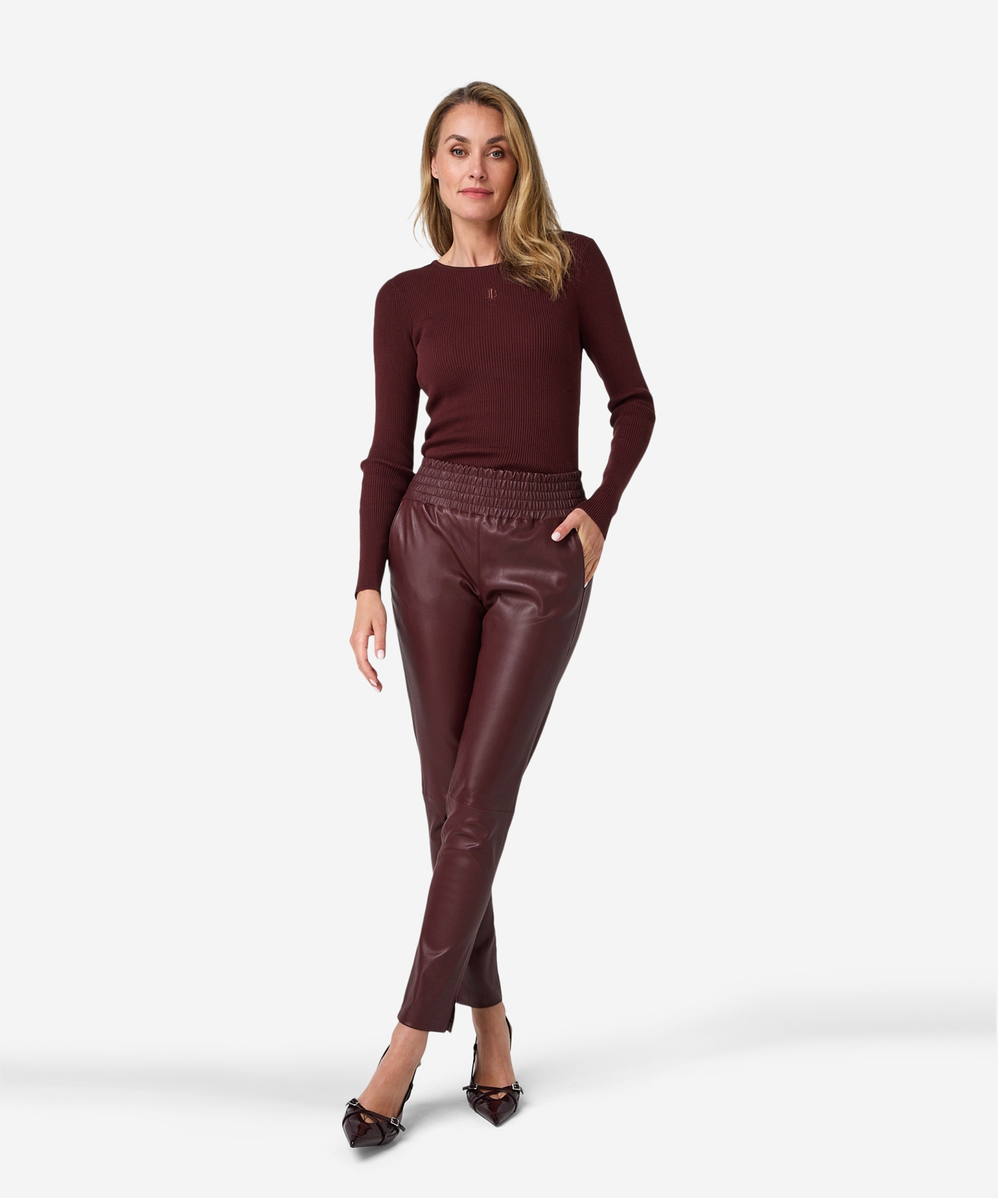 De Colette pants in de kleur Burgundy is de perfecte musthave broek voor jouw garderobe. Deze tijdloze en veelzijdige broek is gemaakt van stretch en boterzacht leer. Door de hoge tailleband zorgt deze broek tevens voor een flatterend effect en comfort. Stylingtip: Combineer de broek met de Tamora Longsleeve in dezelfde kleur voor een ton-sur-ton outfit.| Binnenbeenlengte: | 74cm |