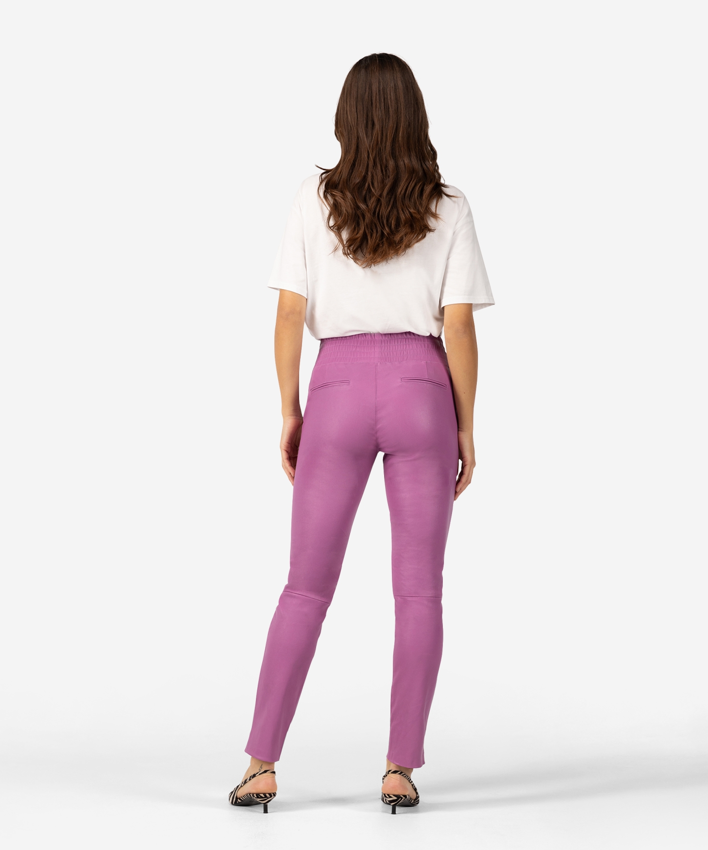 Onze bestverkochte broek de Colette is dit seizoen terug in een nieuwe kleur, genaamd Fucsia. De broek is gemaakt van boterzacht stretch leer en heeft twee steekzakken. De hoge elastieke band zorgt samen met het stretchleer voor de ultieme pasvorm en comfort. De Colette is gemakkelijk te combineren, zowel stoer met een sneaker als chique met een laarsje of hak.| Binnenbeenlengte: | 74cm |