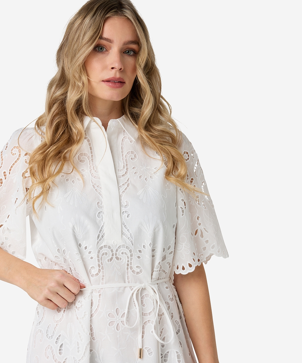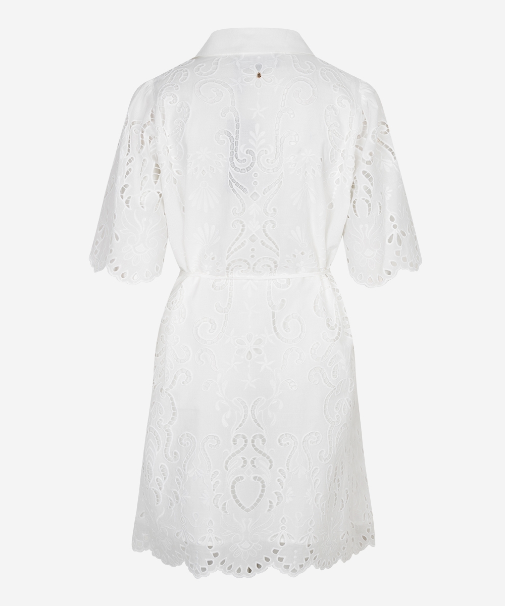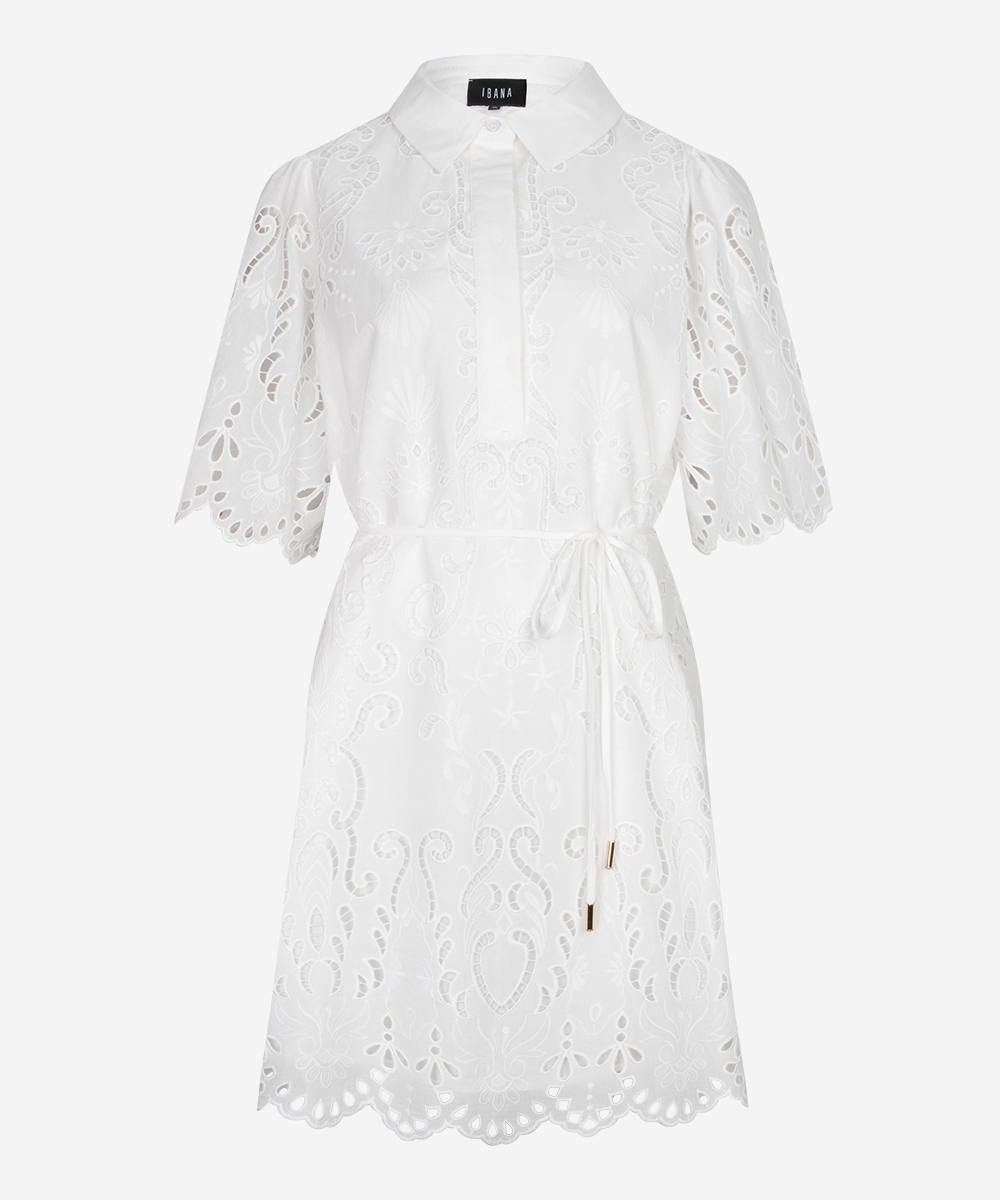 De Danya dress in de kleur Perla White is een zomerse klassieker met verfijnde details. Deze 100% katoenen jurk heeft een kraag, een regular fit en elegante driekwart mouwen. De non-stretch kwaliteit en het strikceintuur in de taille zorgen voor een natuurlijk vrouwelijk silhouet. De subtiele embroidery maakt het geheel luchtig en stijlvol. Combineer de Danya dress met leren slippers en een raffia tas.
