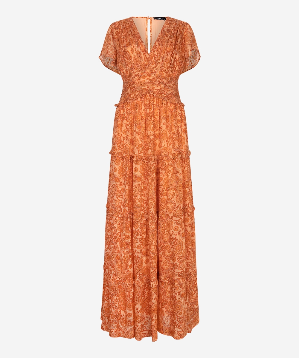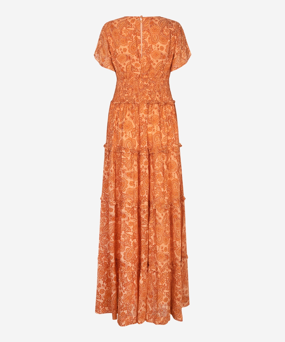 De Daryn paisley dress in de kleur Paisley Naranja is een elegante jurk met een speelse print. Deze jurk is gemaakt van zachte viscose met stretch, waardoor hij soepel valt en comfortabel aanvoelt. De getailleerde fit en diepe v-hals accentueren het silhouet op een verfijnde manier. Combineer de Daryn dress met minimalistische sandalen of een leren slipper voor een zomerse touch.