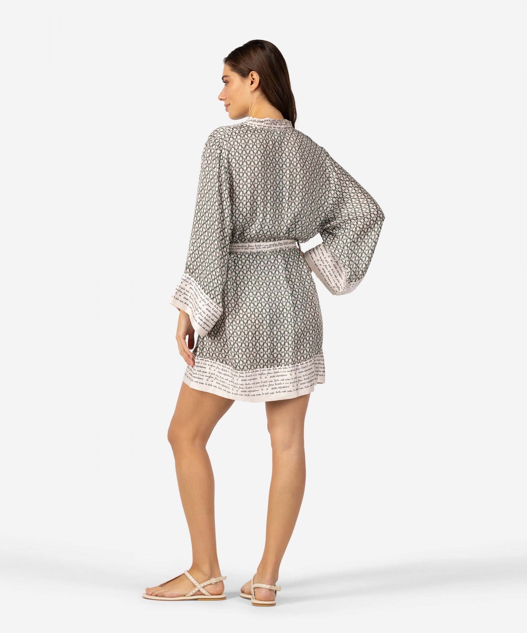 De Dilara in de print Diamante is perfect voor deze zomer. De Dilara is een kimono jurk die over elk badpak of bikini kan als cover-up. De kimono heeft een matching ceintuur om hem ook dicht te kunnen dragen. Draag het matching Alanne badpak eronder en je steelt de show op het strand.| Categorie: | Jurken |