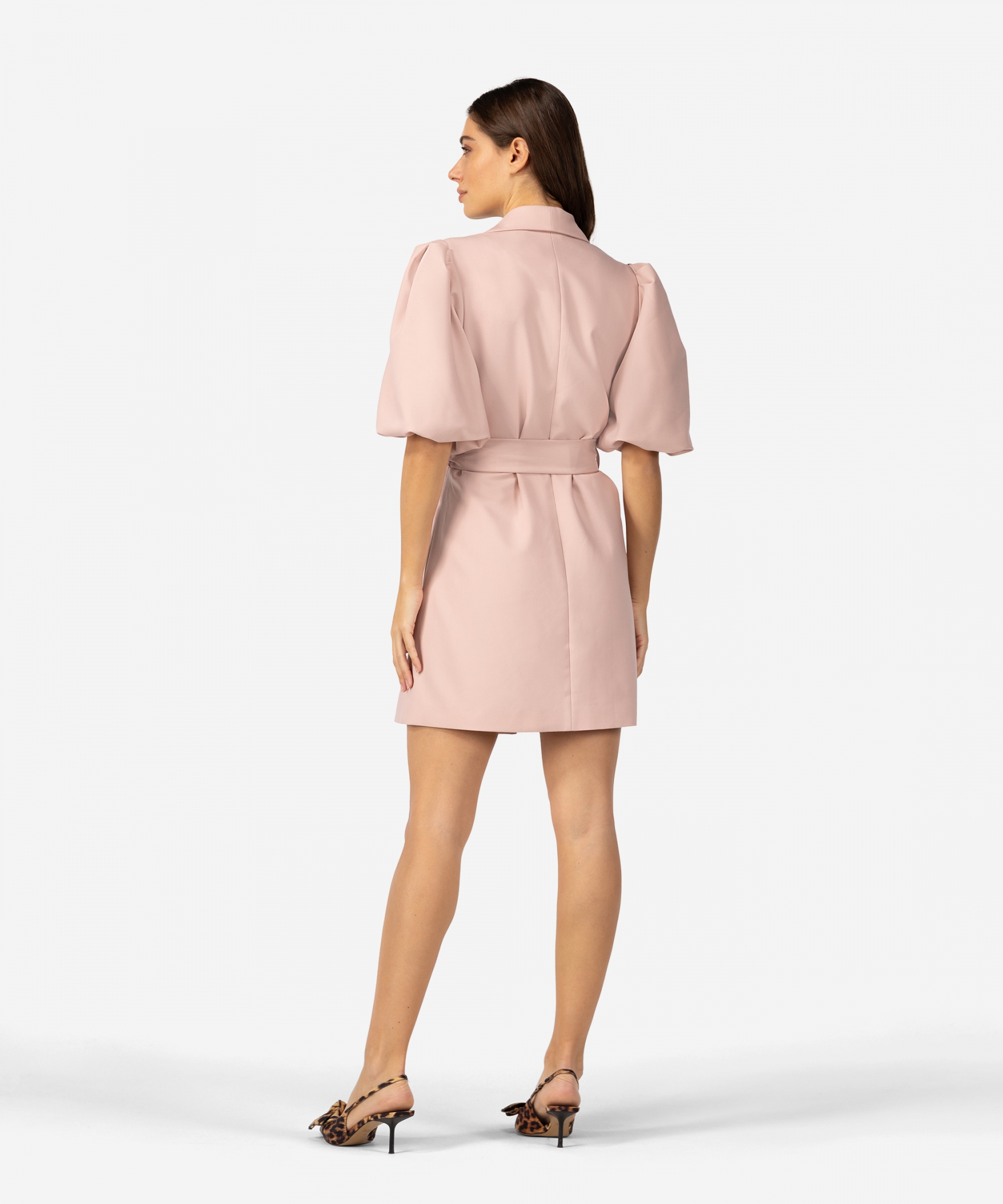 Ben jij dit seizoen op zoek naar een mooie blazerjurk? We've got you! De Dulcia jurk in de kleur Rose heeft een rechte pasvorm maar door middel van het bijpassende ceintuur creëer je moeiteloos een mooie taille. De jurk heeft eye-catching ballonmouwen wat jouw outfit net dat beetje extra geeft! Heb jij een feestje in aantocht? Combineer de Dulcia met een paar hakken. Wil je meer voor een casual look gaan? Met onze Amiro Slippers, sneakers of loafers kom jij de zomer ook goed door.