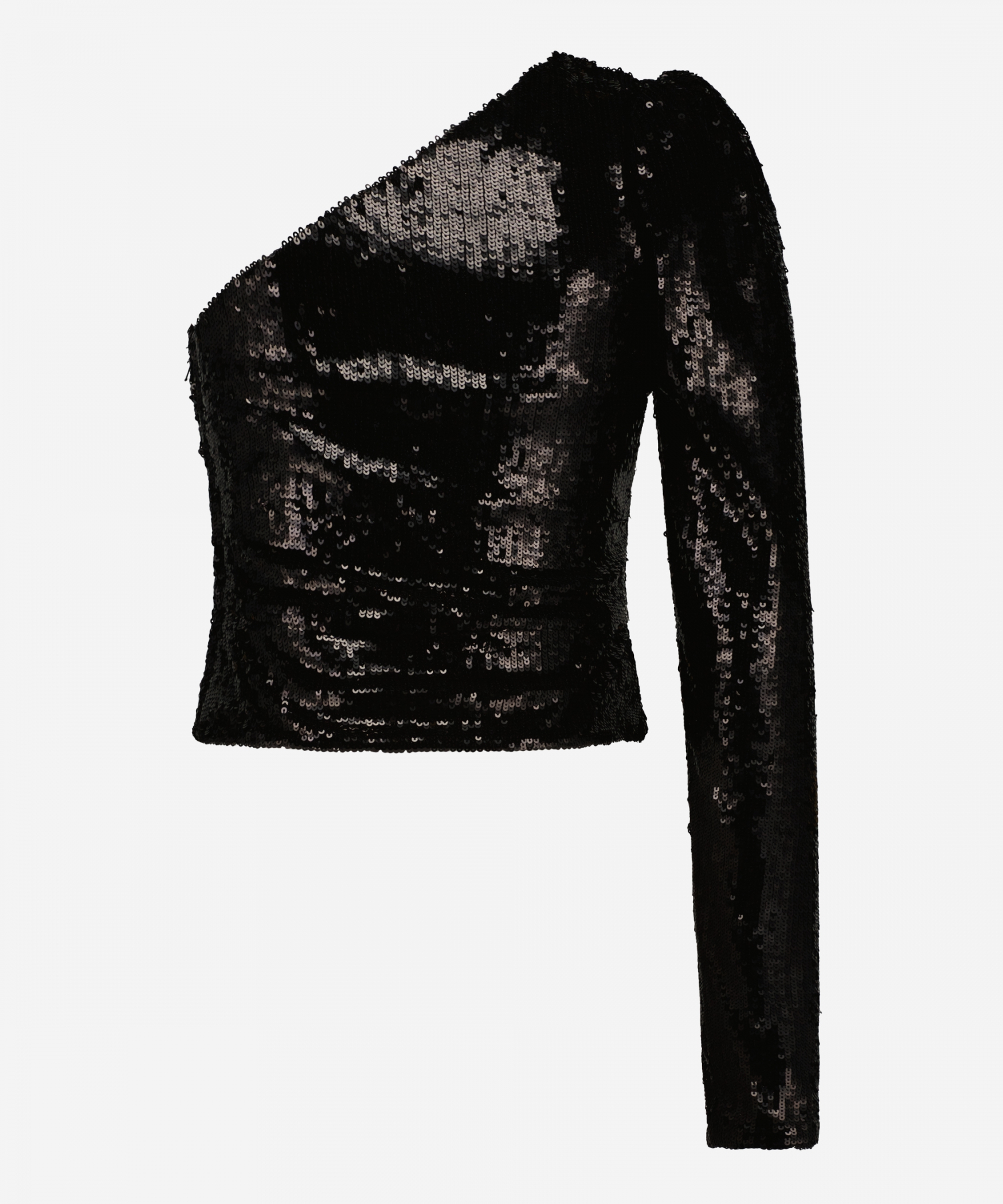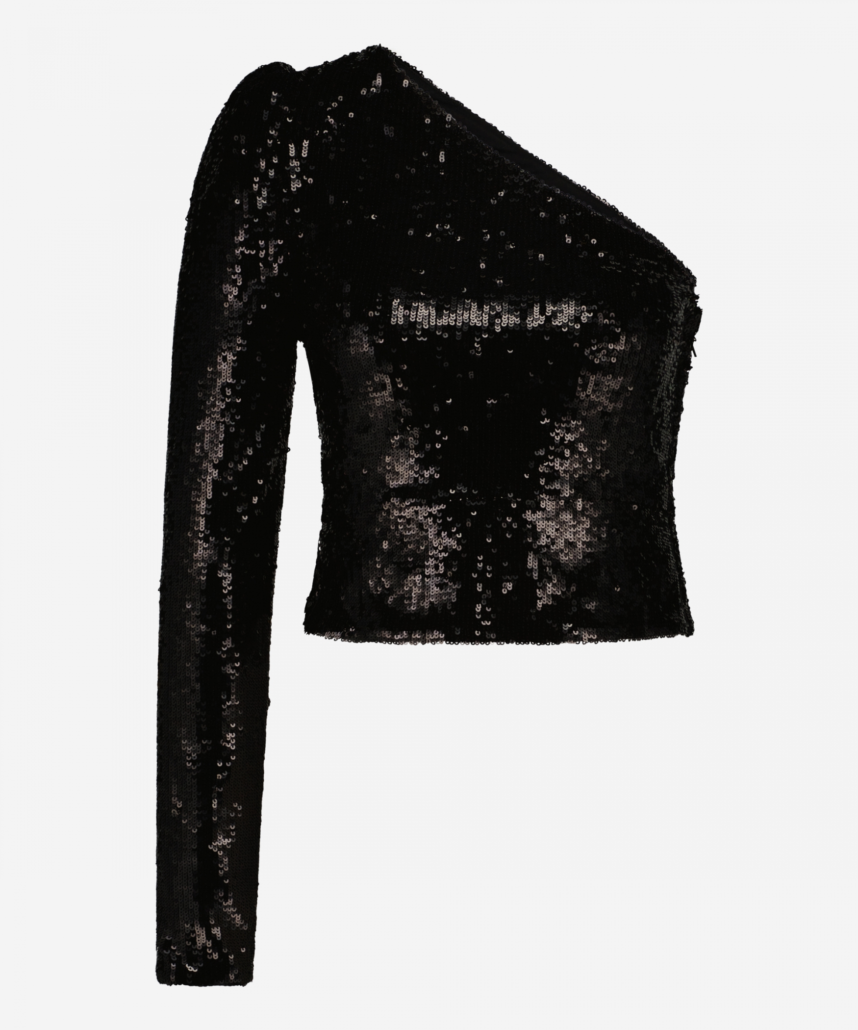 Maak kennis met de Finn top in de kleur black. Het topje is gemaakt van lovertjes en heeft een one-schouder fit met een lange mouwlengte. De top bevat een licht gepofte schouder en een ritssluiting op de zijde. Deze top is goed te combineren met onze Finley broek in de kleur black. De Finn top is de ultieme keuze om je look te verfijnen en te laten schitteren bij diverse gelegenheden.