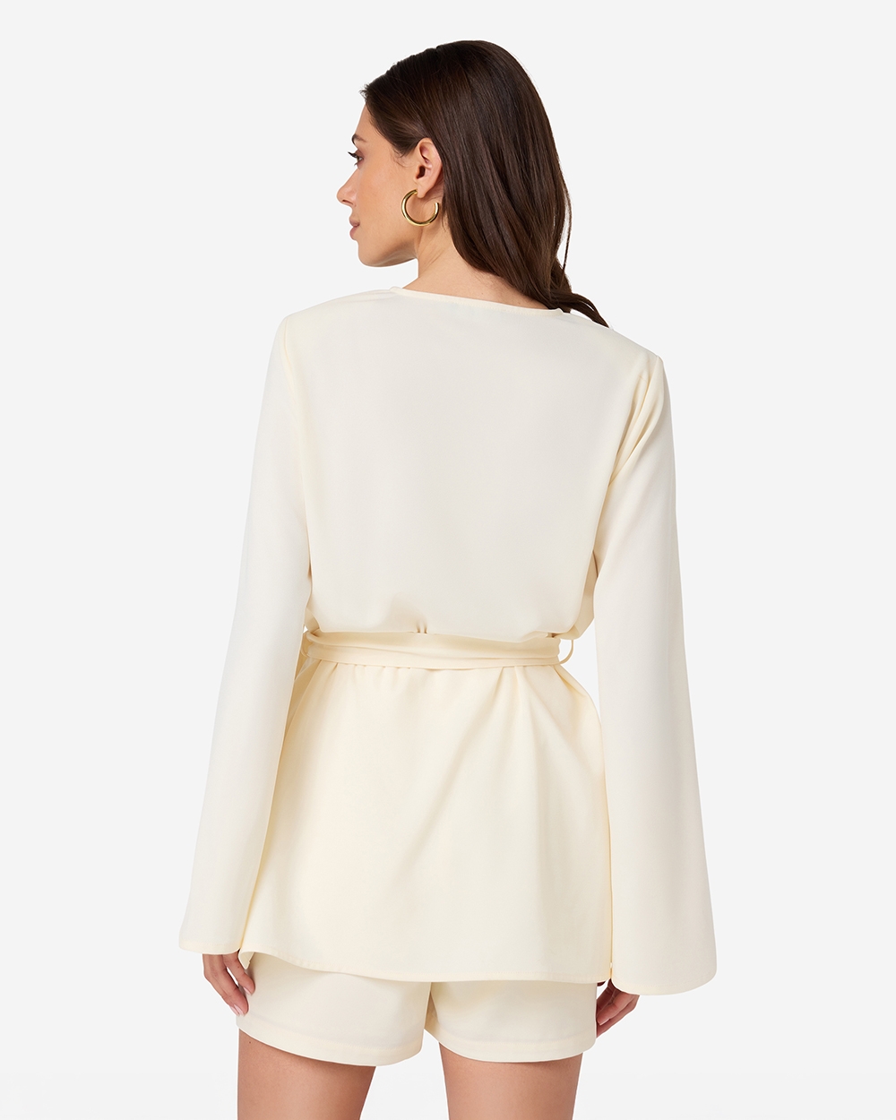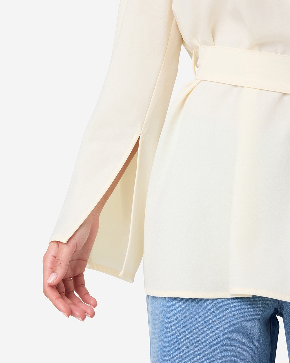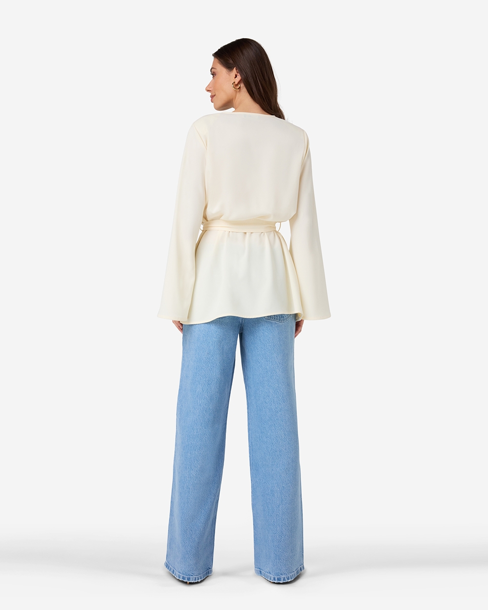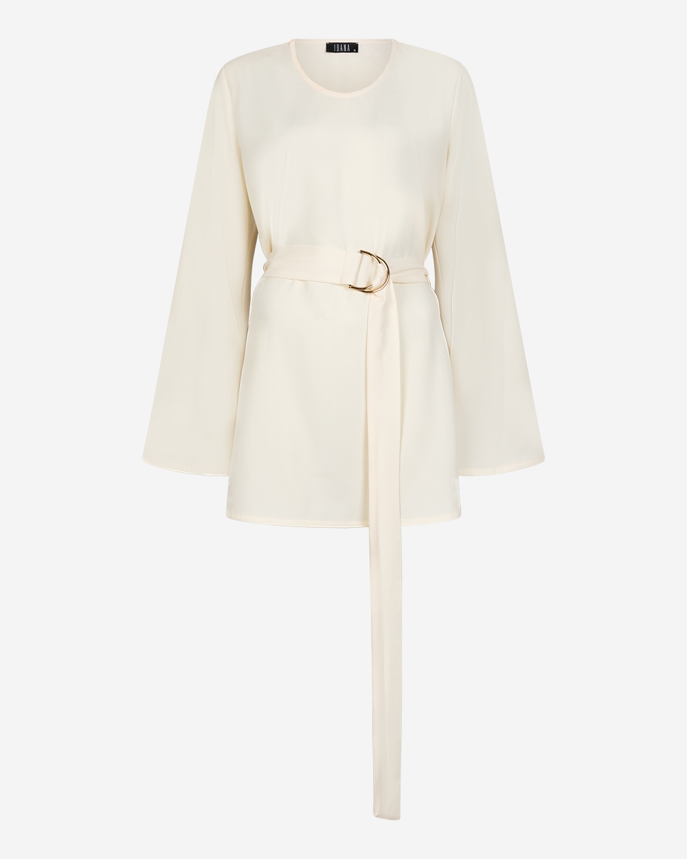 Meet Franky! Deze Off-White top met ronde hals en vleermuismouwen heeft een relaxte fit én een bijpassende ceintuur met lichtgouden gesp. Dat maakt de top net even anders dan anders! De top is voorzien van schoudervullingen welke gemakkelijk eruit te halen zijn door middel van drukknoopjes. Draag de Franky met de bijpassende Maasy Shorts voor een zomerse co-ord look of combineer met de Hailey Jeans voor een casual vibe.
