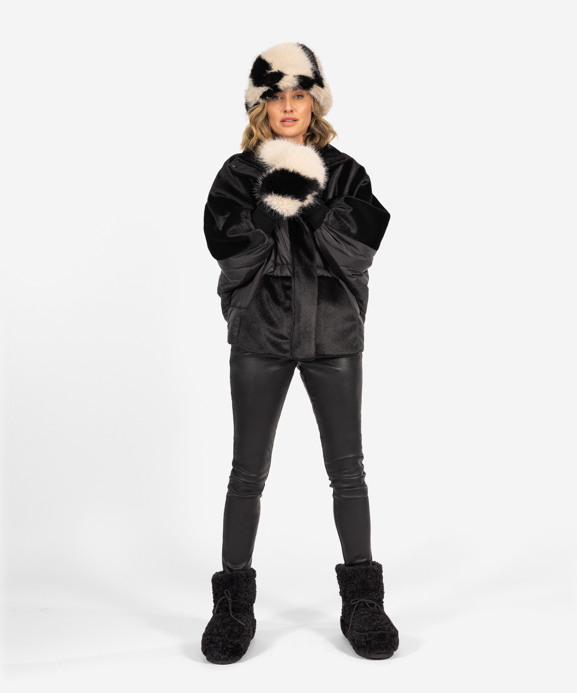DE FAUX FUR GLOVES IN BLACK/BEIGE
