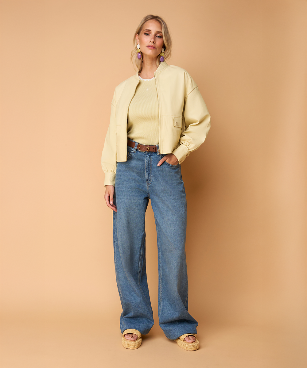 De Jackes jacket in de kleur Manteca Yellow is een moderne en vrouwelijke toevoeging aan je zomergarderobe. Dit leren jasje heeft een ronde hals, een regular fit en twee handige zijzakken. Combineer de Jackes jacket met de Timora top en de Pristina jeans.