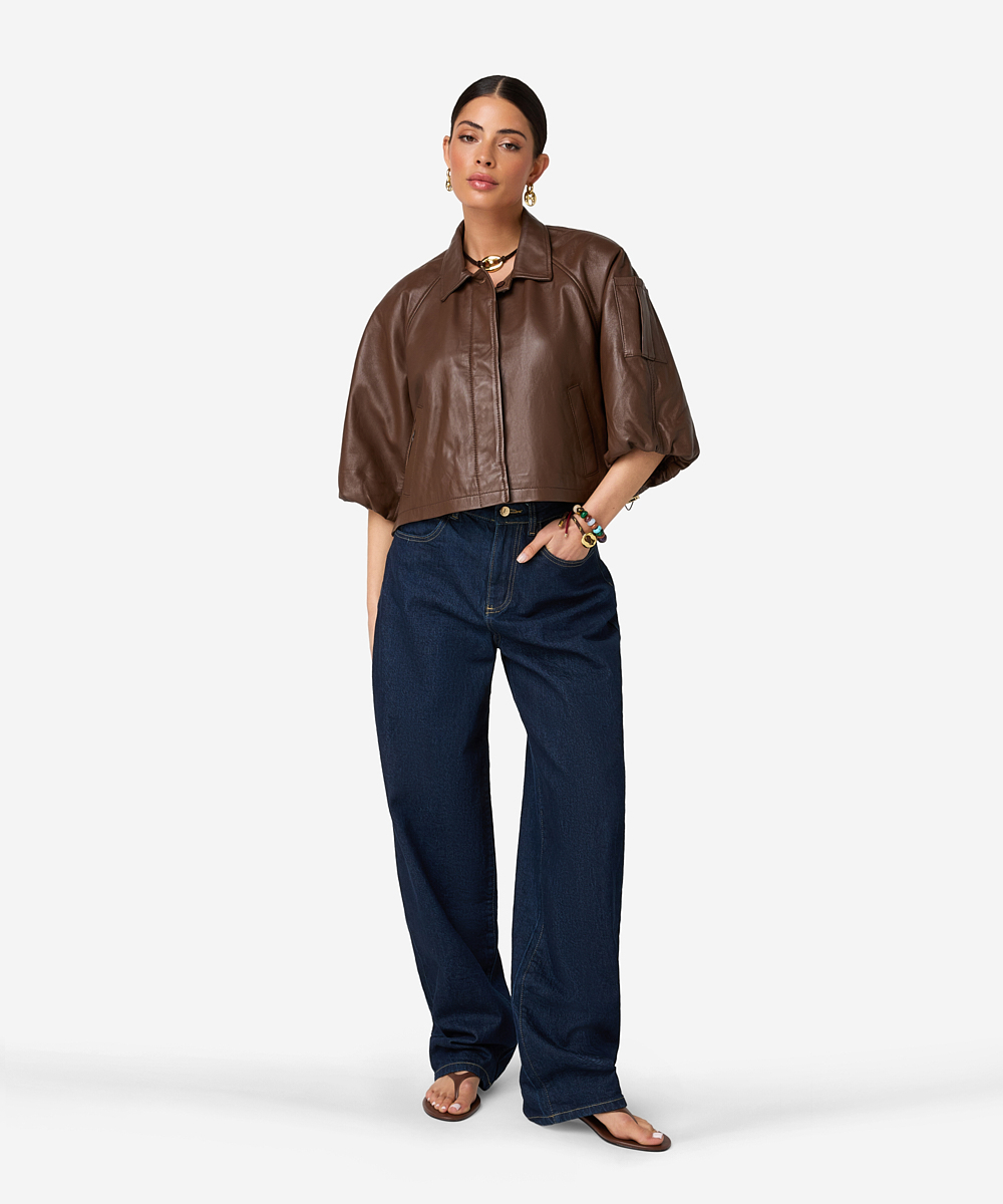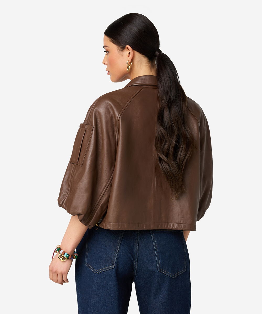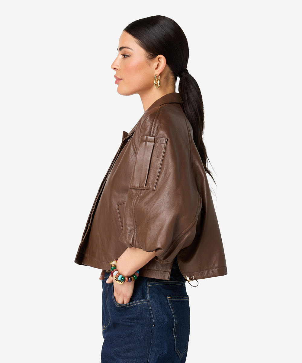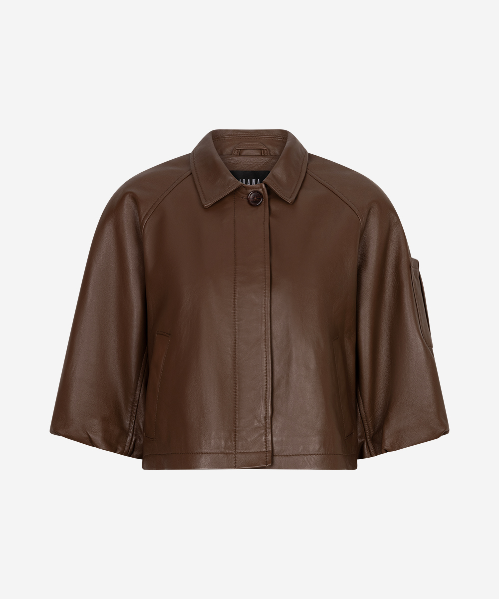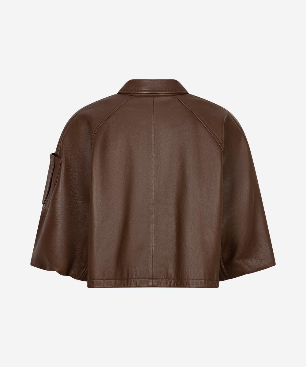 De Jaliana jacket in Vintage Brown heeft een ronde hals en een wijde pasvorm. De jas is gemaakt van 100% hoogwaardig kwaliteitsleer en heeft twee steekzakken aan de voorkant. Het minimalistische ontwerp maakt dit jasje een veelzijdig en tijdloos item voor verschillende looks. De jas heeft een non-stretch kwaliteit en kan het beste gereinigd worden door een specialist. Combineer met de Peyah pants voor een krachtige set of met je favoriete jeans.