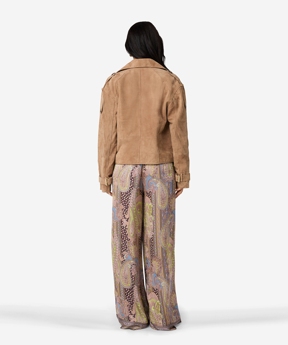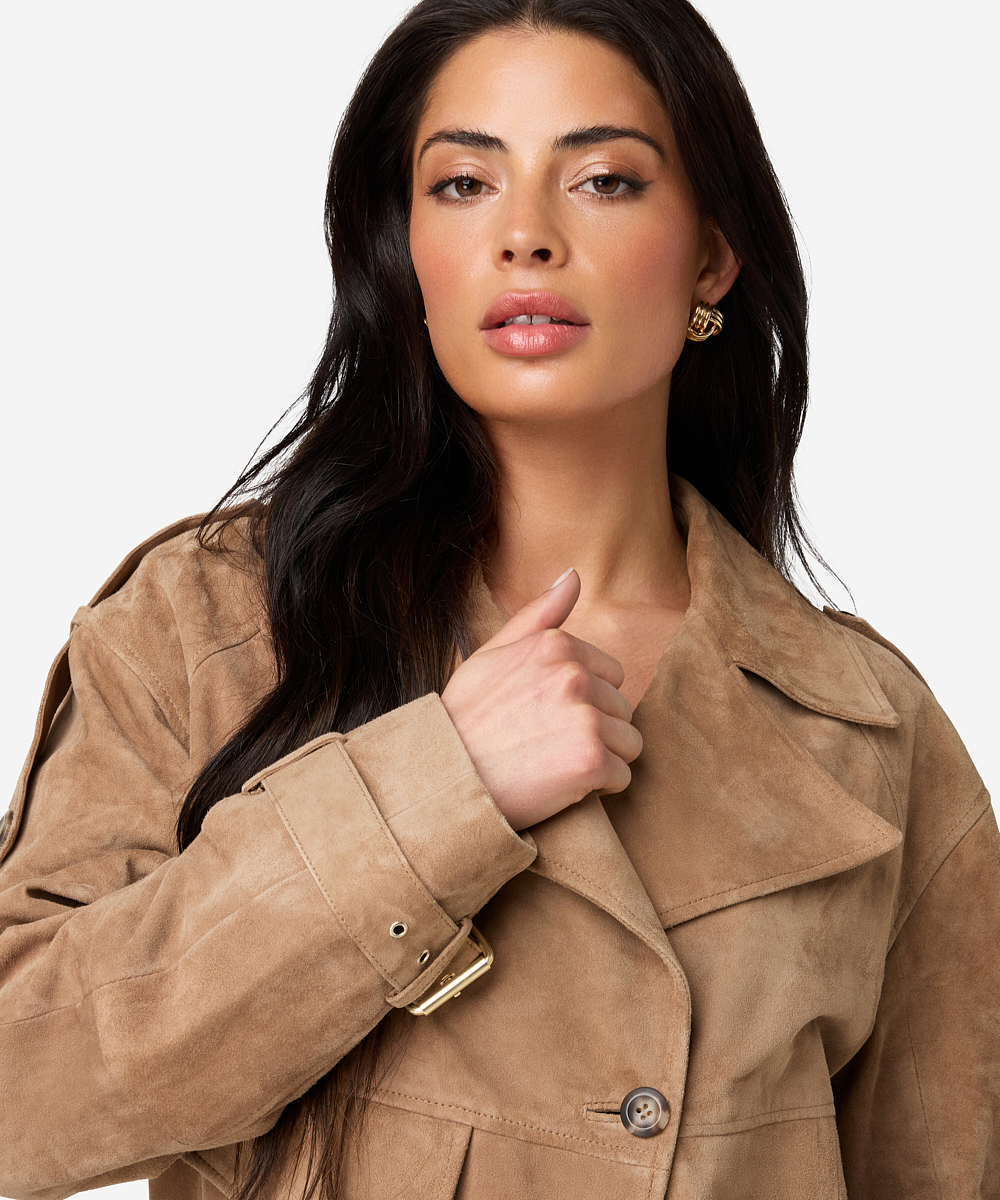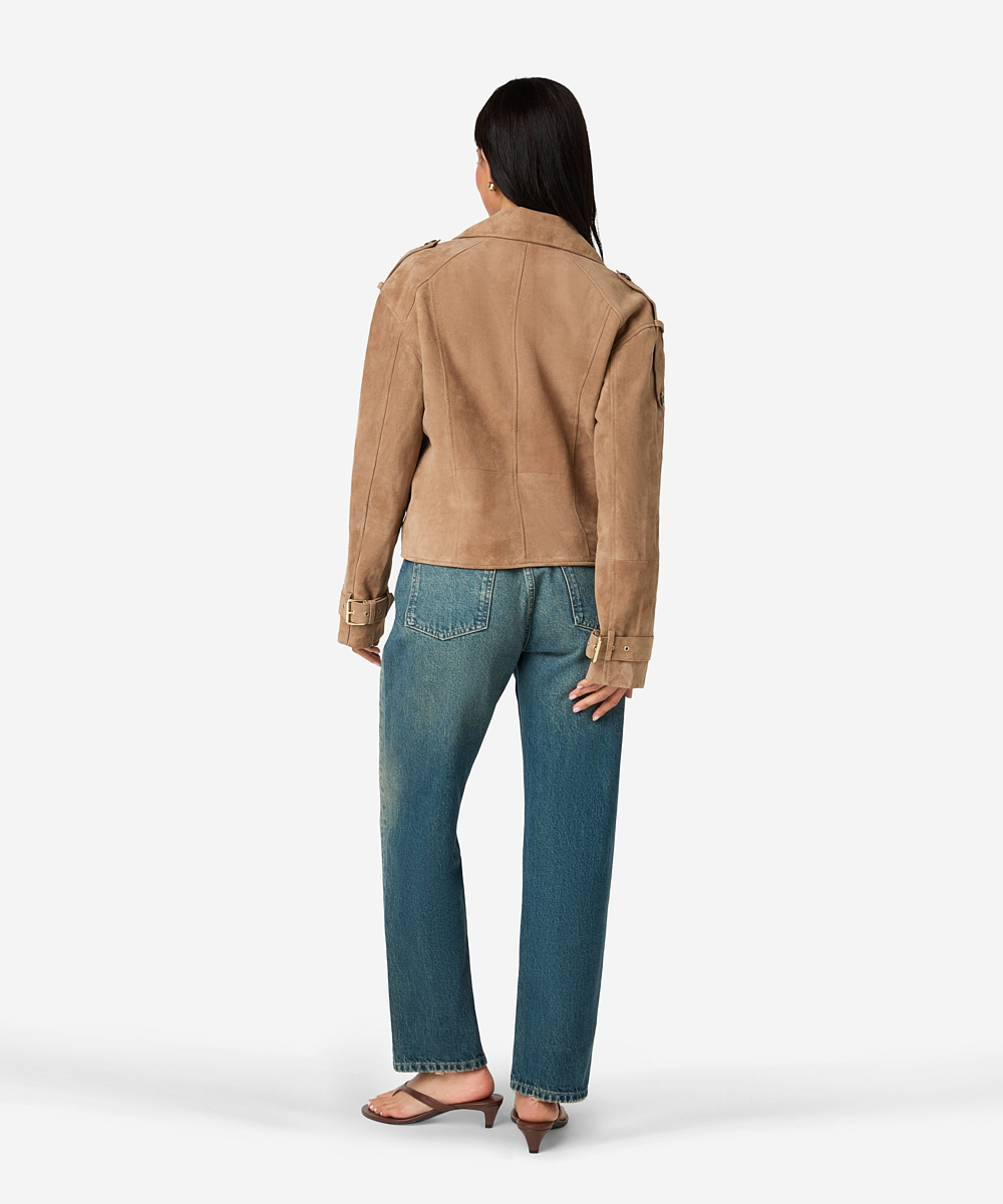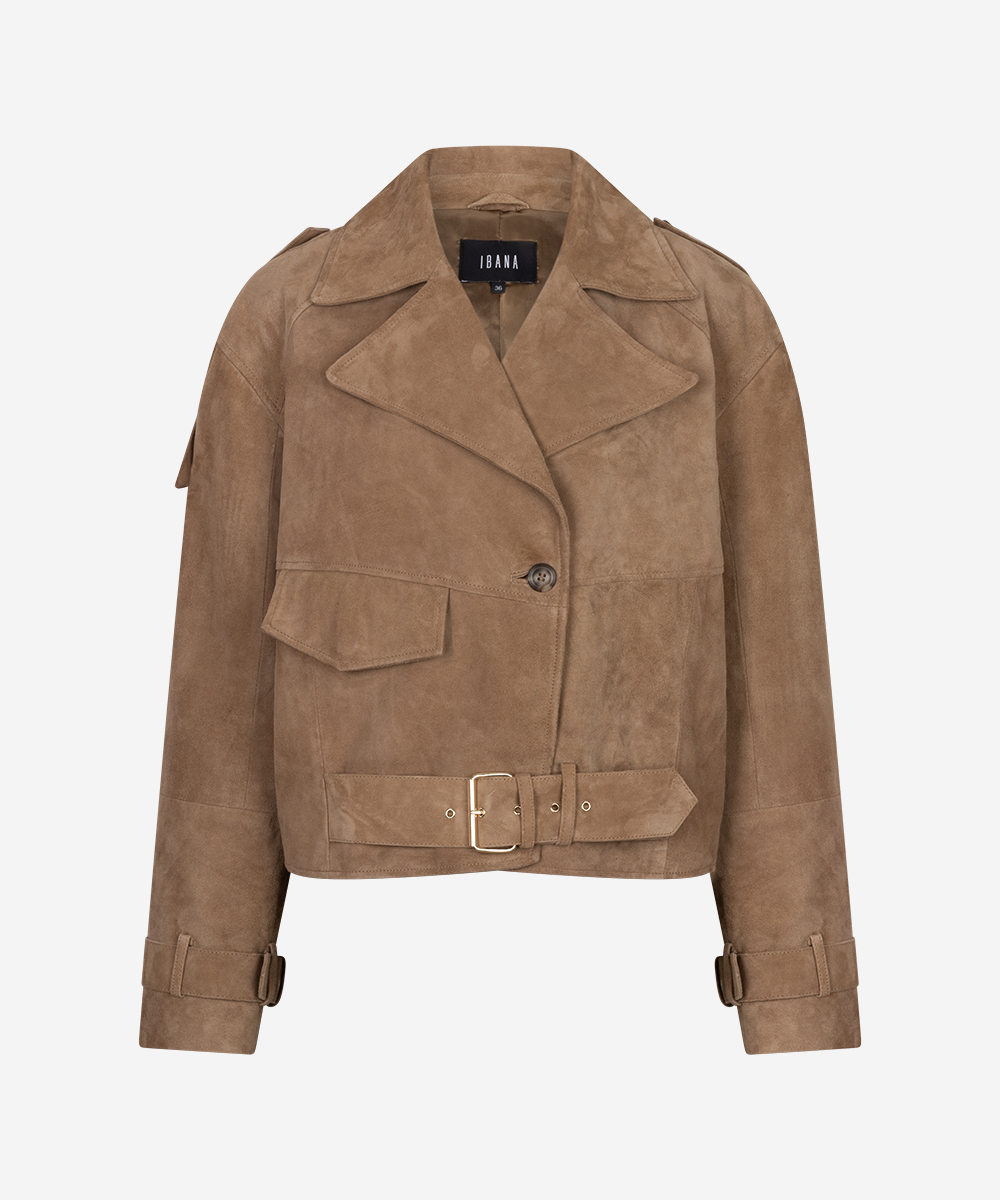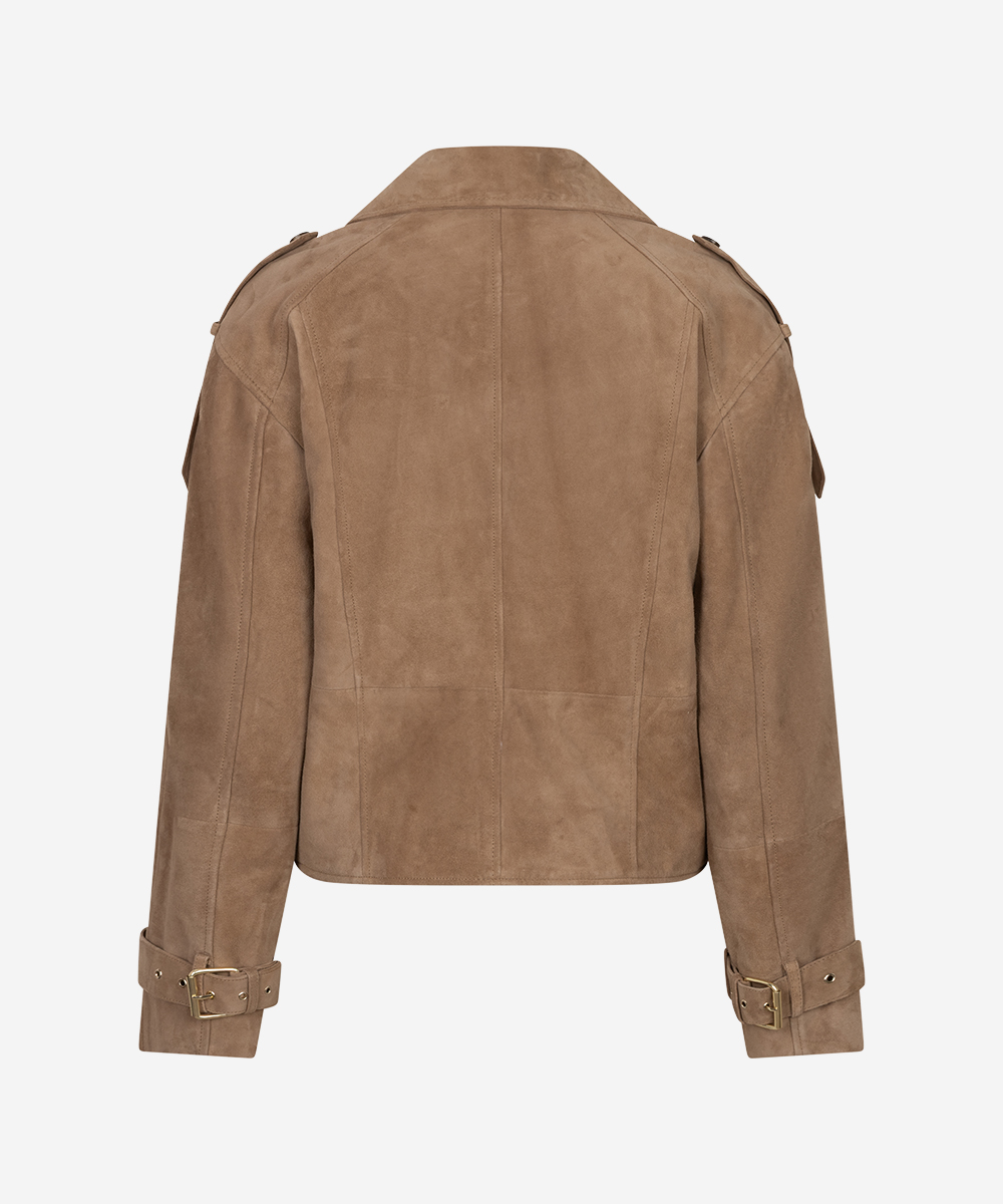 De Jalissa suede jacket in Iced Coffee heeft een kraag en een lichtwijde pasvorm. Het jasje is gemaakt van 100% geiten suède en heeft een non-stretch kwaliteit. Het subtiele neppe zakje op de borst geeft het jasje een luxe uitstraling. Combineer met de Parla pants voor een stijlvolle set of draag het jasje met andere items.