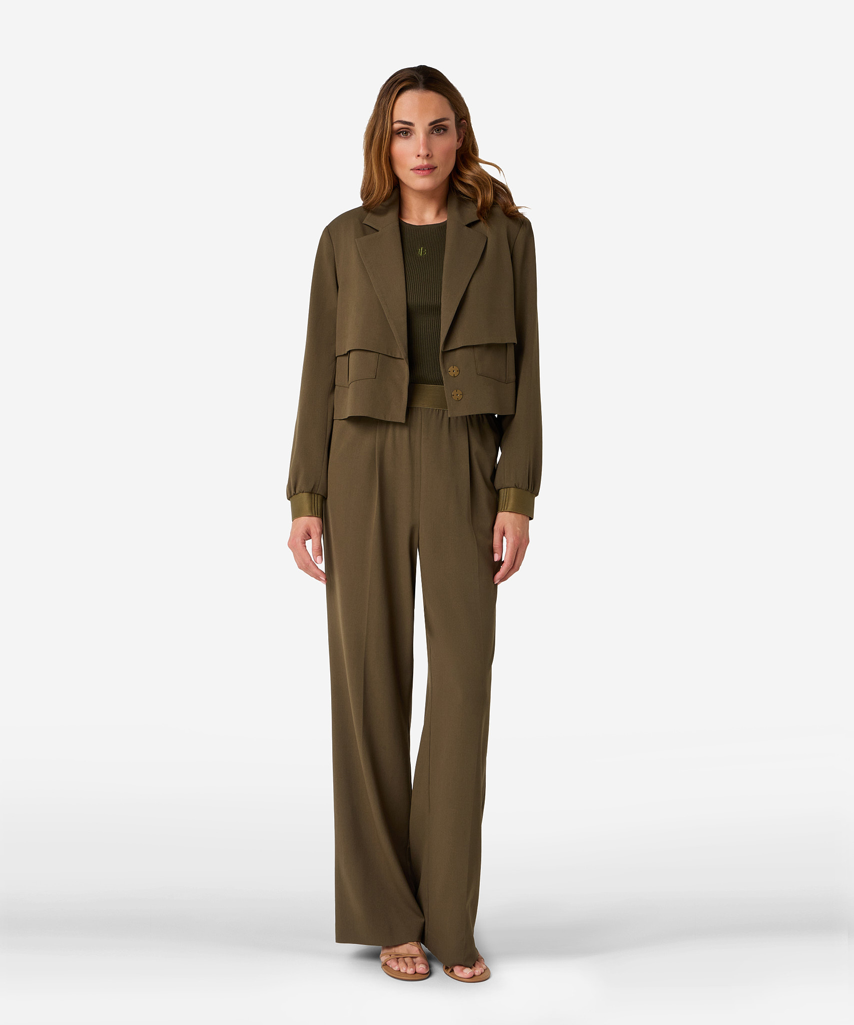 De Jayge blazer in Dark Elm Green is een korte, rechtvallende blazer met een moderne, gestructureerde look. De subtiele schoudervullingen en klepzakken aan de voorkant geven het item een elegante, tijdloze uitstraling, terwijl het elastiek aan de mouwuiteindes zorgt voor een eigentijdse twist. Stylingtip: draag de Jayge als co-ord set met de bijpassende Paige broek voor een krachtige, ton-sur-ton look of combineer met je favoriete jeans voor een meer casual maar stijlvolle outfit.| Buitenzakken: | Twee steekzakken |