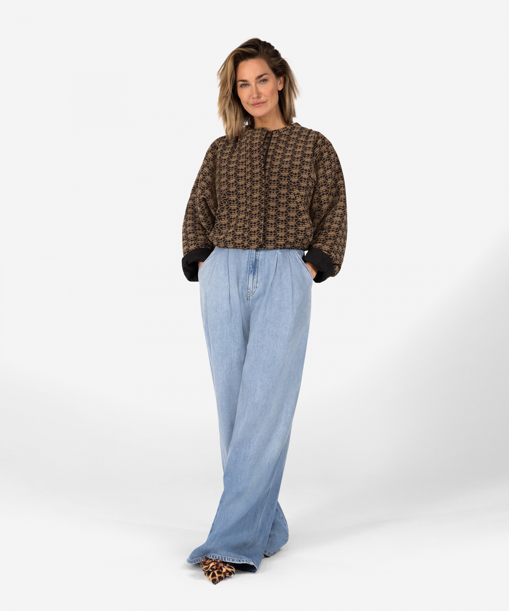 Trend alert! We love this Jecy jacket in onze icon print in de kleur Sand en Black. Het jasje heeft de look and feel van een bomberjasje; heeft een trekkoord aan de onderkant en wordt aan de voorkant gesloten doormiddel van rits. Het jasje is licht gevoerd en kan makkelijk gestyled worden op een jeans of leren broek. De Jecy maakt elke basis outfit af.| Buitenzakken: | Twee steekzakken |