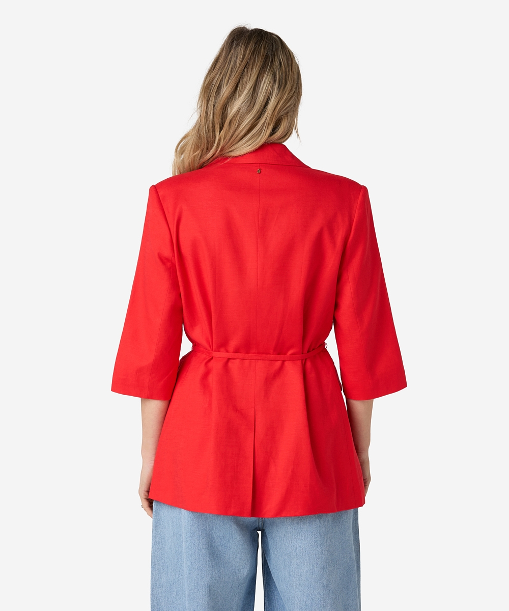 Het Jelsa blazer in de kleur Rosa Coral is een waardevolle toevoeging aan je voorjaarsgarderobe. Gemaakt van een mix van viscose en linnen, heeft dit non-stretch jasje een regular fit, een klassieke kraag en elegante driekwart mouwen. Het koord in de taille laat je silhouet mooi uitkomen en zorgt voor een subtiele, vrouwelijke vorm. Combineer de Jelsa jacket met de bijpassende broek als co-ord set of draag het met de Pristina pants.