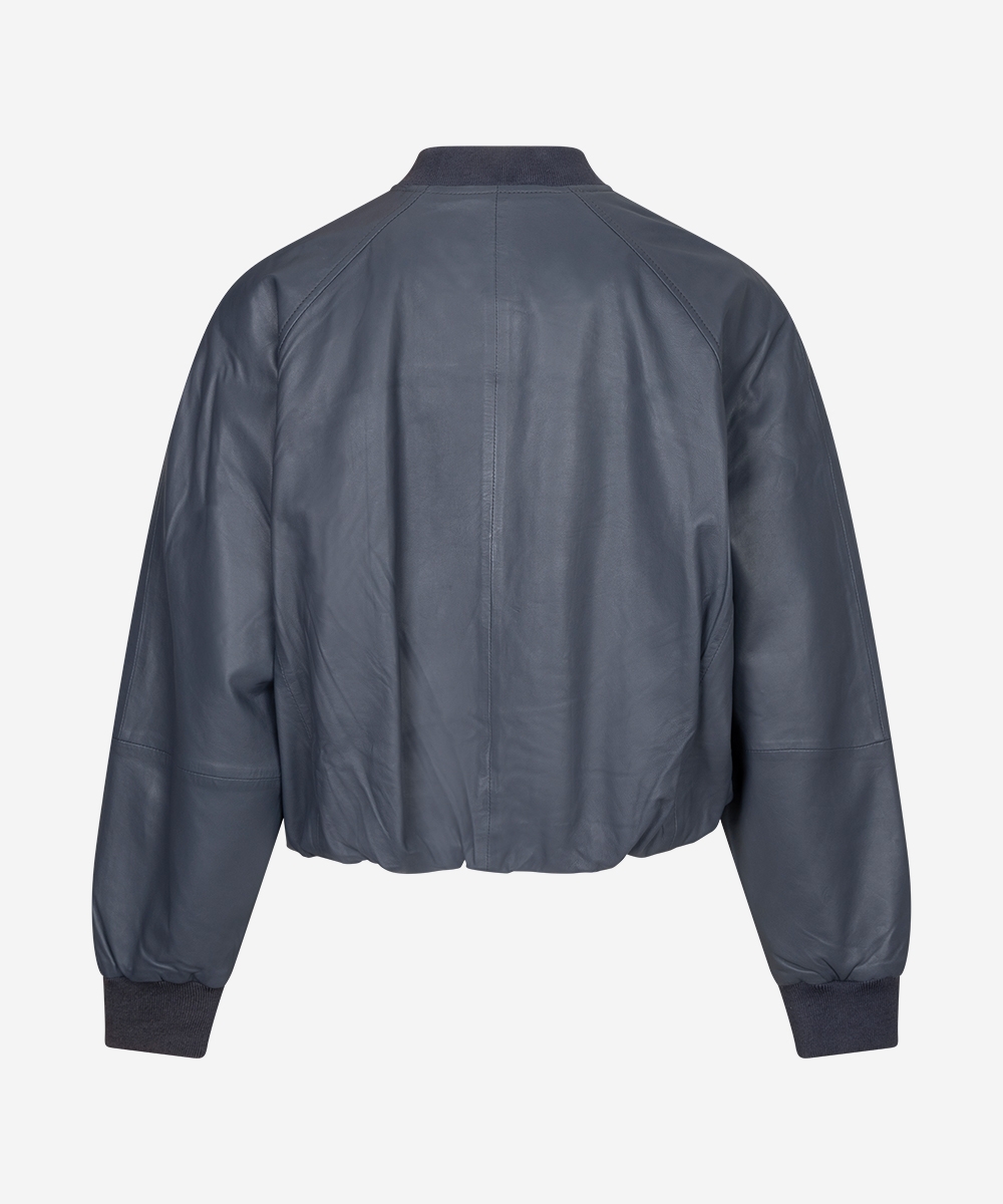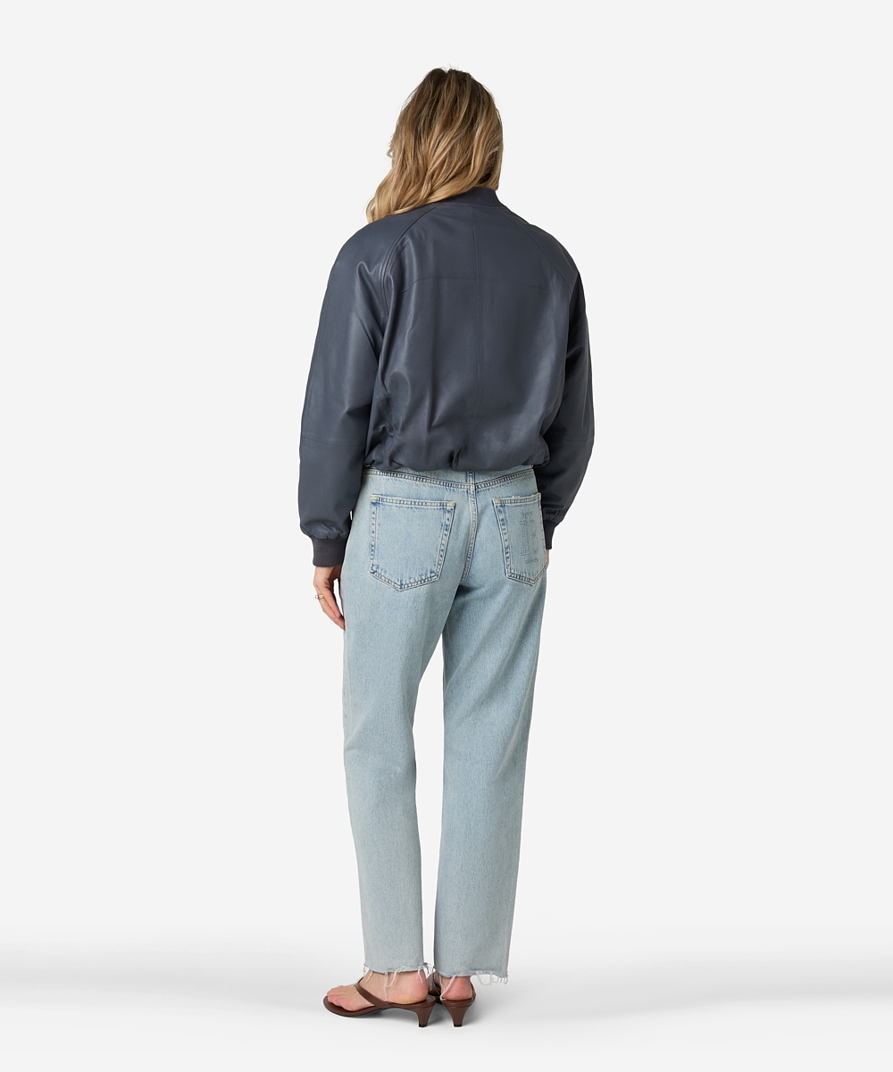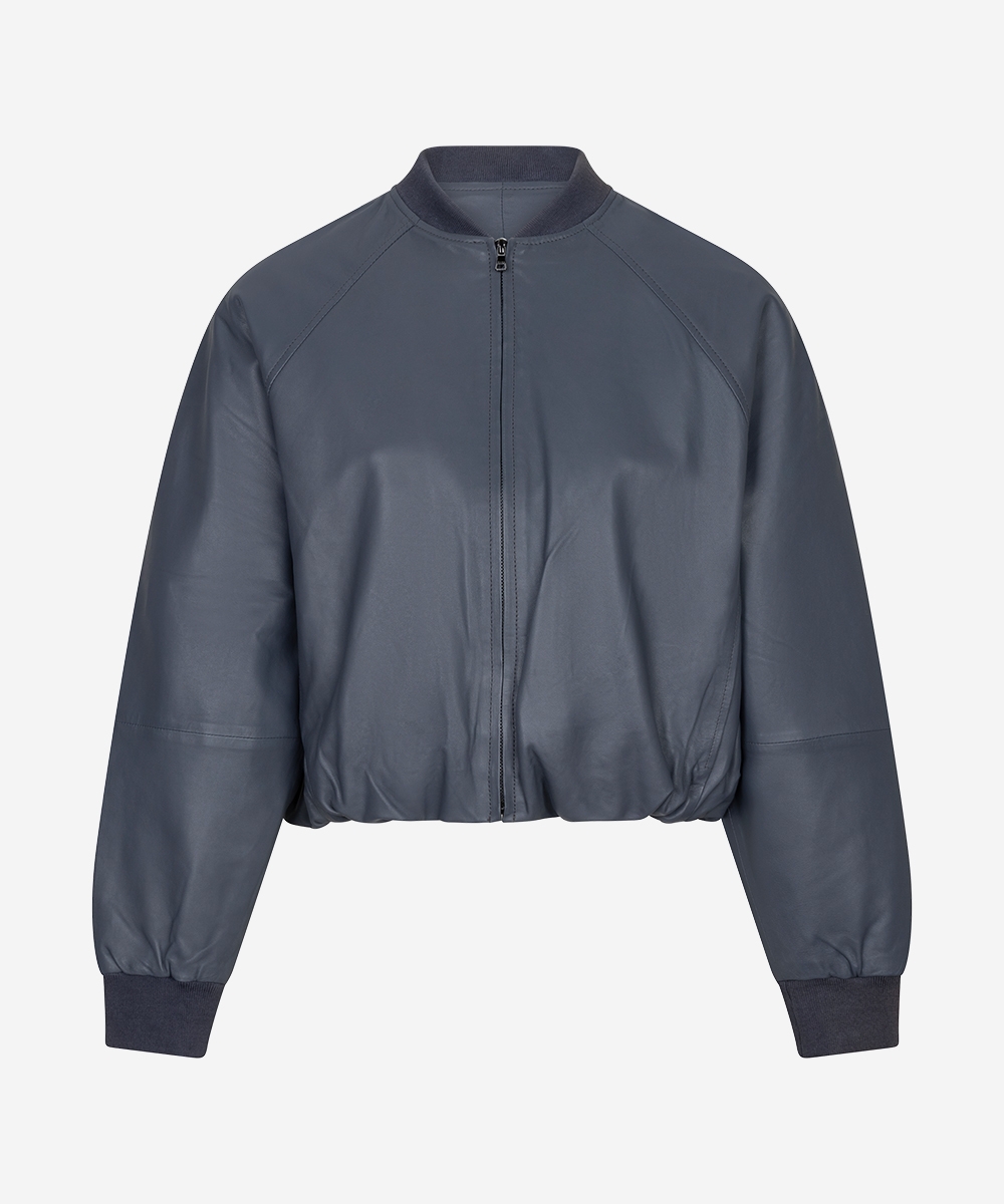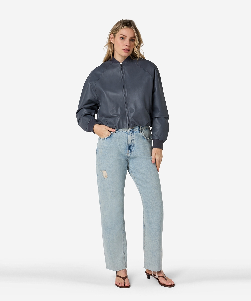 De Jen jacket in de kleur Azur Grey is een krachtig item dat elke look een edgy twist geeft. Dit jasje heeft een ronde hals, twee steekzakken en een rits aan de voorkant. De buitenkant is gemaakt van hoogwaardig kwaliteitsleer. Combineer de Jen jacket met de Phelan jeans voor een stoere, edgy look.