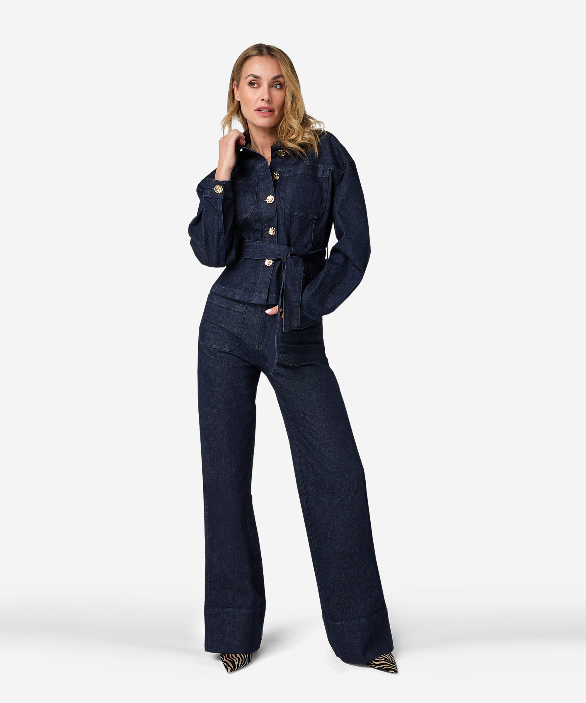 De Jenda jacket in Dark Denim is een regular fit denim jasje met kraag en gouden knopen als sluiting. De top heeft twee borstzakken en bevat stretch. Met het bijgeleverde ceintuur creëer je een mooie taille. Stylingtip: Combineer de Jenda jacket met de bijpassende Penda pants om een prachtige denim co-ord set te creëren.Buitenzakken: | 2 borstzakken |