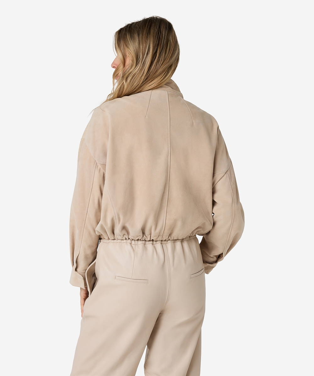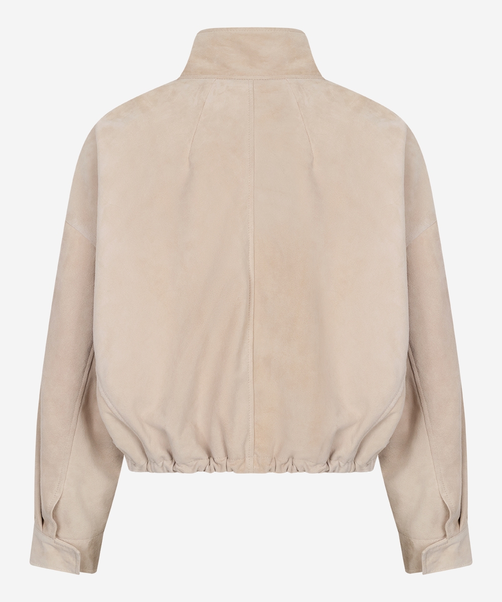 Het Jigo suede jacket in de kleur Ostra Beige heeft een opstaande kraag en wijde fit, de voering is gemaakt van polyester en de buitenlaag van leer. Het jacket sluit met een rits aan de voorkant. De twee steekzakken en het strikkoord aan de onderkant zorgen voor een speels boxy effect. Combineer de Jigo suede jacket met de Promise pants voor een zachte, trendy look.