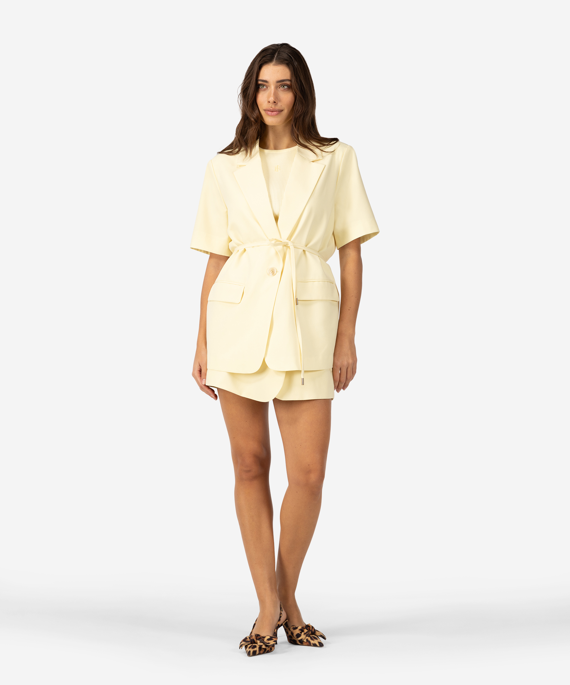 Say hi to onze Jinthe Blazer in de kleur Giallo Tenue. Deze blazer heeft korte mouwen en wordt geleverd met een bijpassend ceintuur. Je kunt er natuurlijk ook voor kiezen de Jinthe zonder ceintuur te dragen. Combineer hem met de andere Giallo Tenue items voor een ton-sur-ton look of draag de Jinthe op de Pristina broek.Categorie: | Blazers |