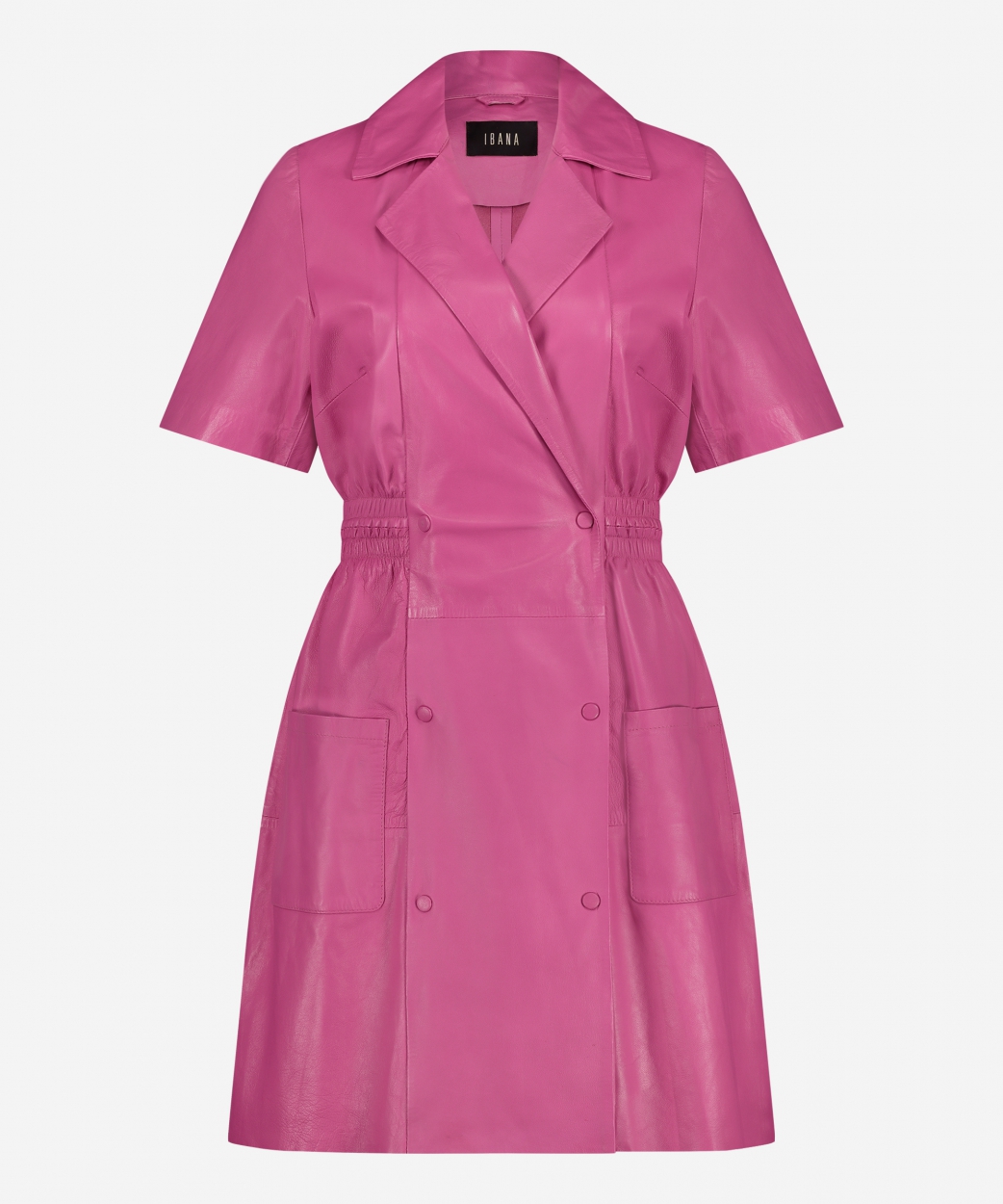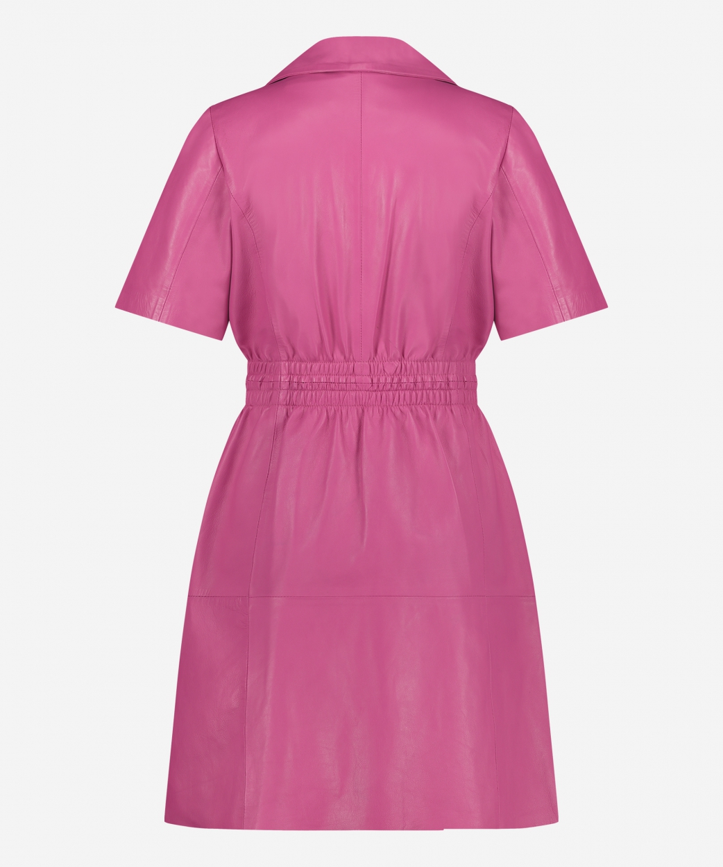 Maak kennis met de Diaz jurk. De Diaz jurk is een stijlvolle jurk in de kleur Bright Pink waar je stijlvol mee voor de dag komt. De jurk is gemaakt van hoogwaardig en zeer soepel leer en draagt heerlijk comfortabel. In de taille is de jurk met elastiek getailleerd voor een vrouwelijke snit. De jurk heeft twee handige steekzakken. De jurk is voorzien van drukknopen voor de sluiting van de overslag. De kraag bestaat uit overslaande revers die deze jurk een chique uitstraling geven. Vanwege de korte mouwen is dit een perfecte jurk voor zomerse dagen. Styling tip: Draag de Diaz jurk in combinatie met sandaaltjes of met muiltjes zoals de Adel in dezelfde kleur Buttery Yellow.