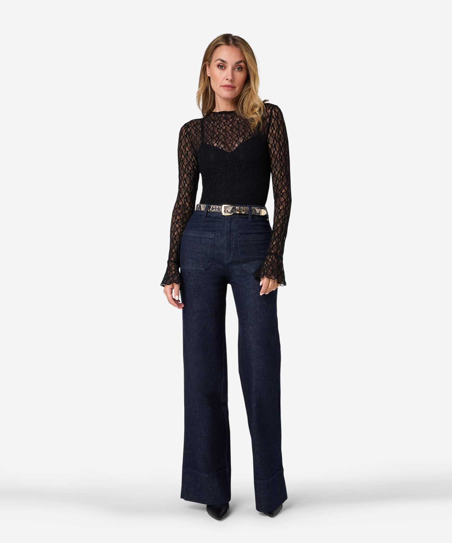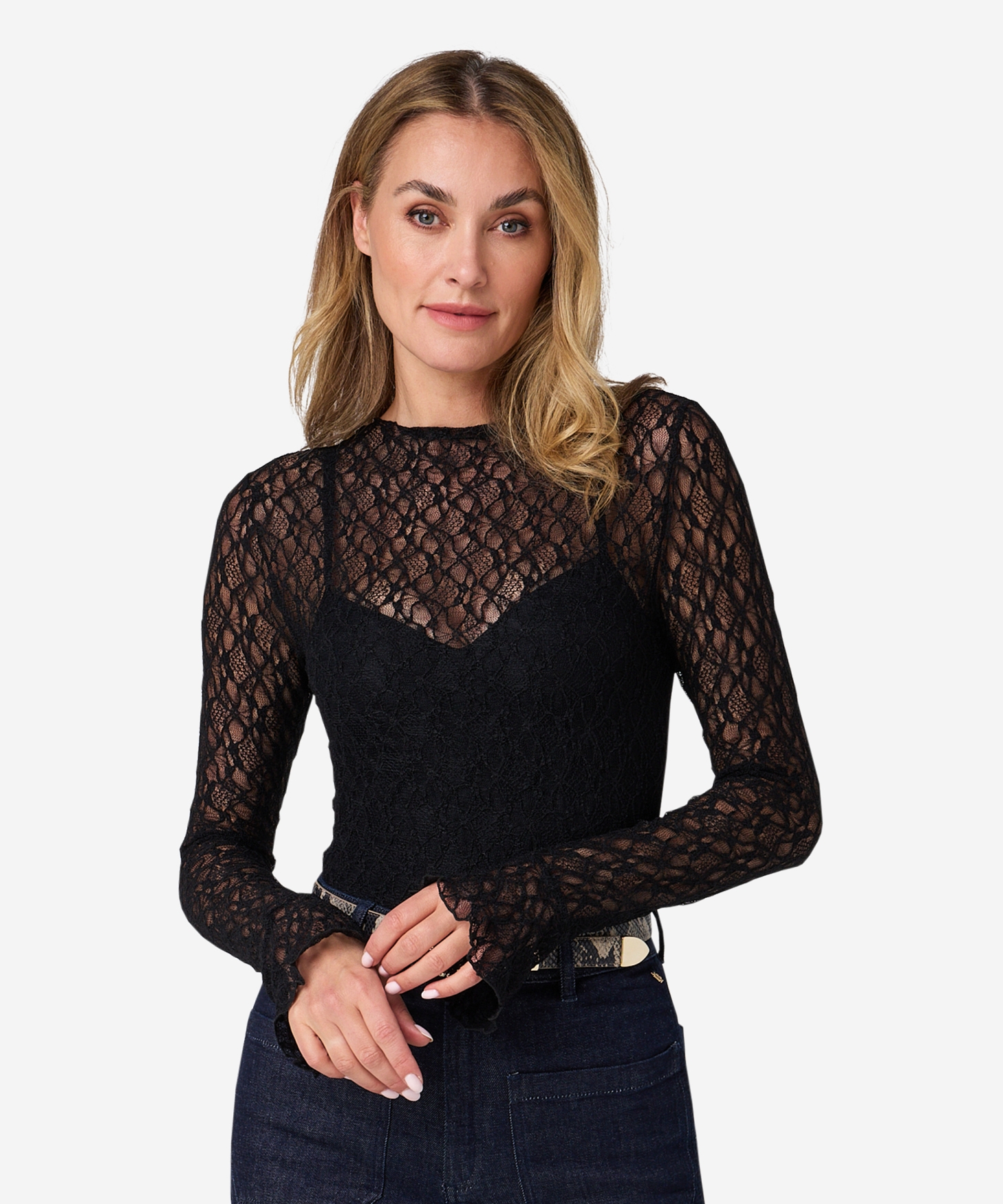 De Taola top in Black is een transparante top met ronde hals, aansluitende pasvorm en elegante trompetmouwen. De top bevat veel stretch waardoor de Taola mooi aansluit en comfortabel zit. Stylingtip: Draag onder deze doorschijnende top de zwarte Eden top.| Categorie: | Tops en Truien |