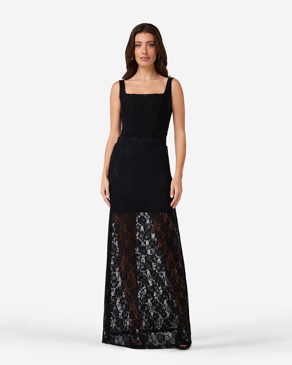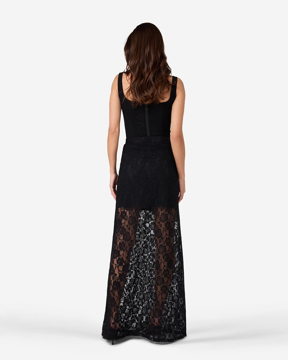 Say hello to Lizzy! Deze zwarte rok heeft een getailleerde fit en is voorzien van kanten details, een elastische tailleband en een korte onderrok voor extra comfort. Dankzij de high waist pasvorm zit Lizzy als gegoten. Combineer de rok met de Toppy Top voor een stijlvolle look en draag daarover de Lilly Blazer voor een fashionable finishing touch.