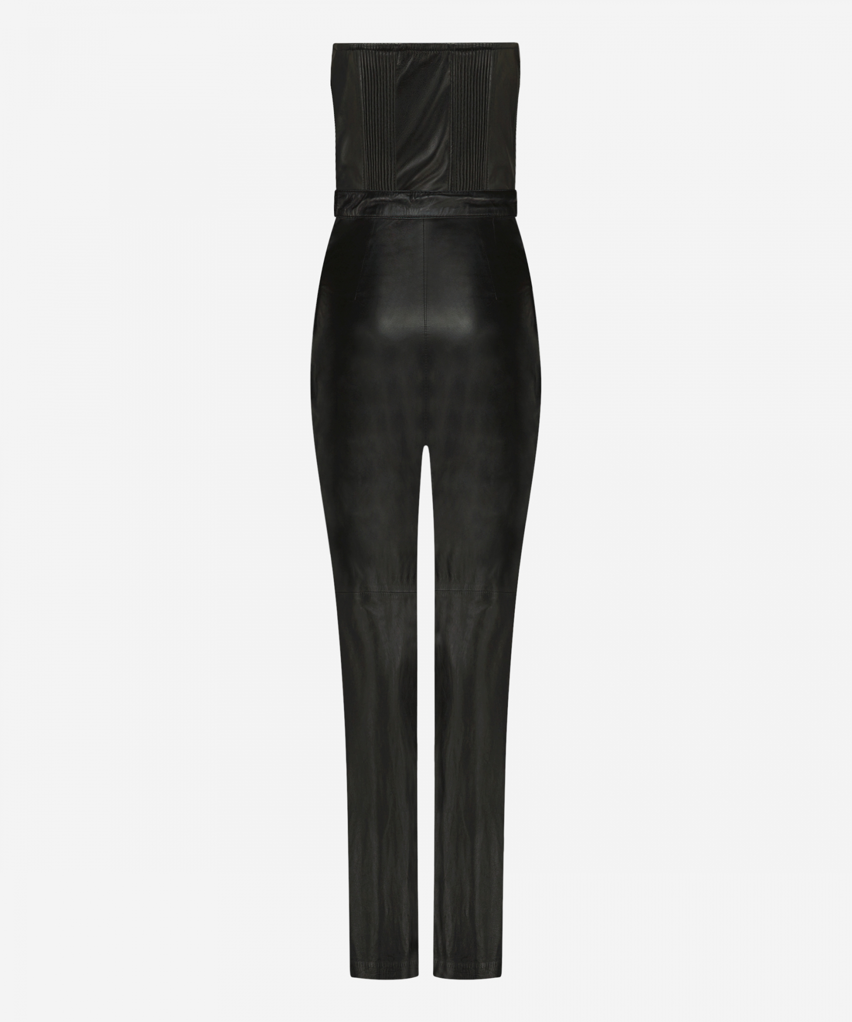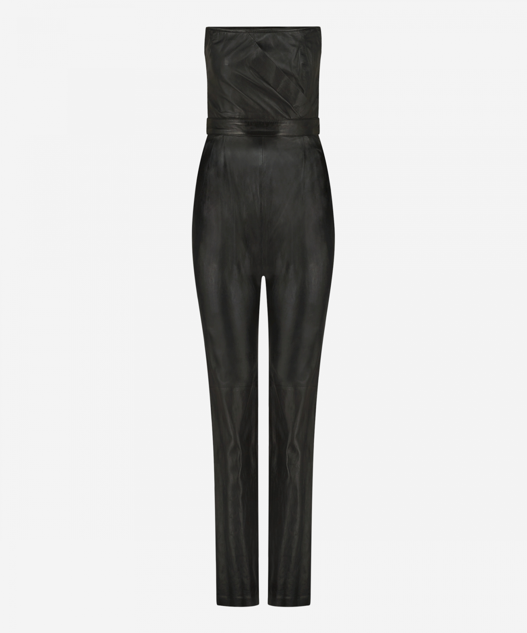 Maak kennis met onze indrukwekkende strapless jumpsuit, de Odine, in de tijdloze kleur Black. Deze jumpsuit is niet zomaar een kledingstuk; het is een waar fashion statement. De geraffineerde plooien aan de voorkant van zowel de top als de broek voegen een extra dimensie toe aan de jumpsuit. Aan de zijkant van de Odine vind je een handige rits, waarmee je de jumpsuit gemakkelijk aan- en uittrekt. Of je nu een chique avondje uit hebt gepland of op zoek bent naar een stijlvolle outfit voor een speciale gelegenheid, de Odine strapless jumpsuit is de perfecte keuze. Combineer het met je favoriete accessoires en hakken voor een glamoureuze look die de aandacht trekt.