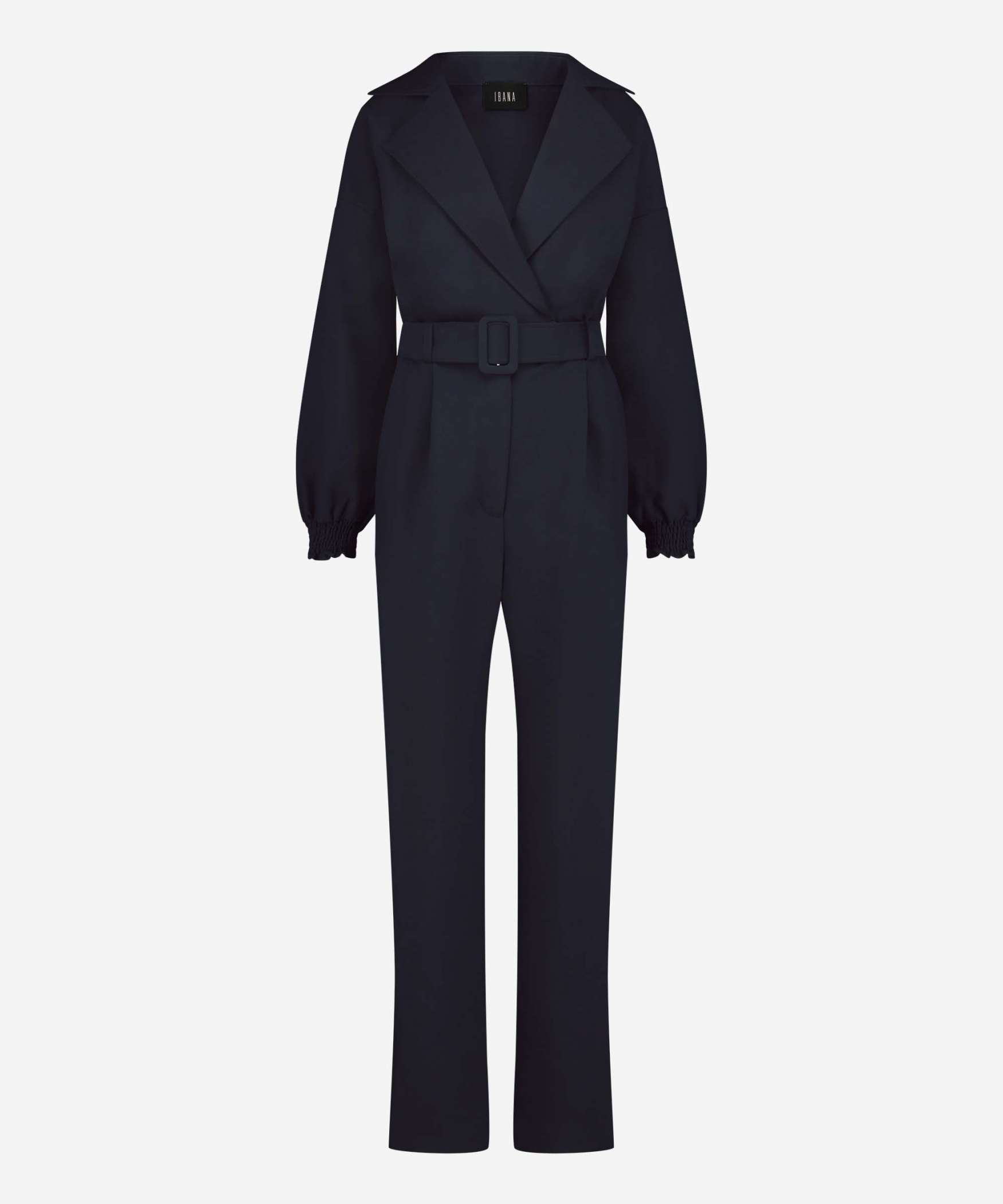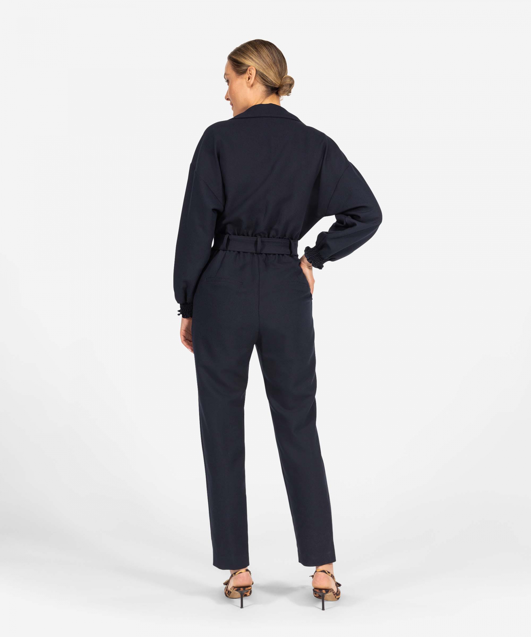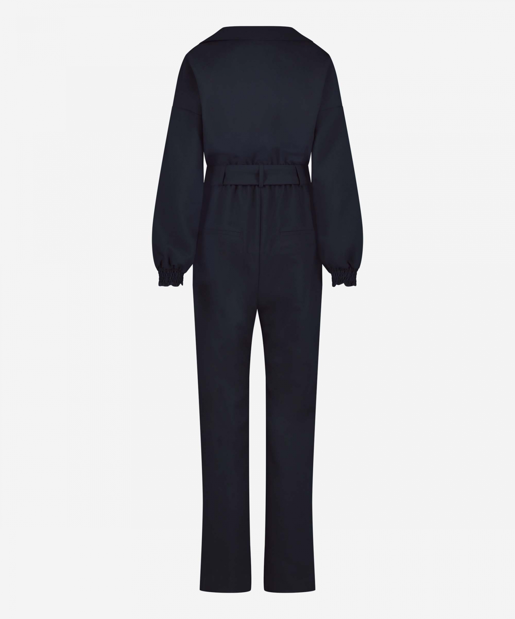 Dit is onze Olina jumpsuit in de kleur Midnight Blue. Gemaakt van een fijne stof die de jumpsuit een chique uitstraling geeft, heeft de Olina een openstaande kraag die een prachtig V-halseffect creëert. Een extra detail zijn de gesmokte mouwuiteinden, terwijl de ceintuur de taille accentueert. Draag de jumpsuit met hakken voor een zakelijk chique uitstraling of met sneakers voor een meer casual look.