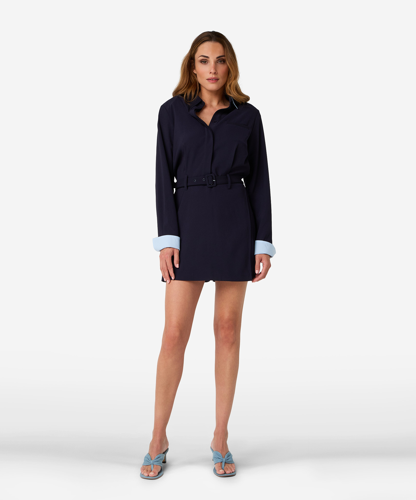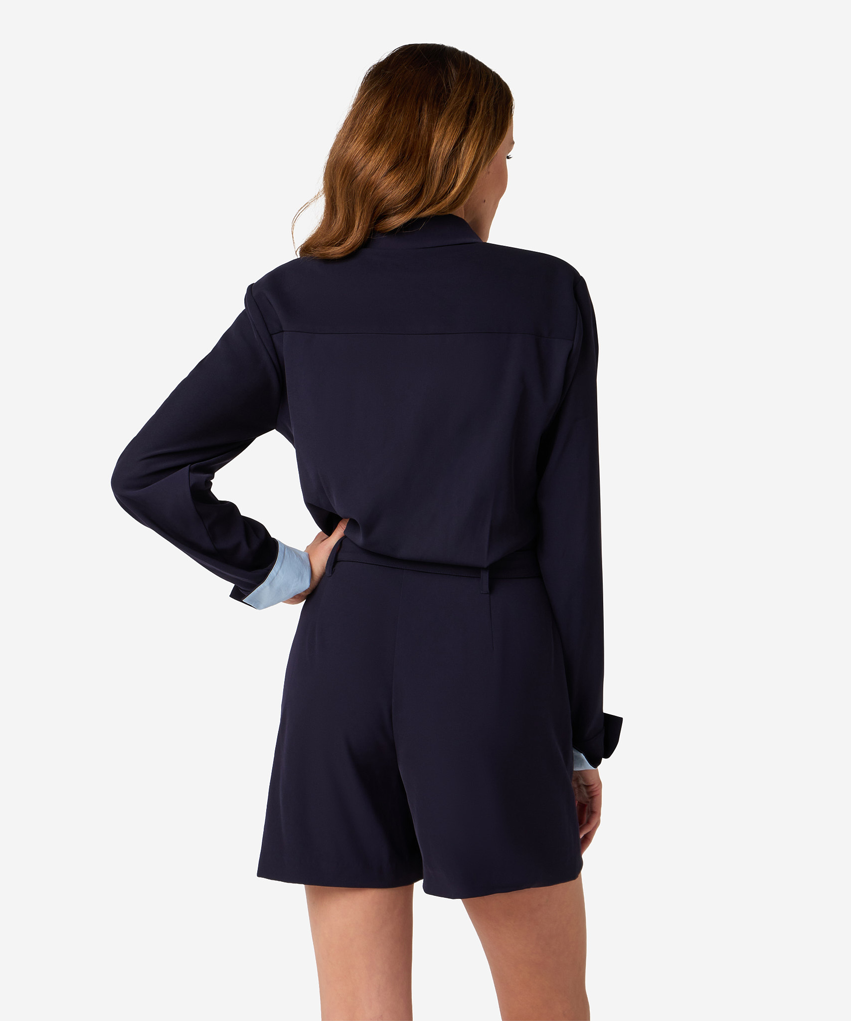 De Orla jumpsuit in Dark Sapphire is een stijlvolle keuze met vrouwelijke details zoals schoudervullingen, een bijpassende taille riem en contrasterende lichtblauwe mouwomslagen. De knoopsluitingen zorgt voor een elegante afwerking. Deze jumpsuit is een allround favoriet in een diepe, tijdloze kleur. Styling tip: In de winter draag je de Orla met een panty en laarzen, in het voorjaar juist met een bloot been. Perfect voor zowel day als night.