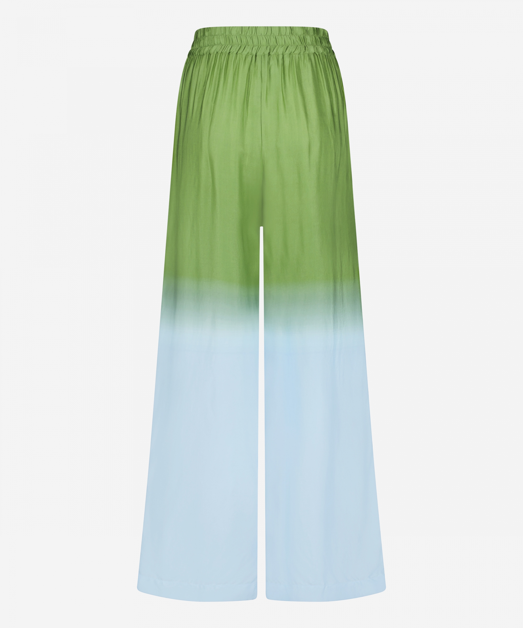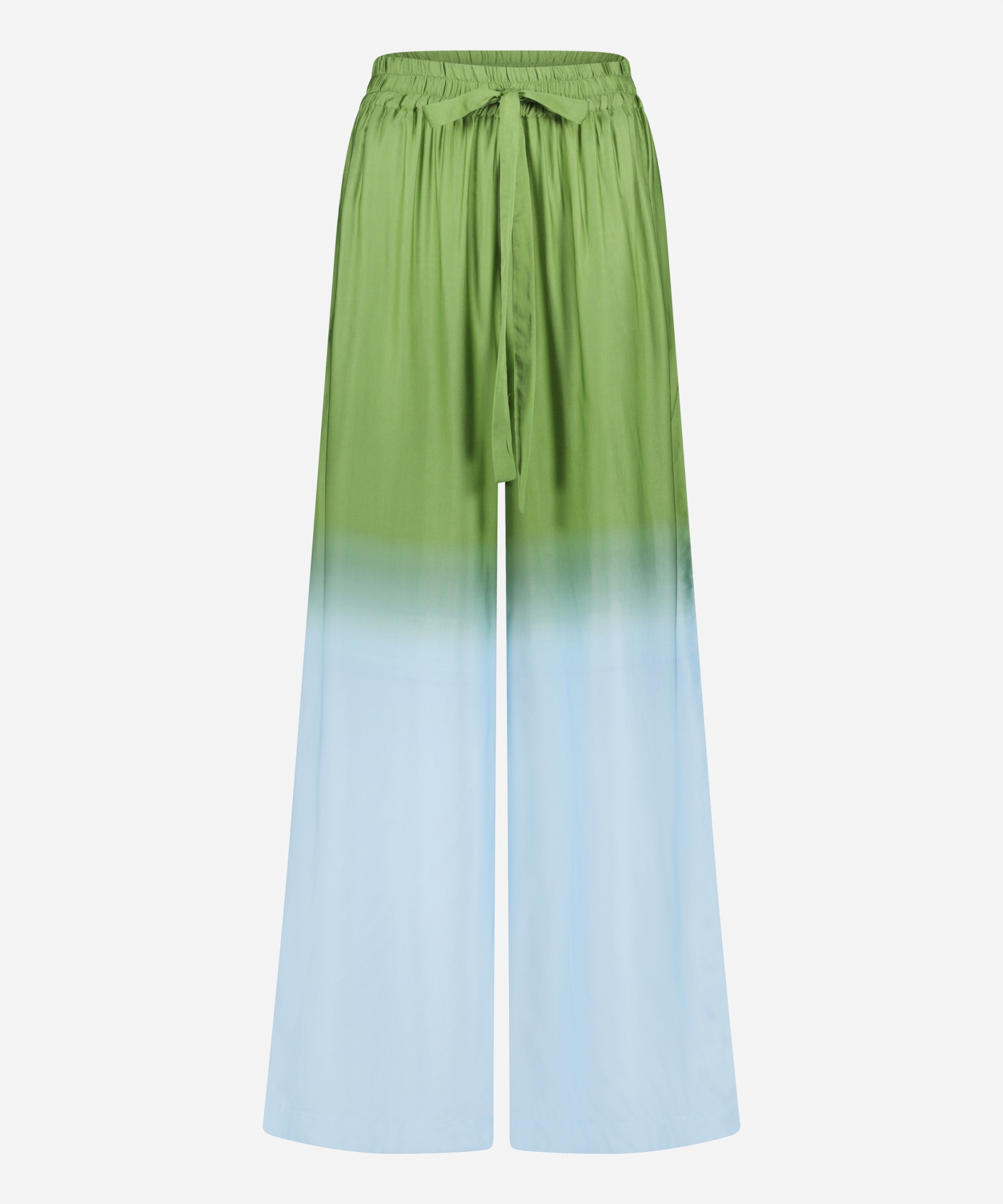 Dit is de Palmtri broek in de geweldige Dipdye print. De broek is onderdeel van een complete zomerset. Je combineert de soepelvallende Palmtri broek met de Talmy blouse in dezelfde print voor een waanzinnige look. Je kunt met deze set alle kanten op, heerlijk voor naar het strand of een lunch in de zon maar je kunt de set ook perfect naar verschillende speciale gelegenheden dragen.Combineer in het laatste geval de set met de Ambia muiltjes in Silver.