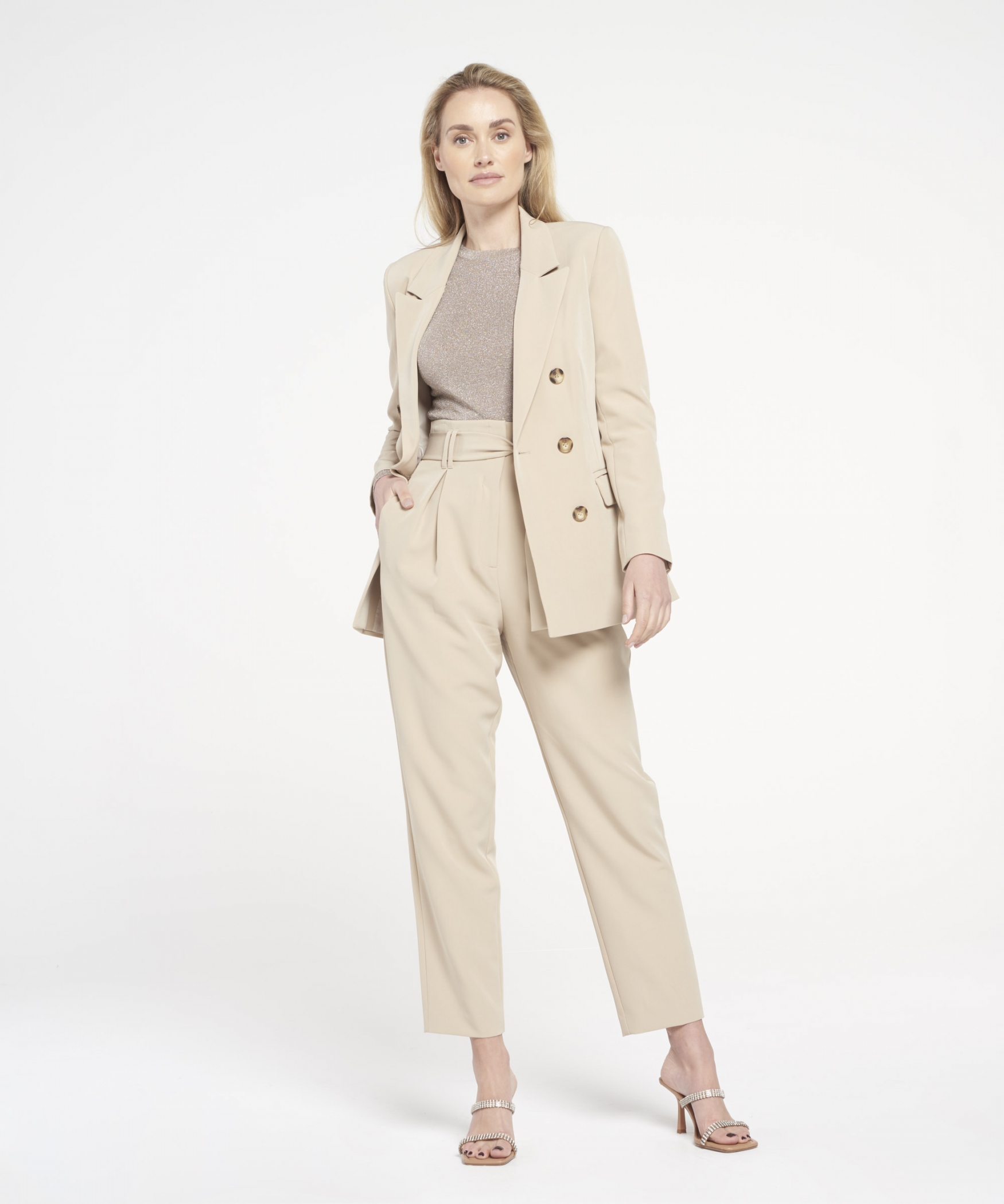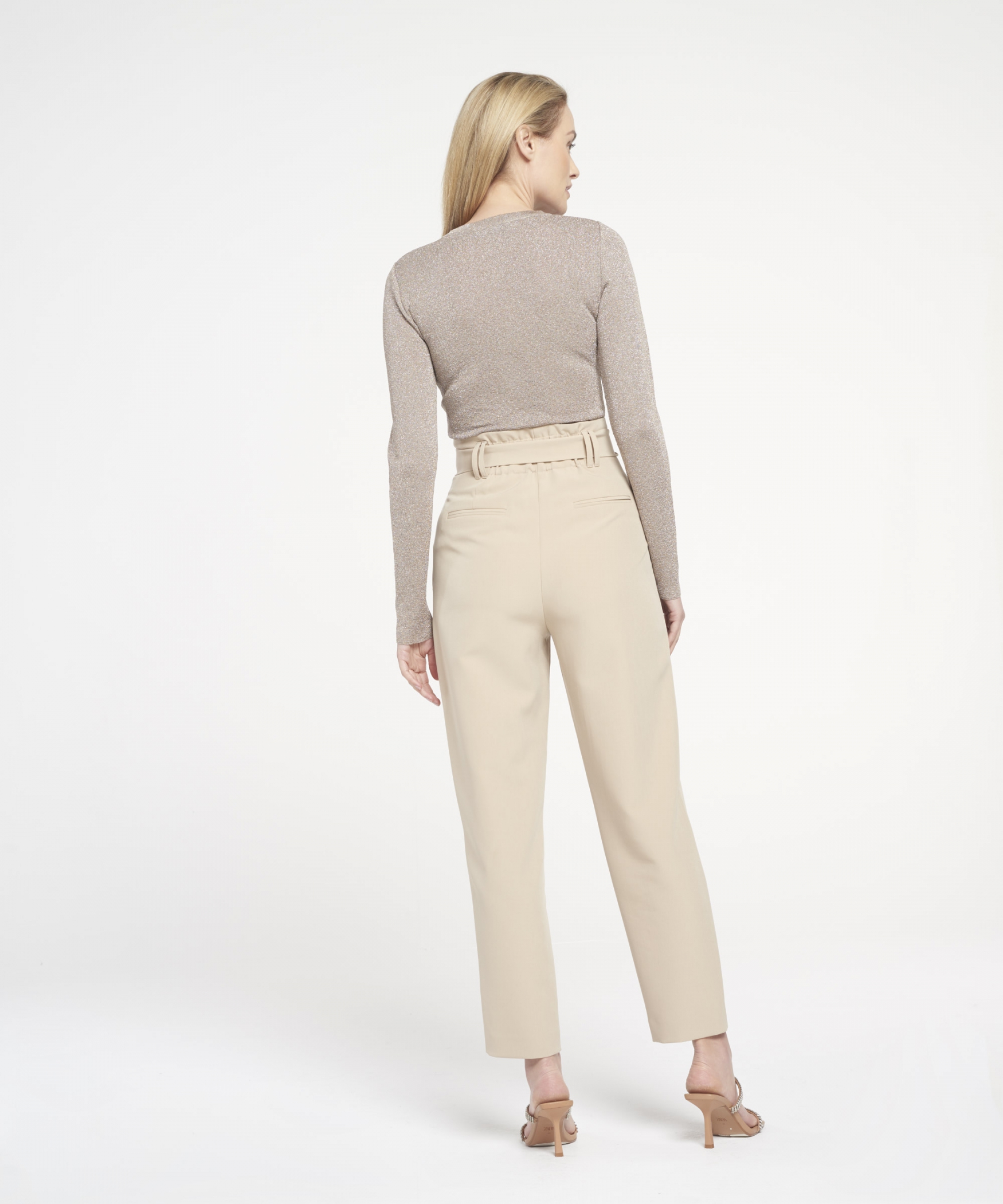 Dit is de Panni pants. Een high-waisted model met een strikceintuur, een elastieken band voor een mooie pasvorm en twee steekzakken. De Panni heeft een speelse uitstraling met plooien aan de voorzijde. Aan de achterzijde bevinden zich 2 paspel zakken. De Panni is ook verkrijgbaar in de kleur Army Green.
