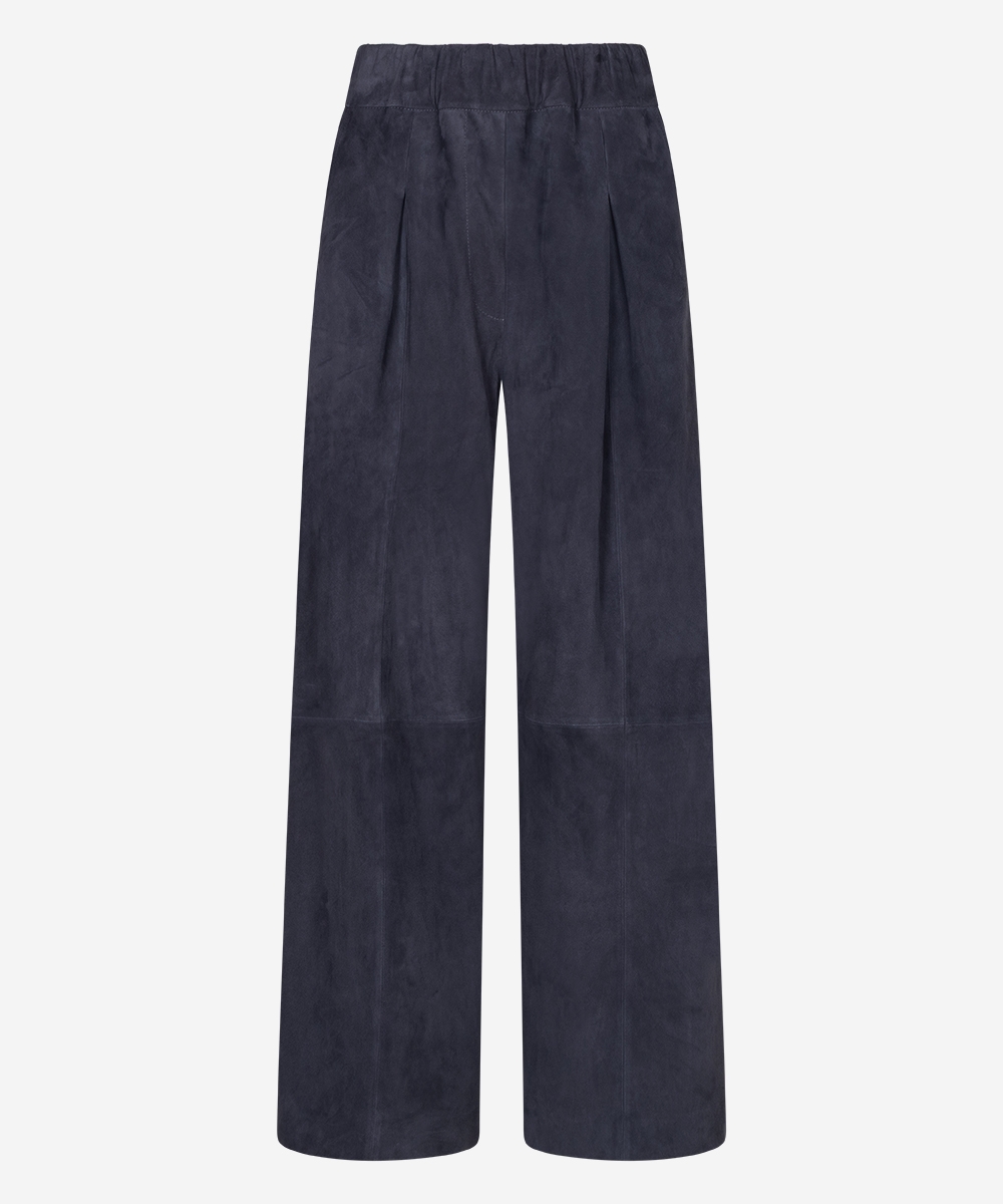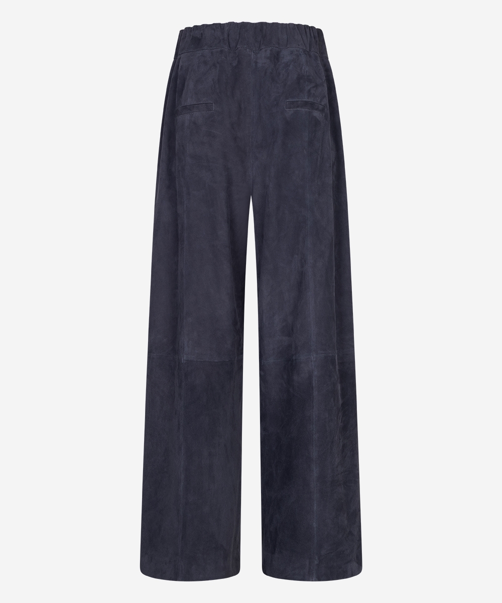 De Paylin suede pants in de kleur Azur Grey combineert comfort met een luxe uitstraling. Deze broek is gemaakt van zacht suède, heeft een wijde fit en twee steekzakken. De broek heeft non-stretch kwaliteit en een elastieke tailleband met strikveter. Combineer de Paylin pants met de bijpassende Timora top