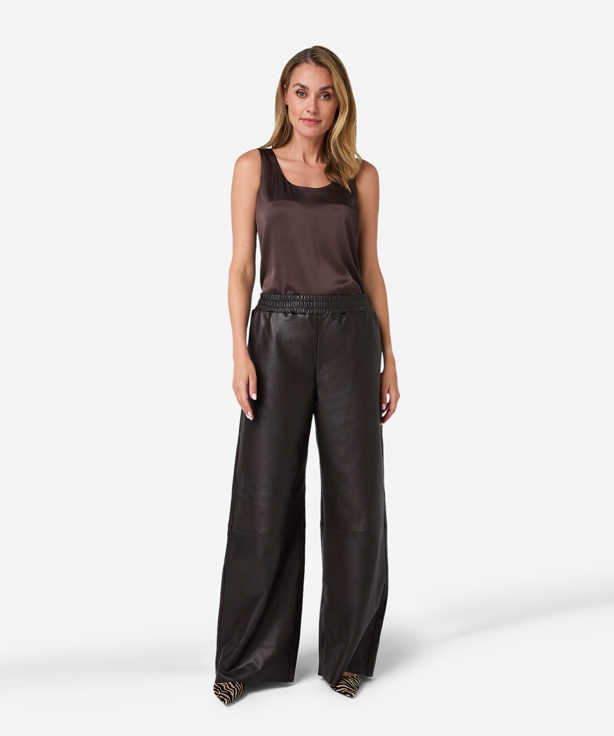 De Payten pants in Coffee Bean is een stijlvolle leren keuze met een wijde pasvorm. De broek is mid waisted, gevoerd en non-stretch met een binnenbeenlengte van 81 cm. De steek- en paspelzakken zorgen voor een nette afwerking. Stylingtip: Style de Payten pants met de Tamora turtle neck top in Coffee Bean om een fashionable ton-sur-ton look te creëren.Binnenbeenlengte: | 81cm |