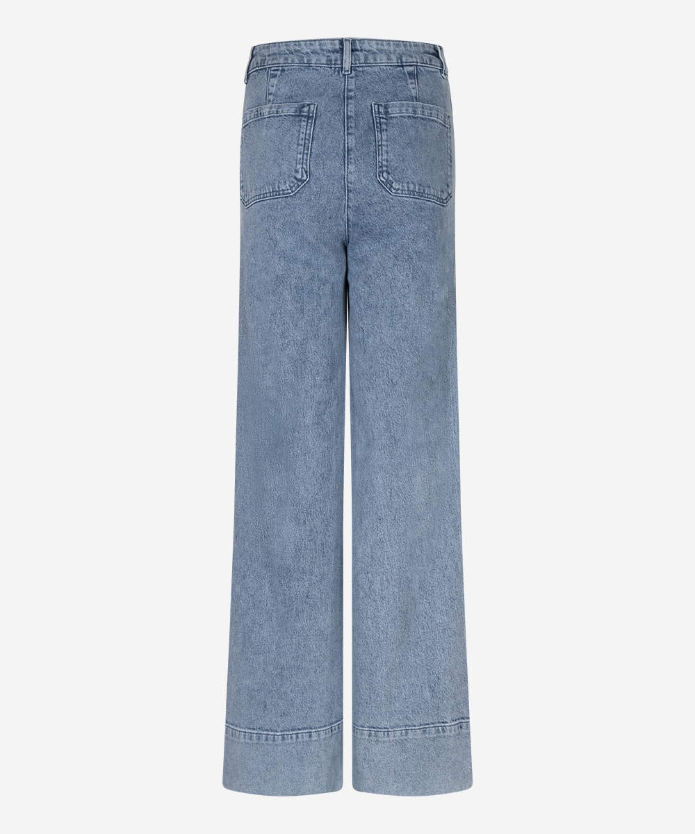 De Pendan jeans in Faded Denim heeft een high-waist pasvorm en wijde broekspijpen voor een moderne, vrouwelijke look. Met een binnenbeenlengte van 87,5 cm en twee zakken aan de voorkant is deze jeans zowel comfortabel als flatterend. Combineer net als het model met de Tamora top in dezelfde kleur of kies voor de bijpassende Tessa top voor een ton-sur-ton denim look.Binnenbeenlengte: | 87,5cm |